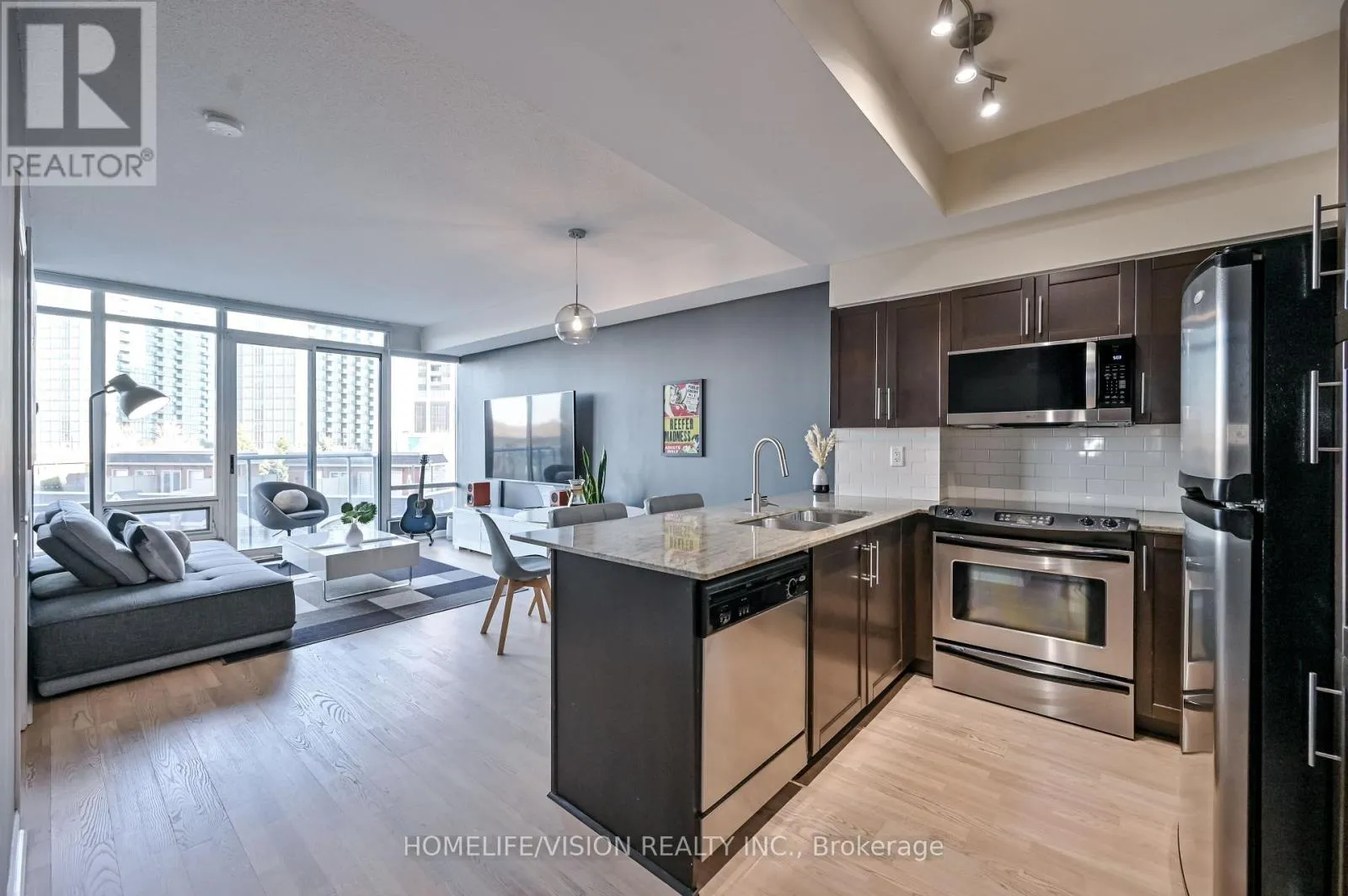 Queensway & Windermere Nestled within a prestigious enclave of exclusive townhomes and condominiums, this residence is ideally situated just steps from the waterfront. Embrace the beauty of the season and a serene yet connected lifestyle, with High Park, Lake Ontario, Humber Bay, and Grenadier Pond at your doorstep. Enjoy effortless access to the charming cafés and restaurants of Bloor West Village and Mimico, as well as the downtown core and Billy Bishop Airport just minutes away. This owner-occupied, meticulously maintained lakeside 1+den suite offers one of the largest layouts of its kind in the building, thoughtfully designed with 9 foot ceilings and an exceptional, functional flow. The versatile den can serve as a second bedroom or a home office, complete with access to a separate 3-piece bathroom. Expansive floor-to-ceiling windows and a Juliette balcony invite abundant natural light, complementing the modern kitchen with elegant granite countertops. The primary bedroom is equipped with Magnetite soundproof windows, offering enhanced comfort. Just steps to the waterfront and High Park trails, this home delivers the perfect balance of nature and city living. Residents enjoy an array of resort-inspired amenities, including an indoor pool, fully equipped fitness centre, screen-golf simulator, party room, guest suites, 24-hour concierge, and ample visitor parking. All-inclusive, carefree maintenance fees cover heat, hydro, and water, offering a truly elevated and effortless lifestyle. (id:27476)