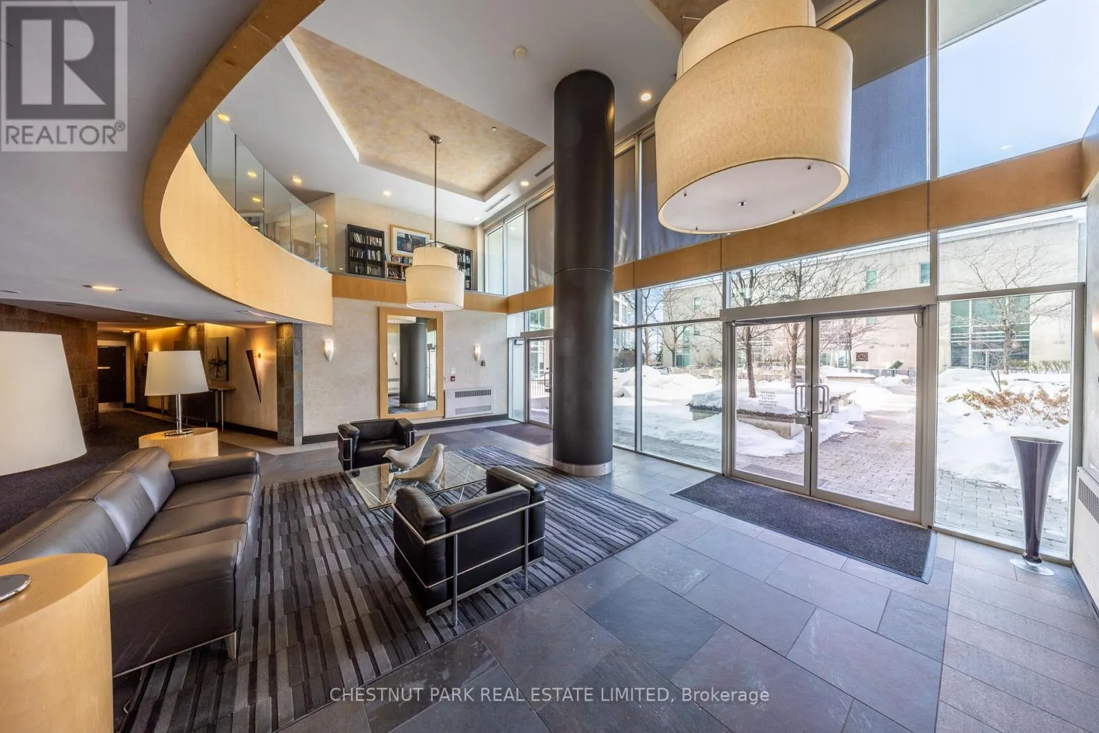 Cross Streets: Lakeshore/South Kingsway. ** Directions: West on Lakeshore, south on Marine Parade Dr. Perched high atop the beautiful Humber Bay shores sits Penthouse #9, an exceptionally rare opportunity to own at the penthouse level with southern views across Lake Ontario. Measuring almost 700 square feet, PH9 is a bright, spacious 1 bedroom/1 bathroom suite in Grenadier Landing - a renowned 12-storey mid-rise condo overlooking Humber Bay and the Humber Bay Shores Park. PH9 offers sweeping south, west and northern exposures through its panoramic window design, affording the space a full range of natural light throughout the day. For the cold winter days the living room is centred by a gas fireplace and stone mantel, warming up the living spaces while setting the scene for the sensational views. For the warm summer days, a private walk-out balcony sits just off the living room to take in the breeze, and a gas line for BBQ and lake views complete the scene. The updated kitchen with stone counters, full sized appliances and eat-in bar is perfectly positioned to entertain, and the large bedroom with hardwood floors, lake views and oversized closet is a welcomed retreat. 4-piece bath with washer/dryer. One car parking with bike rack and adjacent locker. Remote operated sun shade blinds in the living/dining room and sun shade/blackout blinds in bedroom. All utilities are included in maintenance fees. With its biking trails, shoreline, parks and wildlife habitat, 5 Marine Parade Drive is ideally situated in the outstanding Humber Shores area of Toronto. Offering 24-hour concierge, visitor parking, fitness centre and landscaped courtyard, a fantastic lifestyle opportunity awaits. (id:27476)