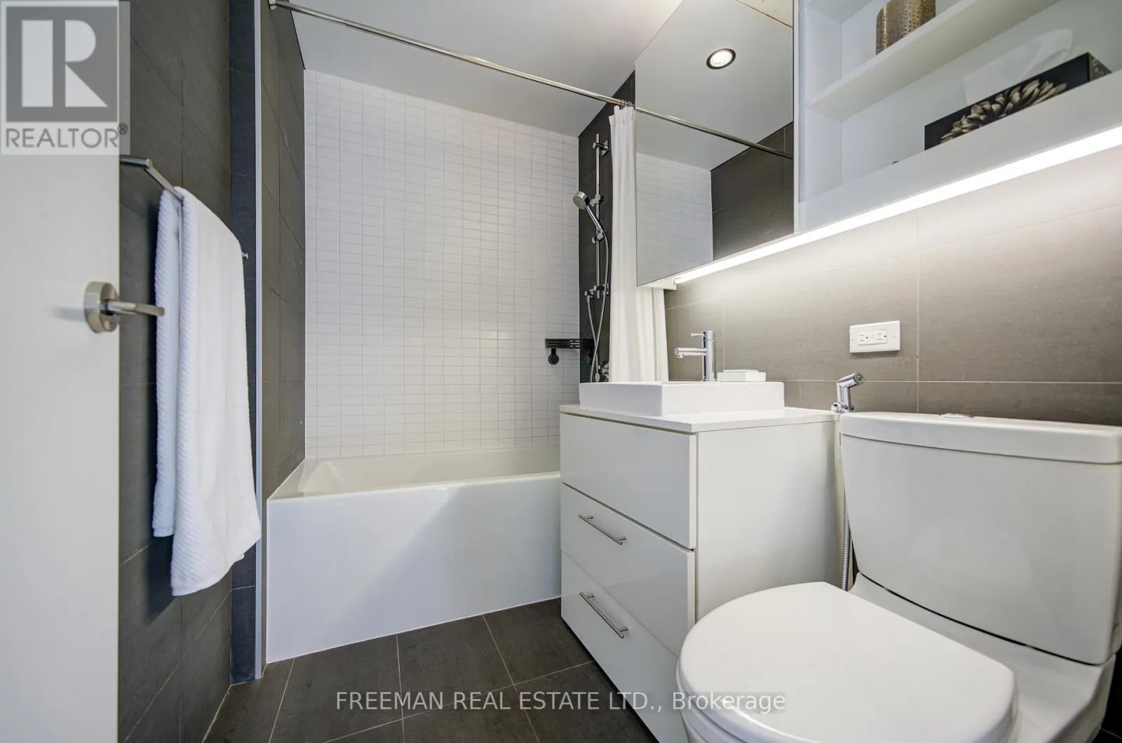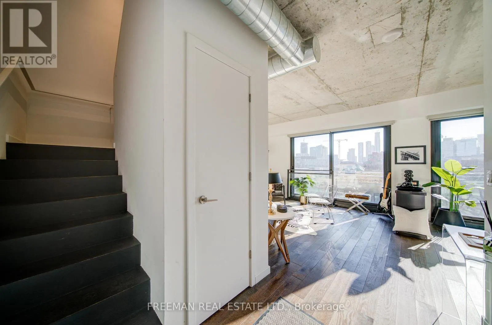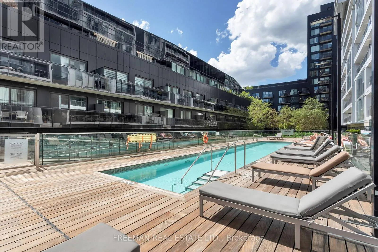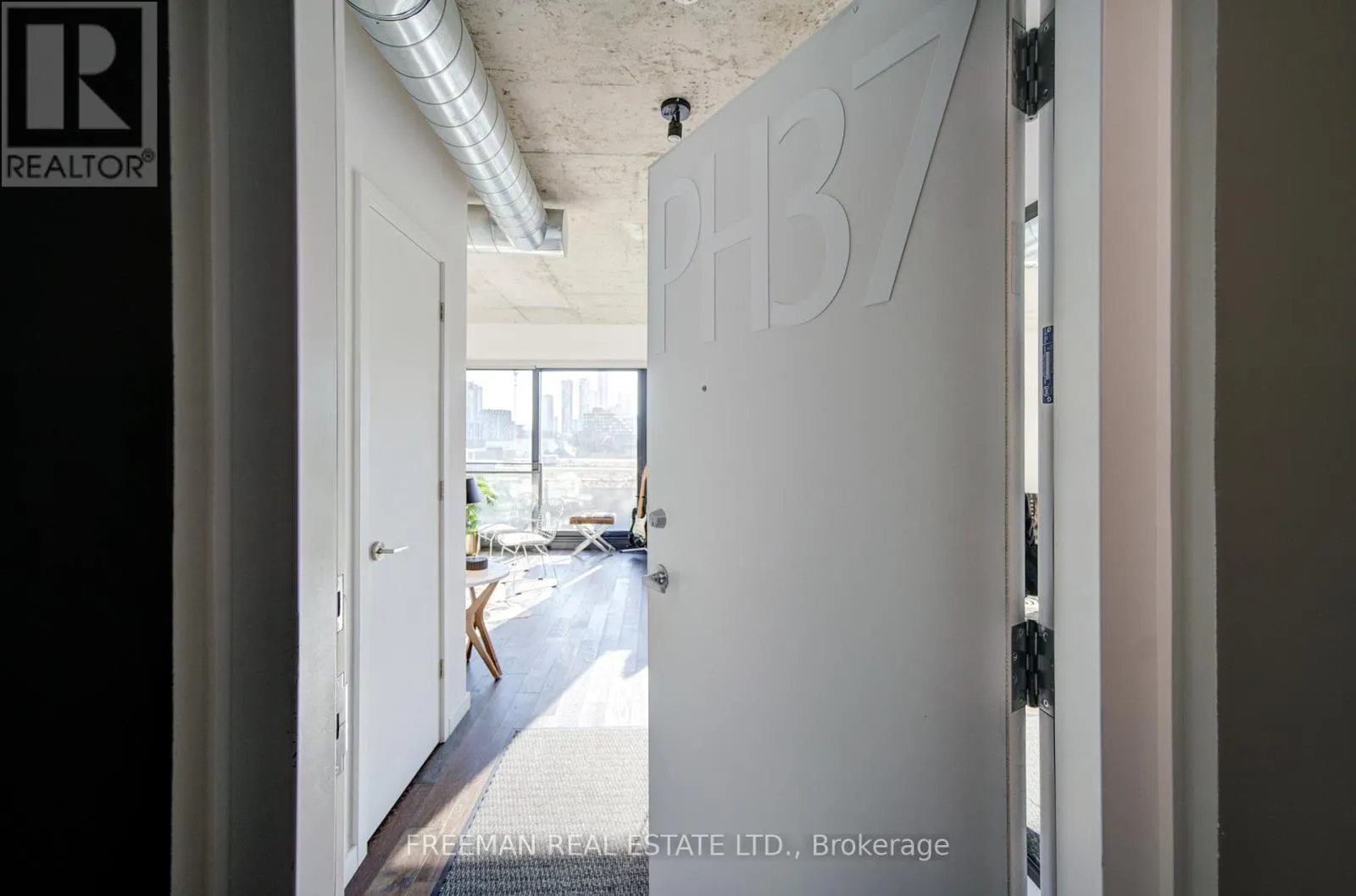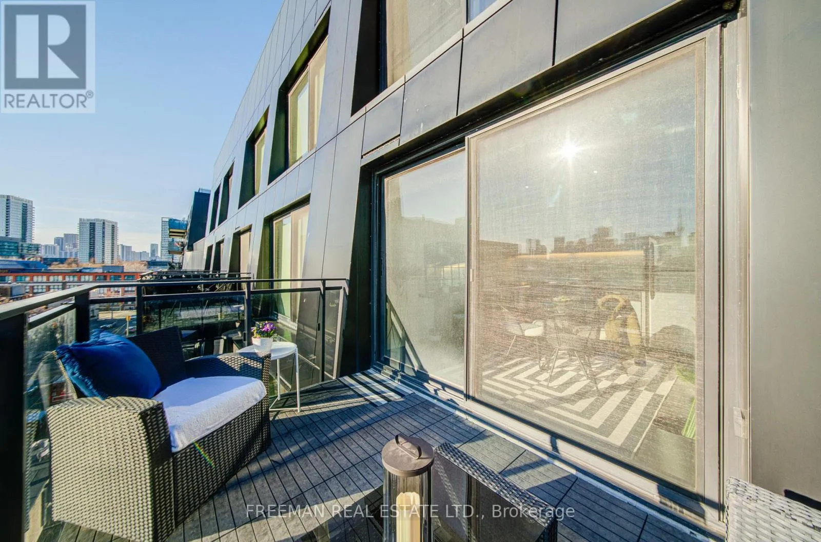 Cross Streets: King & Bayview. ** Directions: South of King and West of Bayview. Watch the sunset over the unbelievable view of the Toronto skyline from the wall to wall and floor to ceiling windows! This rarely available River City 2-level 2-bedroom 2-bathroom penthouse condo has it all. A great kitchen with plenty of space for a dining area next to your west facing terrace. The afternoon sun fills the living and dining room so you can snooze on the sofa like a Cheshire cat. Exposed concrete ceilings give you the soft loft feel. Walk upstairs to find two real bedrooms (not dens) which both easily accommodate queen size beds plus furniture. Both have Juliette balconies allowing for plenty of light and air flow, solid doors and closets. The primary bedroom features a semi-ensuite with a deep tub. The building has amazing amenities including an outdoor swimming pool with sundeck. Your unit comes with a parking spot (#28) just steps to the elevator and storage locker (plaque #250) a few steps beyond. Incredibly efficient LEEDS building for low bills. (id:27476)