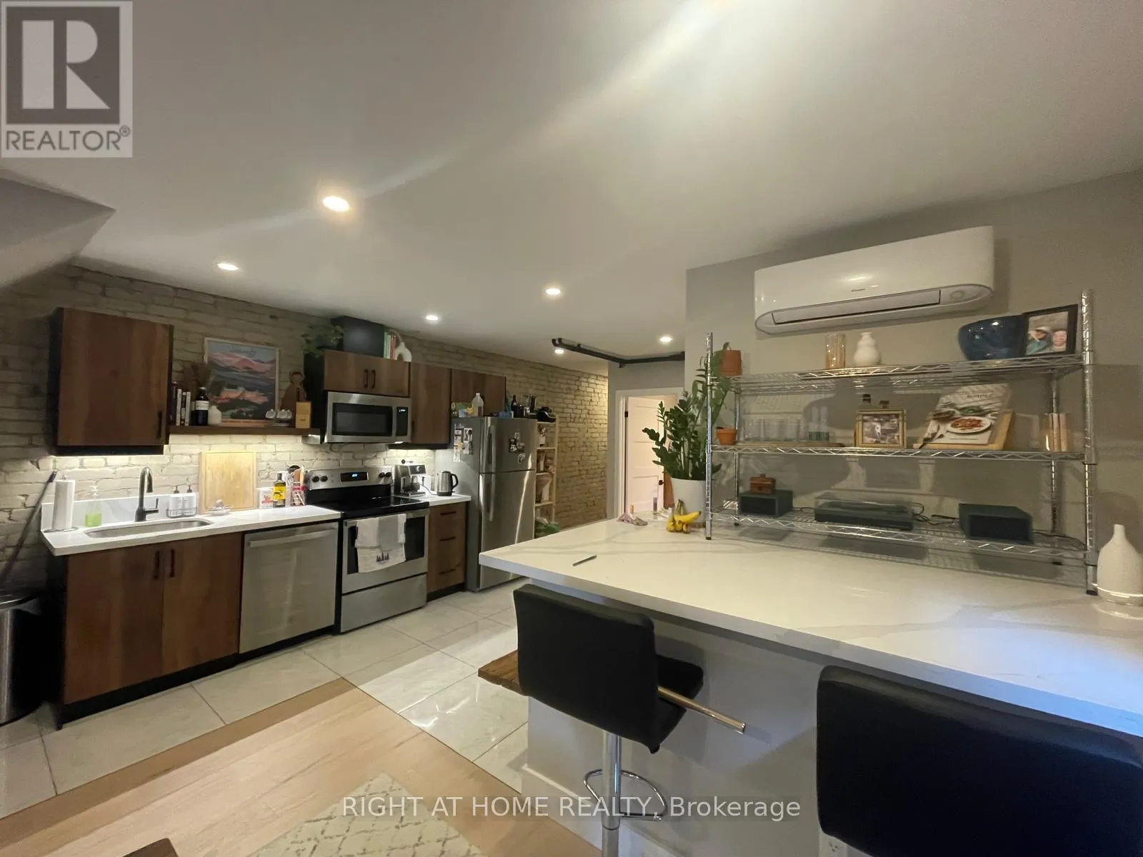 Cross Streets: Bloor Street West and Parkside Drive. ** Directions: Parkside Drive and Grenadier Road. Bright Beautiful fully renovated 3 bedroom plus den apartment overlooking High Park!This brand new Three bedroom+den/1 bathroom has it all, High ceiling, modern kitchen, living room, exposed brick walls, and tons of light. One of the bedrooms has a large den/office, with many windows. Large living room, Open Concept Kitchen equipped with Stainless steel appliances (dishwasher, built-in microwave, etc), backsplash. Shared Laundry and Backyard.12 minutes walk to Keele Subway Station 8 minutes walk from Roncesvalles Avenue with street cars, many trendy cafes and restaurants, High Park across the street (id:27476)