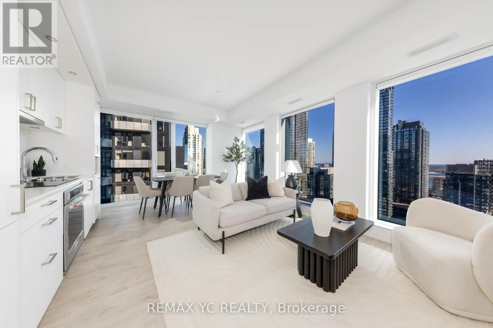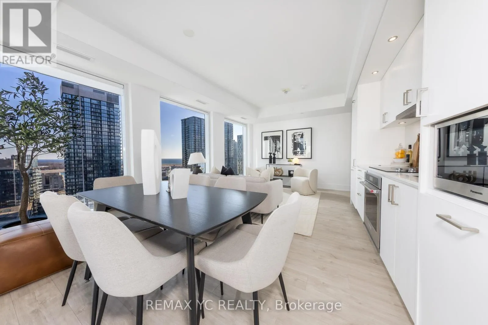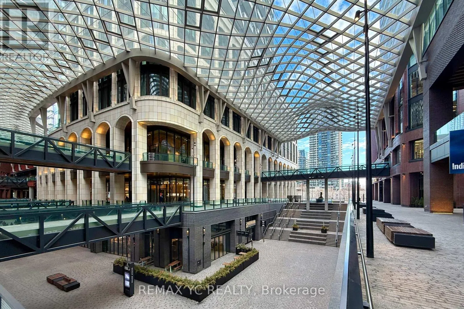 FRONT & SPADINA Welcome to The Well Condos, ideally located in the heart of Toronto's downtown core. This bright southeast corner suite offers spectacular city views, including a stunning CN Tower view. The unit features a spacious open-concept living and dining area, complemented by high-end built-in appliances and modern finishes throughout. The thoughtfully designed split two-bedroom layout provides both comfort and privacy. The primary bedroom includes a large window, generous closet space, and a private ensuite with a walk-in shower. The second bedroom also features a large window and closet, offering plenty of natural light. Residents will enjoy unmatched convenience with direct access to The Well's vibrant retail promenade, featuring a food hall, boutique shops, and renowned restaurants. Transit is effortless with the Spadina streetcar stop just a one-minute walk away. This unit also includes one parking space, making downtown living even more convenient. (id:27476)