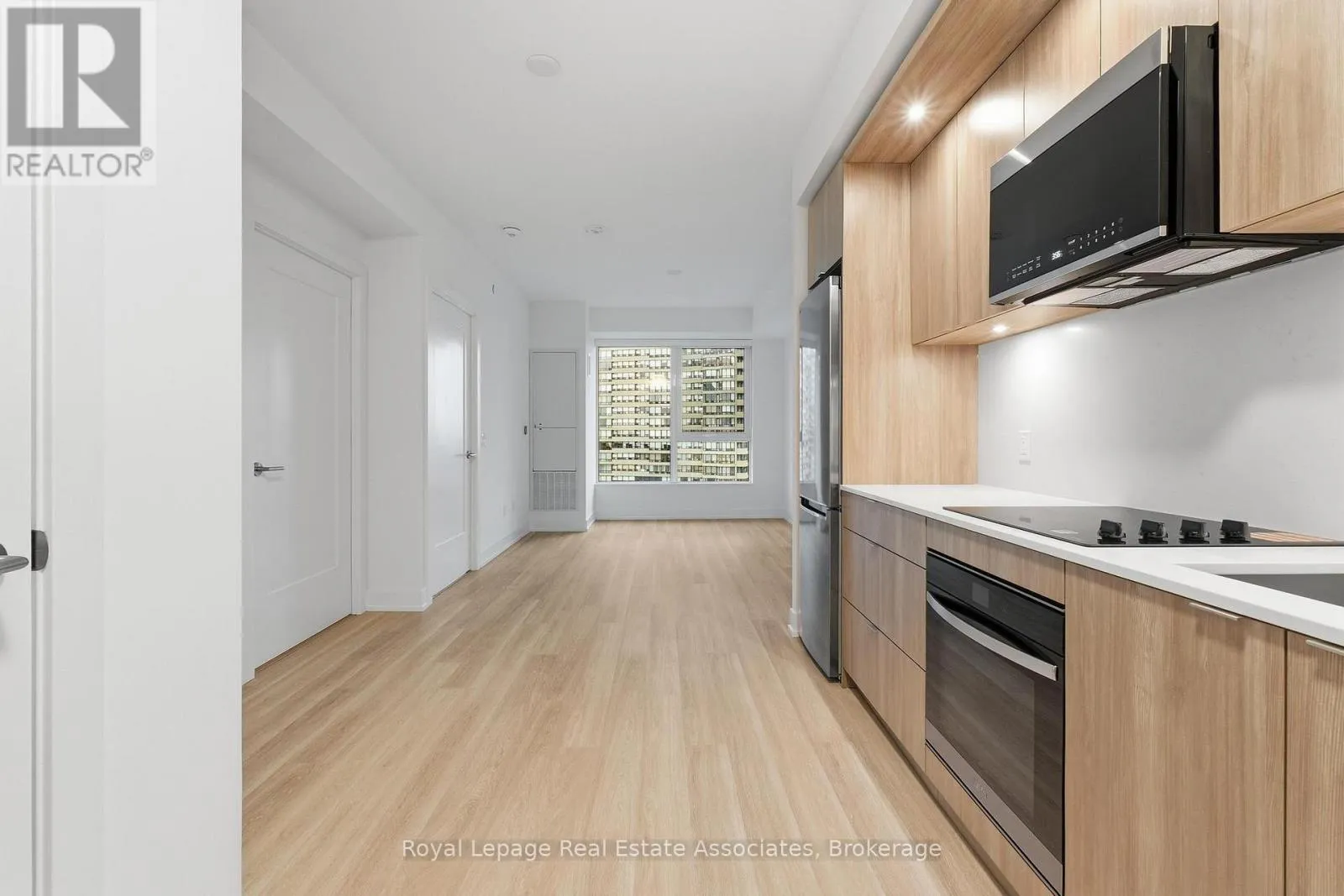 Bloor & Islington Welcome to Westerly 1 at 25 Cordova Avenue, where contemporary design meets everyday convenience in the heart of Islington-City Centre West. This brand-new 1-bedroom suite offers 547 sq. ft. of thoughtfully designed interior space, featuring a bright, carpet-free layout and modern finishes throughout. The modern kitchen features built-in stainless steel appliances and sleek cabinetry, flowing seamlessly into the combined dining and living area. Large windows enhance natural light throughout the space, creating an inviting setting for both everyday living and entertaining. The bedroom offers a comfortable layout with a large closet and window, complemented by a modern 4-piece bathroom finished with clean tilework and contemporary fixtures. In-suite laundry is conveniently located in a dedicated closet, maintaining an efficient and functional layout. Residents enjoy access to amenities including a fitness centre, guest suites, party and meeting rooms, and concierge service. Ideally located steps from Islington Station, parks, grocery stores, cafés, and everyday conveniences, this suite offers comfortable, well-connected urban living in a sought-after Etobicoke community. (id:27476)
