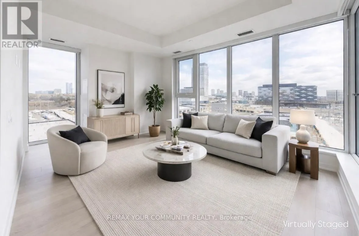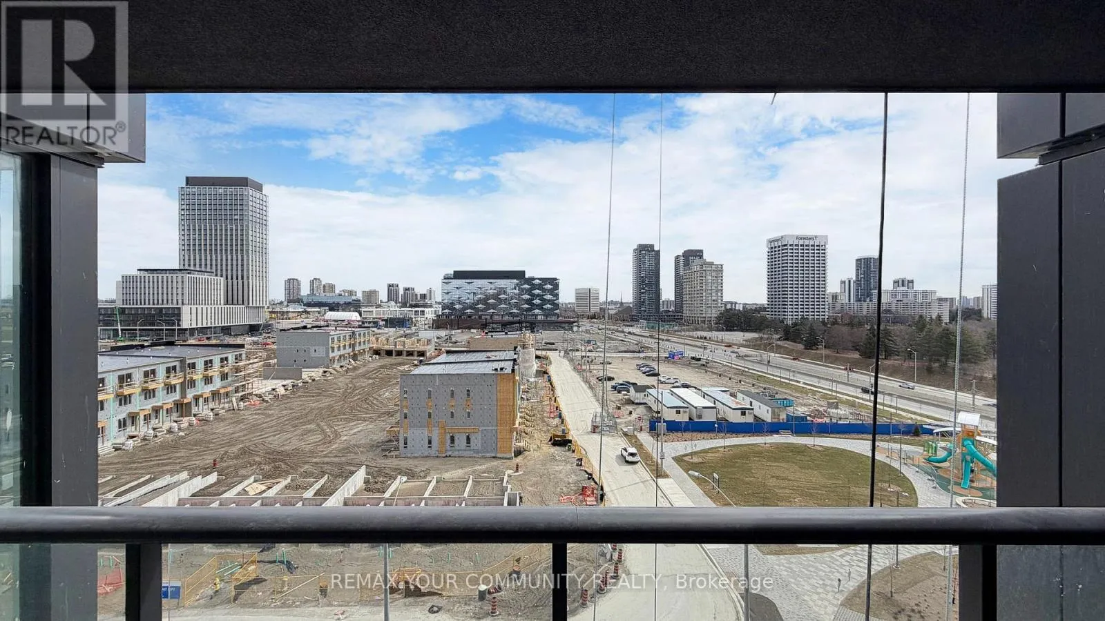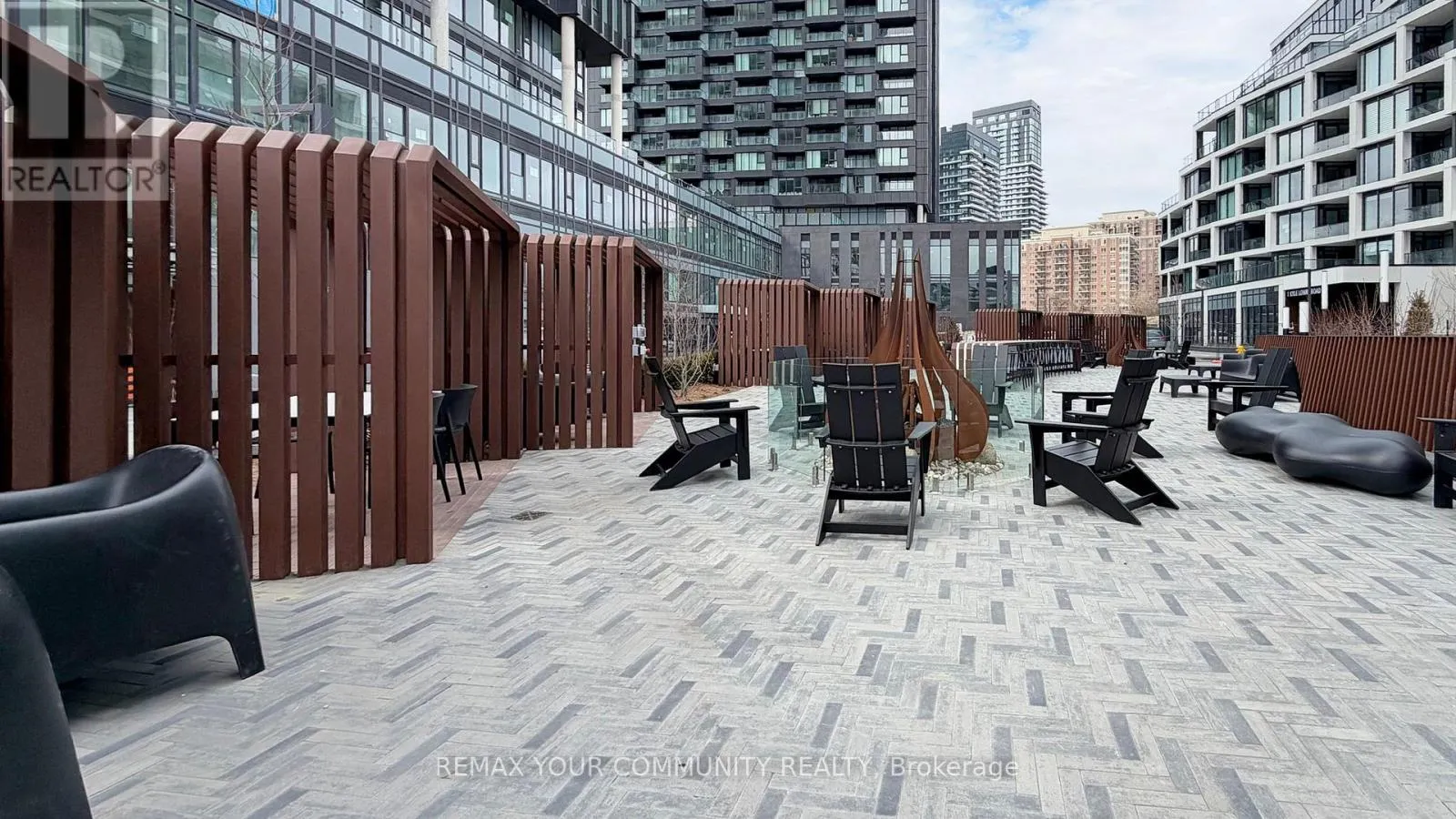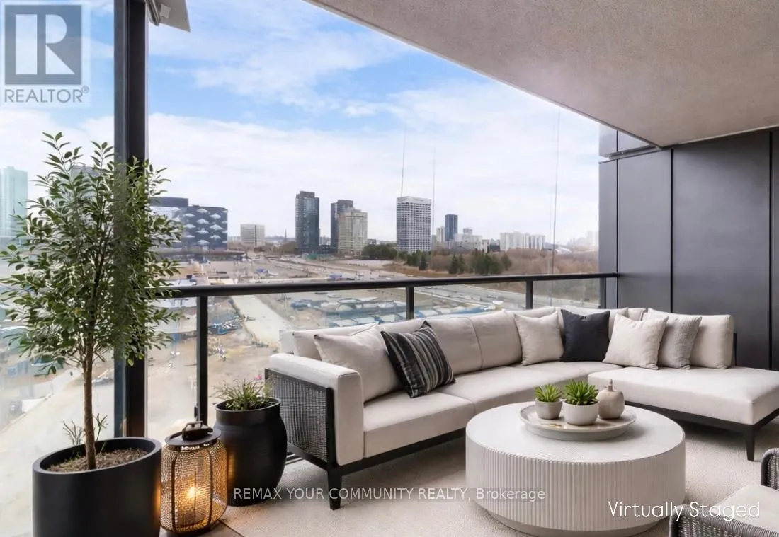 Cross Streets: Don Mills & Eglinton. ** Directions: Mike Palmateer to Champions to Quarrington Lane. This Aspen Ridge Built unit comes with a parking spot and a locker! It's bright and contemporary 6th-floor, 2-bedroom suite offers an excellent sense of space with soaring ceilings, wide-plank flooring, and floor-to-ceiling windows that fill the home with natural light and showcase open urban views. The open-concept living and kitchen area is well proportioned for both relaxing and entertaining with a layout that maximizes every square foot. The sleek, modern kitchen features integrated appliances, quartz countertops, full-height cabinetry, and a stylish tile backsplash, creating a functional and streamlined cooking space without sacrificing storage. The 2nd bedroom can be used as a den or office overlooking the terrace. Step out from the living room to the private terrace to enjoy fresh air and city views. The three-piece bathroom includes a glass-enclosed shower. In-suite stacked laundry adds everyday convenience. Situated in a vibrant, master-planned community at Don Mills & Eglinton, residents enjoy quick access to the DVP, the upcoming Eglinton Crosstown LRT, and an array of nearby amenities, including shops and dining along Laird & Wicksteed, popular local restaurants, and green spaces such as Sunnybrook Park and Wilket Creek.A fantastic opportunity to live in a modern, transit-oriented neighbourhood with style, comfort, and convenience. Some pictures have been virtually staged. (id:27476)