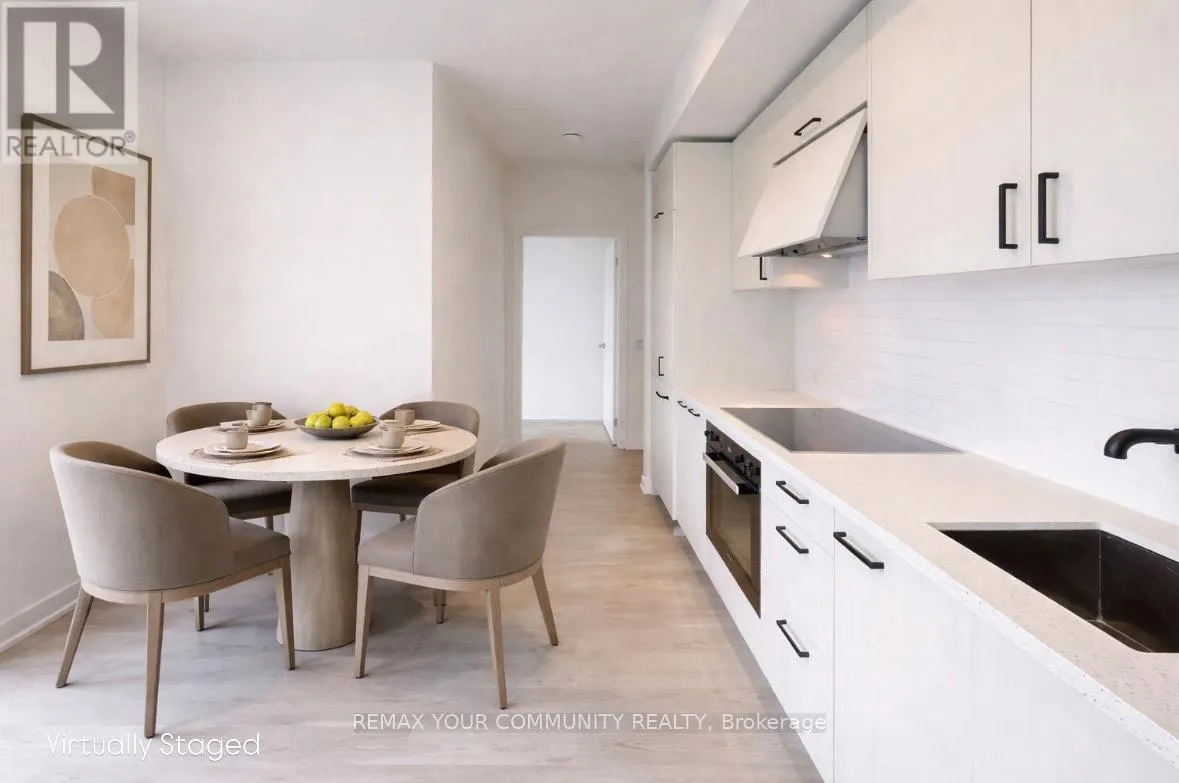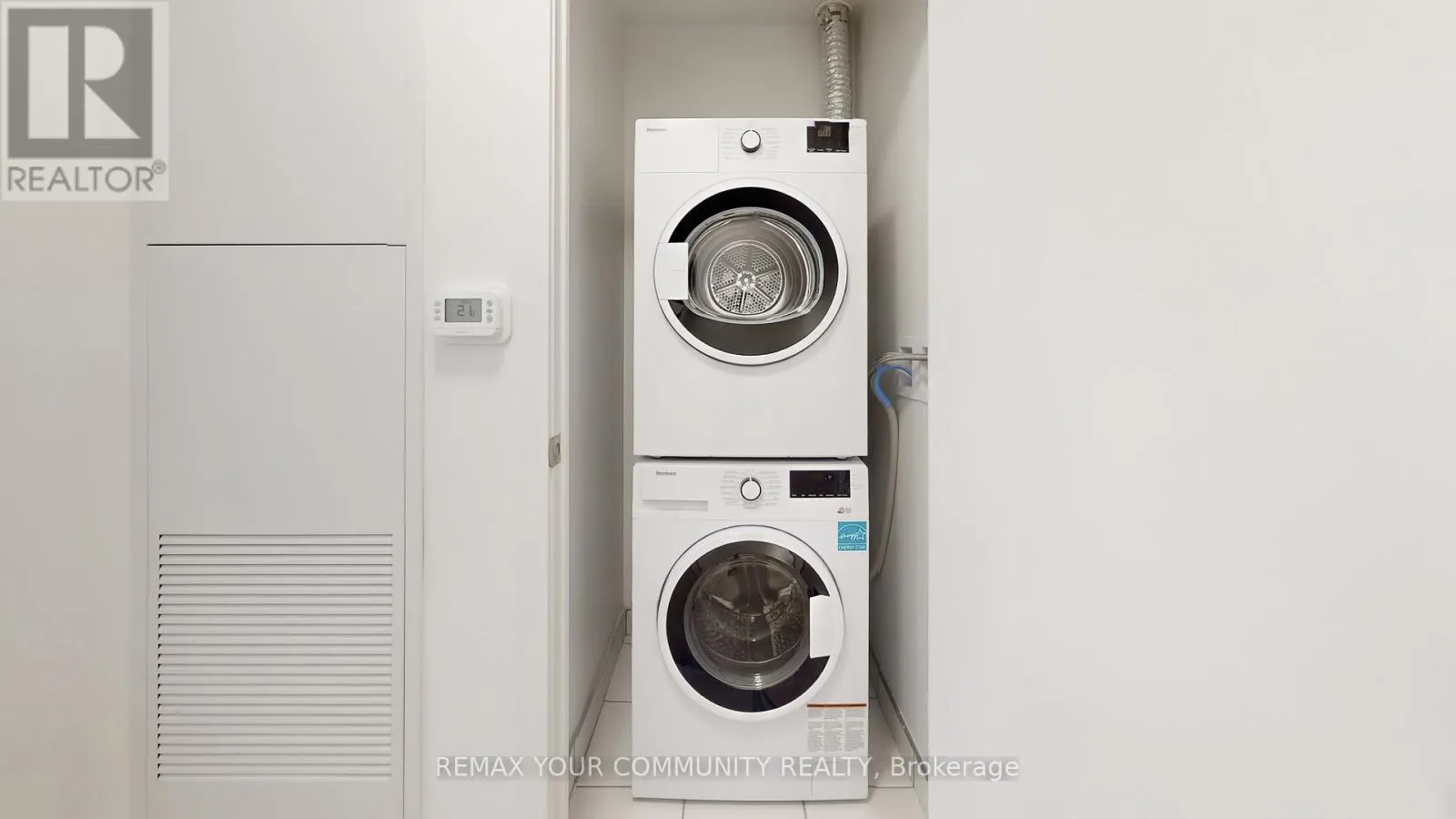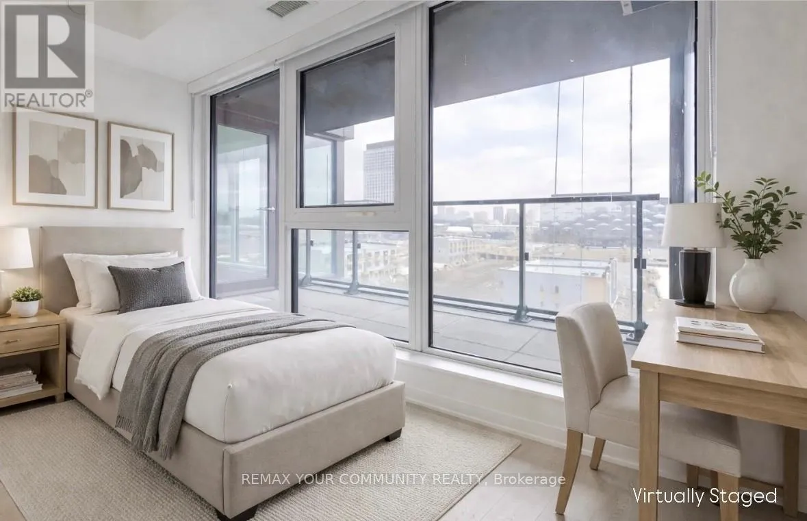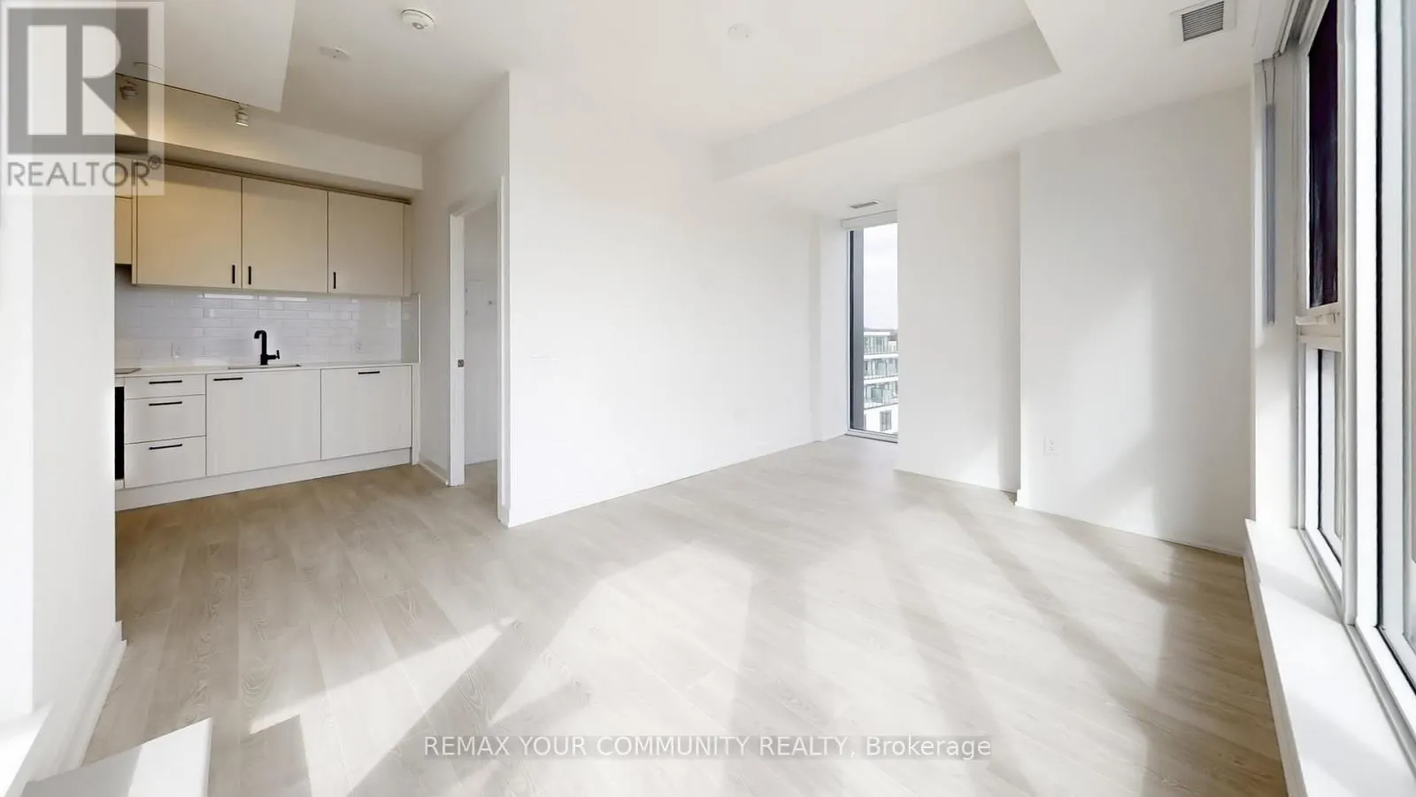 Cross Streets: Don Mills & Eglinton. ** Directions: Mike Palmateer to Champions to Quarrington Lane. This Aspen Ridge Built unit comes with a parking spot and a locker! It's bright and contemporary 6th-floor, 2-bedroom suite offers an excellent sense of space with soaring ceilings, wide-plank flooring, and floor-to-ceiling windows that fill the home with natural light and showcase open urban views. The open-concept living and kitchen area is well proportioned for both relaxing and entertaining with a layout that maximizes every square foot. The sleek, modern kitchen features integrated appliances, quartz countertops, full-height cabinetry, and a stylish tile backsplash, creating a functional and streamlined cooking space without sacrificing storage. The 2nd bedroom can be used as a den or office overlooking the terrace. Step out from the living room to the private terrace to enjoy fresh air and city views. The three-piece bathroom includes a glass-enclosed shower. In-suite stacked laundry adds everyday convenience. Situated in a vibrant, master-planned community at Don Mills & Eglinton, residents enjoy quick access to the DVP, the upcoming Eglinton Crosstown LRT, and an array of nearby amenities, including shops and dining along Laird & Wicksteed, popular local restaurants, and green spaces such as Sunnybrook Park and Wilket Creek.A fantastic opportunity to live in a modern, transit-oriented neighbourhood with style, comfort, and convenience. Some pictures have been virtually staged. (id:27476)