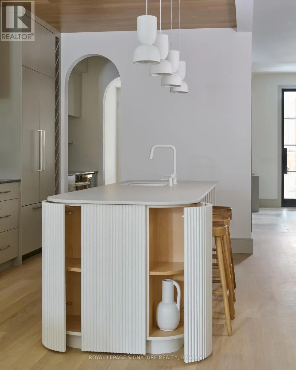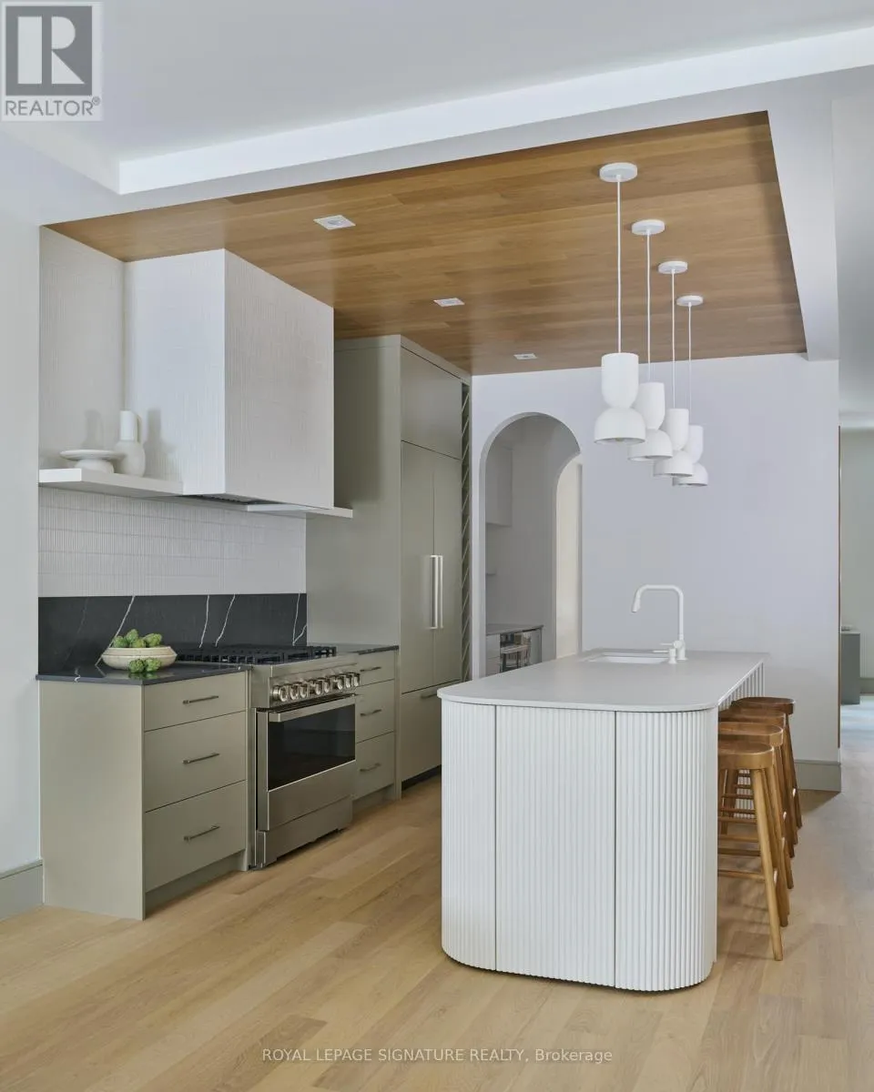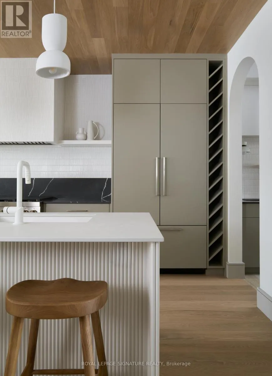 Danforth & Carlaw Welcome to this brand new, three-story executive furnished rental that combines modern luxury with timeless elegance. Featuring 5 bedrooms plus a den and 4.5 bathrooms, this home offers an abundance of space and style for the discerning renter. Step inside to find soaring ceilings and exquisite herringbone hardwood floors throughout. The main living area is anchored by a cozy gas fireplace, perfect for relaxing or entertaining. The modern kitchen is a chefs dream, complete with a breakfast bar, stone countertops, and a pantry with a wet bar. Each bathroom is designed with spa-like finishes, ensuring a serene retreat in your own home. The property also boasts a two-car parking garage, a rare find in this sought-after neighborhood. Nestled in the heart of Carlaw/Danforth, you'll be just steps away from the subway, parks, and nature trails, offering the perfect blend of urban convenience and natural beauty. Bedroom photos are virtually staged. (id:27476)