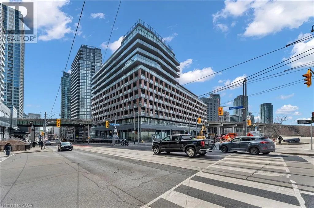 Take Bathurst till you get to Fort York This 10th-floor, 1-bedroom-plus-den hits all the marks for downtown convenience. Transit couldn't be easier: Bathurst, King, & Queens Quay streetcars are all just steps away. Everything you need is walkable: Loblaws, Shoppers, LCBO, Farm Boy, STACKT Market & more are all within blocks. Lake Ontario is 3 blocks south.The building delivers on amenities: concierge, gym, saunas, yoga room, party room with kitchen, theatre room, games room with pool table and foosball, large rooftop terrace & BBQ area, and secure visitor parking.Your neighbourhood: Fort York Library, Aroma Espresso Bar, Tim Hortons, The Bentway for year-round skating and events. Billy Bishop Airport is close by (ideal for frequent travelers), Rogers Centre 15 minutes, Exhibition Place 15 minutes, The Well 15 minutes. CN Tower views right outside.The unit itself is immaculate and spacious, with a wall of windows that brings in ample natural light. Bathroom tile has been updated. Soft-close kitchen cabinetry, plus added storage cabinets in kitchen and bathroom, as well as kitchen island with seating, are included. The 105-square-foot balcony can seat many, and a storage locker is included. Den could be used as office, dining room, or 2nd bedroom. This is efficient downtown living: transit-connected, amenity-rich, walkable to work and play. No car needed, but if you have one, parking spaces for rent come available often. Move in and get on with your life. (id:27476)