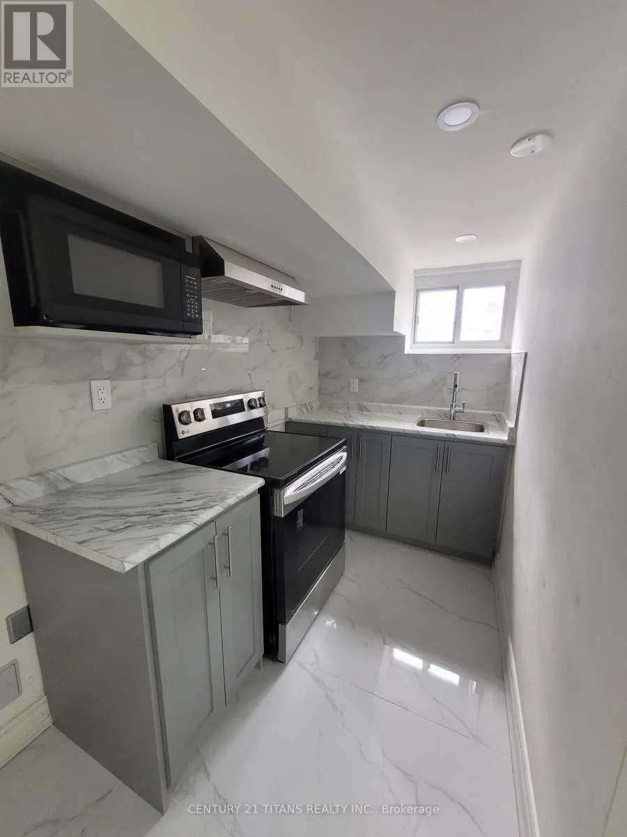 Cross Streets: Midland & Eglinton. ** Directions: Midland and Eglinton. Brand new legal 2 bedroom + den basement unit plus featuring a spacious living room that has a separate door and large windows, could be used as a third bedroom; two oversized bedrooms. Den is 6ftX4ft and could be used for office/study desk/ storage; Enjoy the convenience of your own private laundry, full kitchen, and a beautifully renovated washroom. Move-in ready and ideally located within walking distance to Kennedy Subway, GO trains take you to Union Station in 15mins, Eglinton LRT, with quick access to Eglinton and Midland. Close to grocery stores, plazas, medical offices, pharmacies, schools, churches, mosques, and more-everything you need is right at your doorstep.Tenant is responsible for 40% of utilities (water, hydro, and gas). (id:27476)