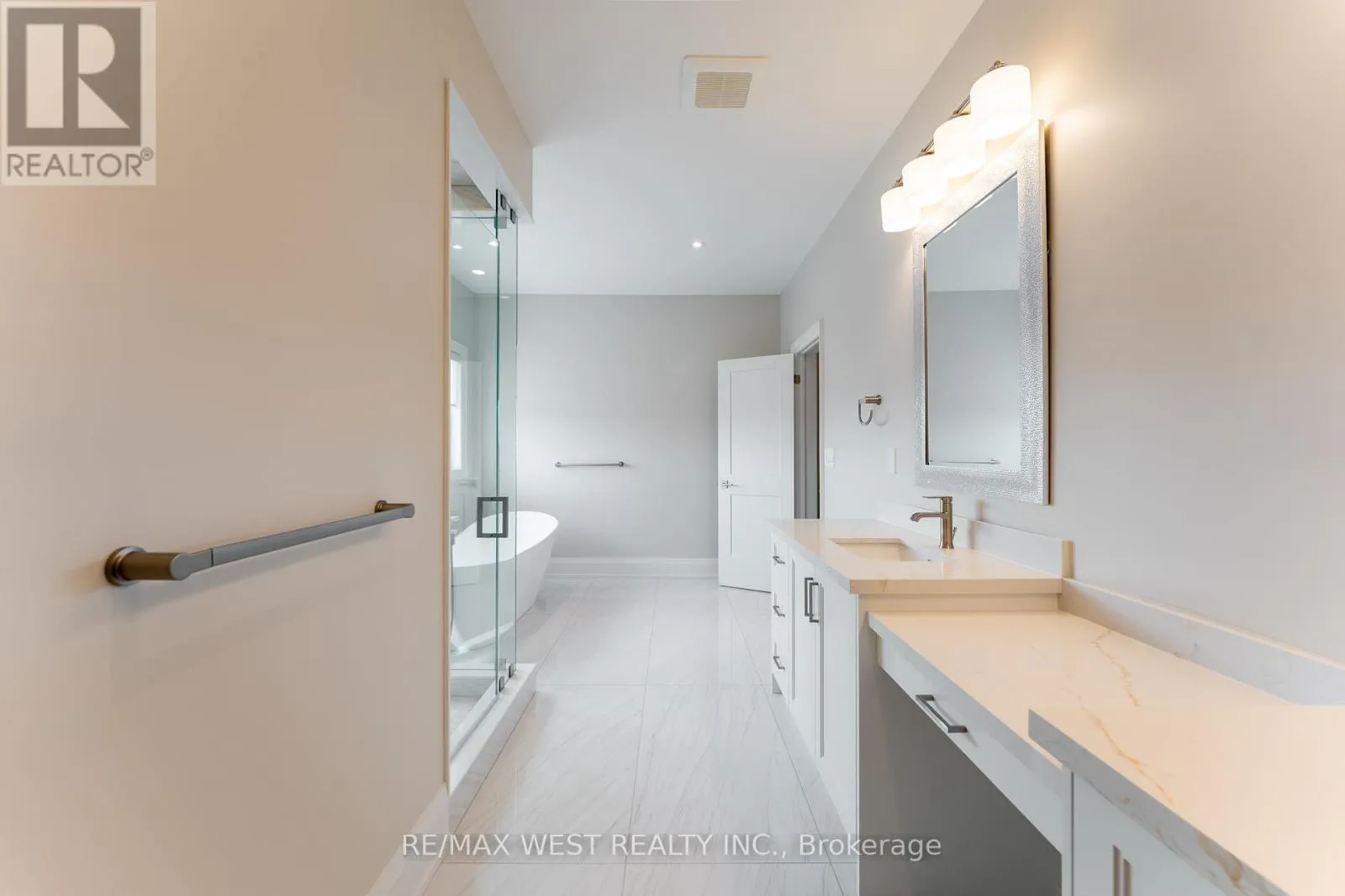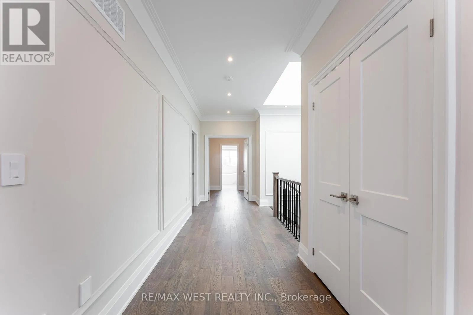 Keele St & Rustic Rd Stunning newly built detached home in the desirable Maple Leaf community. Double-door entry opens to a bright interior with extensive pot lighting and a skylight over the staircase. Main floor features a private office with French doors, custom kitchen with built-in appliances and eat-in area, plus a butler's pantry leading to a separate dining room. The kitchen opens to a spacious family room with fireplace and walk-out to the backyard, perfect for entertaining. Side entrance leads to laundry and mudroom with access to the double car garage. Upper level offers 4 generous bedrooms, including a primary suite with spa-inspired ensuite featuring soaker tub, separate shower, double vanity, and large walk-in closet with organizers. Two additional bathrooms include a lack and Jill with double sinks and a separate bedroom with shower stall bathroom. Multiple walk-in closets throughout. Close to parks, schools, shopping, and transit. (id:27476)