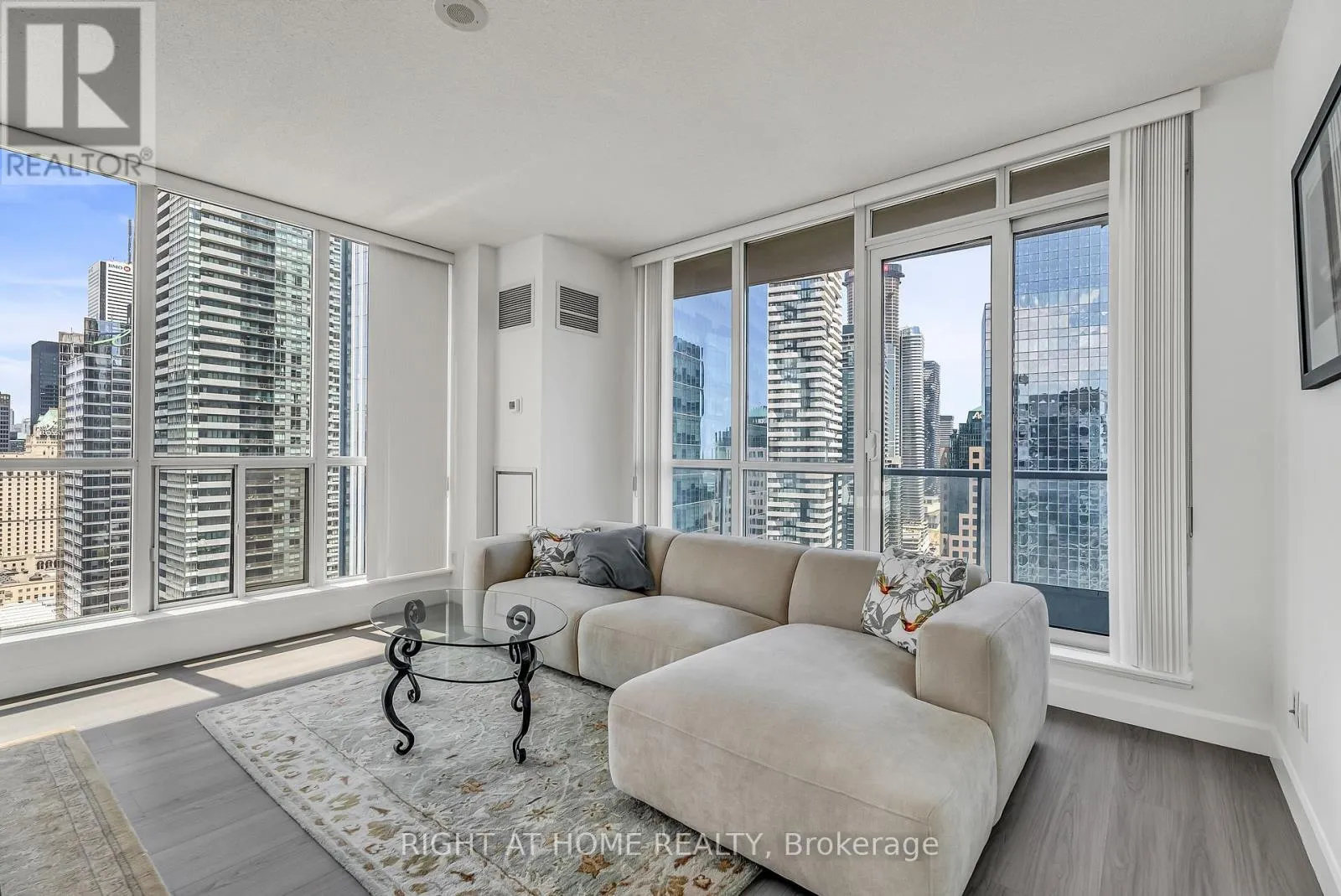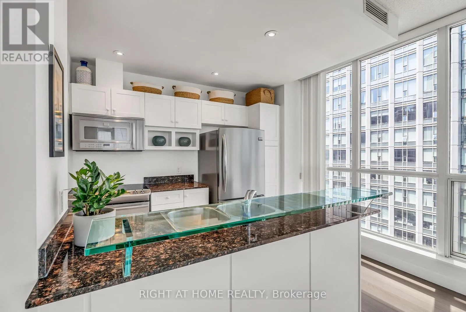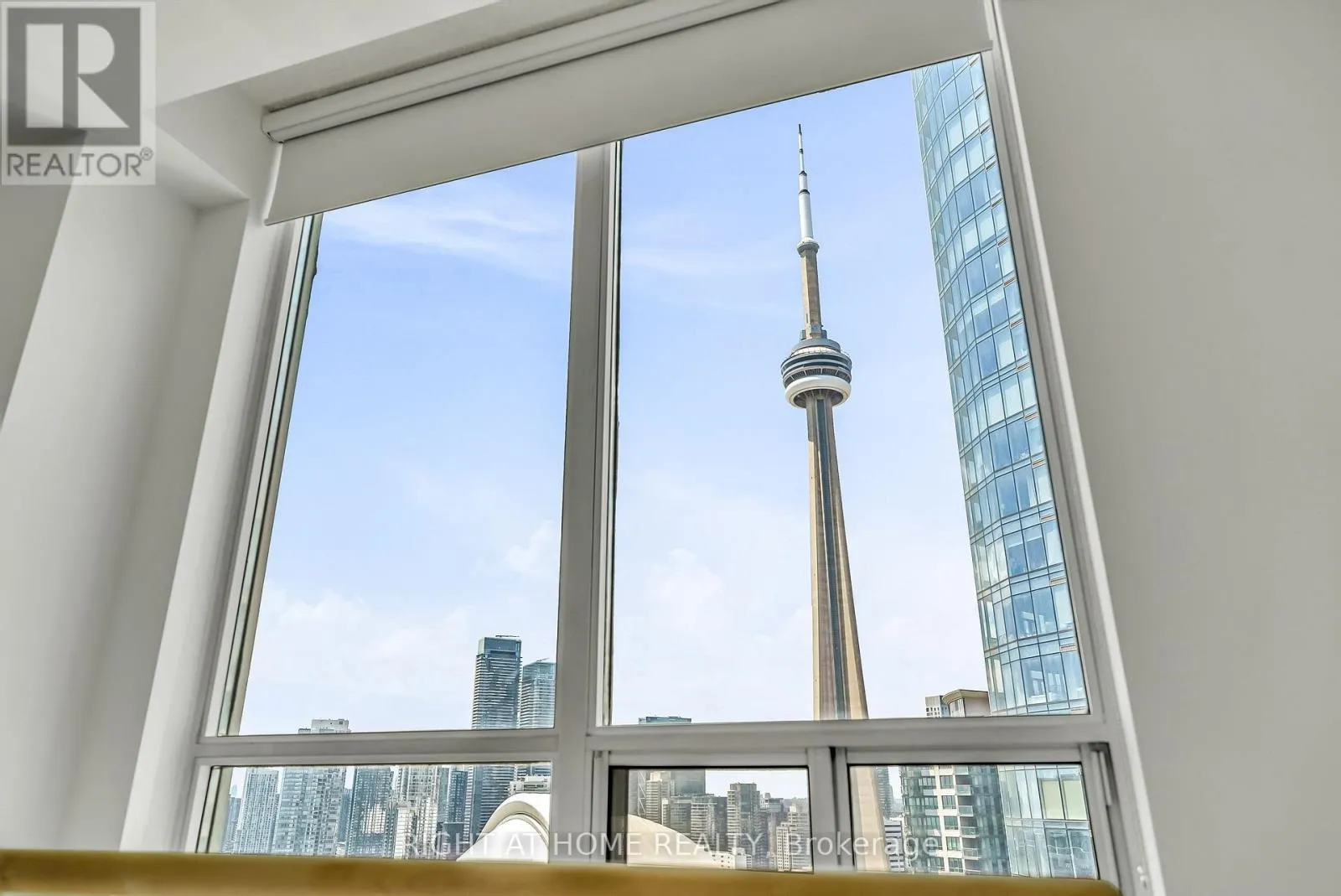 York St and Queens Quay W **Photos are from a previous listing. Furnishings differ but the property shows exceptionally well. Tenants have provided their notice to vacate on May 31, 2026** Stylish, well appointed, and in a prime location!! Spacious layouts like this are hard to come across - this inviting living space allows for multiple seating arrangements and a full size dining table, with natural sunlight pouring into the unit. Enjoy panoramic city views that deliver a true "wow" moment every time you step into the kitchen for your morning coffee. Experience vibrant waterfront living year-round, with skating, concerts, marina access, kayaking, and so much more! Includes one parking space conveniently located on P1, close to the elevators, along with ample storage space within the unit. Unbeatable convenience with access to the PATH and just moments from Union Station, the UP Express, Scotiabank Arena, and the Financial District. Building amenities include an indoor/outdoor pool, fitness centre, sauna, party room, guest suites, and 24-hour concierge. Take advantage of this market and secure an exceptional unit that truly embodies downtown living with a calming lakeside vibe!! (id:27476)