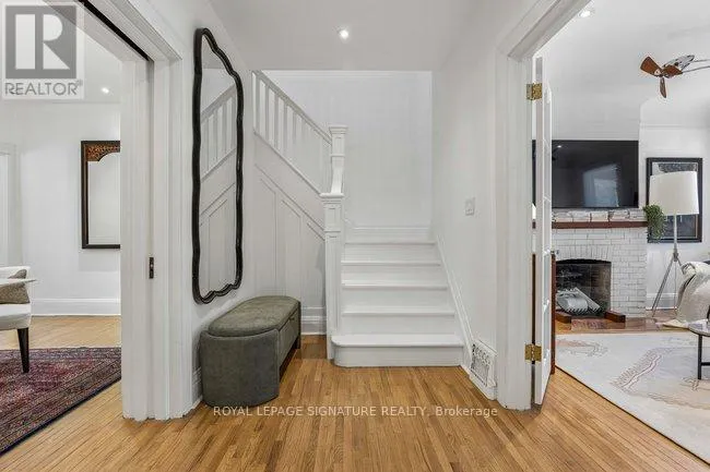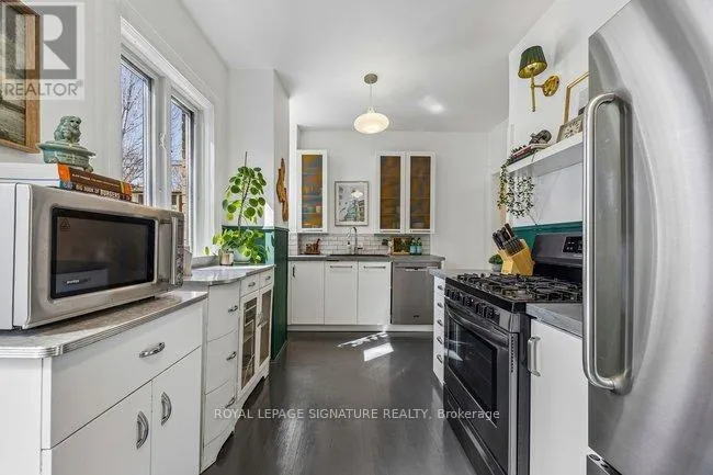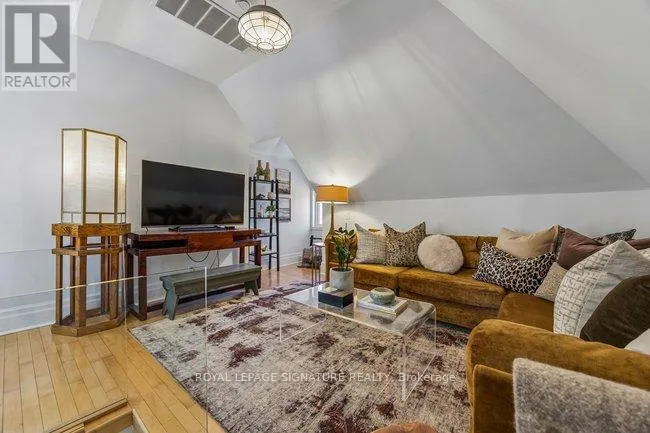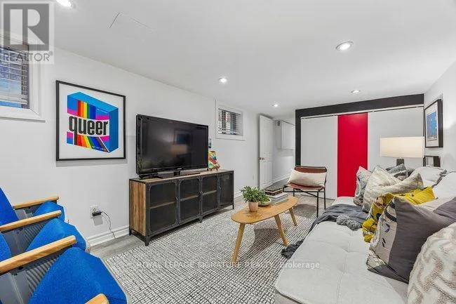 Cross Streets: Queen St E & Pape Ave. ** Directions: Northwest of Queen & Jones. Classic charming brick Leslieville character defines this large approx. 2500 sf, 2 1/2-storey semi-detached home including all finished levels. A wood-burning fireplace warms the living room, creating a cozy heart for gatherings. Bright living room flows to foyer, dining room and kitchen, with direct access to rear elevated deck and private yard oasis. Unique dual-bathroom layout features powder room with toilet and pedestal sink, adjacent to full bath with soaker tub, glass rain shower, vanity, and family-size front-load washer/dryer. Multiple bedrooms served by both main and back stairs. Spacious primary bedroom with wood-burning fireplace and walk-in dressing room. Standout third-floor loft with walk-out to expansive terrace (covered seating + open area, fully wired with electrical) - currently a family room but easily converts to bedroom or office. Finished basement with bedroom, recreation room, bathroom rough-in and expansive storage. Perfect blend of heritage charm and modern function on one of Leslieville's most desirable streets! Quiet, walkable, friendly - steps to Queen St. East amenities, transit and a new Ontario Line station mere blocks away. (id:27476)