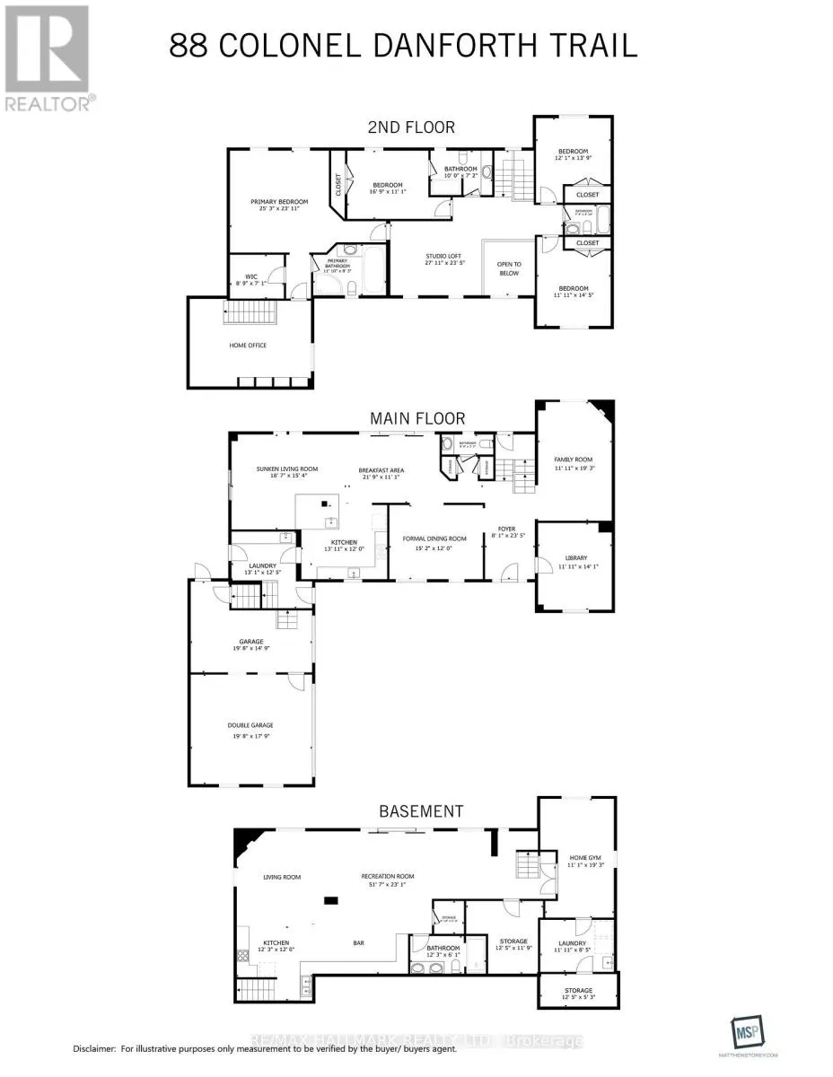 Cross Streets: Meadowvale Rd & Lawrence Ave. E. ** Directions: North of Meadowvale/Law. Something Very Special Here! Gorgeous Executive 2-Storey, 4 Bedroom Home, 5 Washrooms Plus Home boasts 8 Separate Exits/Walkouts! Approx. 3700 SQ.FT. On A 100' x 194' Lot And Triple Garage! The Location Is Perfect, A Country-Like Setting Next To Highland Creek. Spacious Principle Rooms Include: Formal Foyer With Skylight & Open Staircase; Library; Family. Room. With Gas Fireplace; Formal Dining. Room; Sunken Living Area. Incls: Mounted T.V. & Walkout To Terrace; Main Floor 2pc Powder Room; Separate Breakfast Area With Walkout To A 40 Foot+ Terrace Overlooking Yard. Updated Dream Kitchen, 6 Built-In Appliances, Intercom, Breakfast Bar With Mini Sink & Wine Fridge. Next to Kitchen An Updated Laundry, Direct Garagr Access and Private Back Stairway to Primary Bedroom and Home Office! Home Features Updated Windows, Updatef Interior & Exterior Doors, Self-Closing Interior Doors, Motorized Blinds W/Remotes, Porcelain & Ceramic Floors, Engineered Hardwood Flrs, Pot Lights And Crown Moulding. The Second Floor Has 4 bedrooms Plus Studio Loft. A large Primary With 5 Piece Ensuite, Walk-in Closet And Home Office With Staircase Leading To Kitchen, Lndry And Garage. 2nd Bdrm incls Semi-4pc Ensuite. The Studio Loft has loads of Potential Including A 5th Bedroom. A Brilliant Backyard Oasis With Saltwater Inground Pool And All The Elements for Exquisite Outdoor Entertaining. (Fully Fenced Yard; Covered Patio With Second Mounted TV, Hot Tub, Gas BBQ, Gazebo With Third Mounted TV And Change Rooms.) The Finished Basement With Separate Entrance Is Perfect For Entertaining! Includes: A Lovely Rec Rm With Gas Fireplace And Fourth Mounted TV; Massive Bar for Entertaining and Fifth Mounted TV; Games Area And A Second Kitchen; Plus A Separate Home Gym W/Rubber Floor. Could Be Another Bedroom; Second Laundry + Storage And 5pc Bath. Please Review Floor Plans/Photos/Matterport/Survey. Note: All Hardwood Floors are "Engineered" (id:27476)