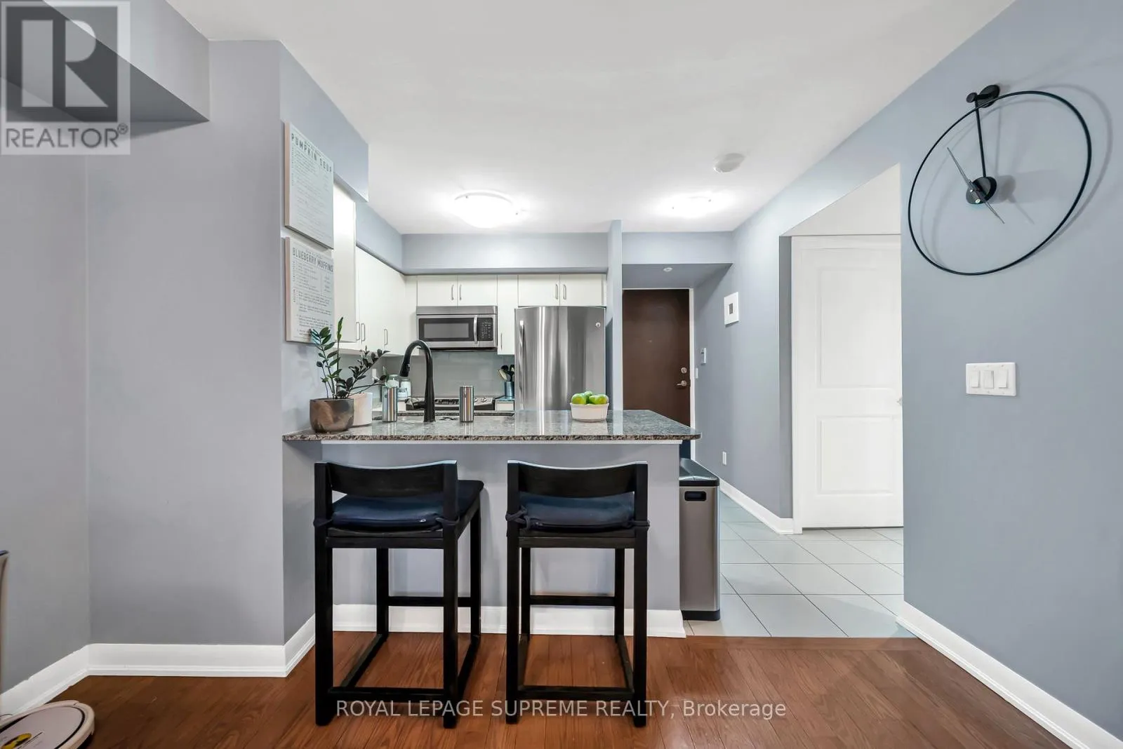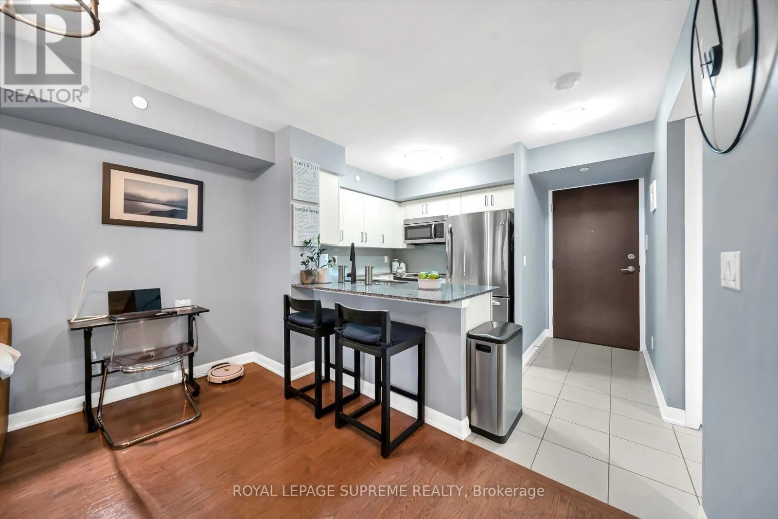 GARDENER/HWY 427 Welcome to One Sherway. A rarely offered 1 Bedroom + Den with an expansive terrace and unobstructed north-facing views that stretch across the treetops and valley beyond. Autumn here is a front-row seat to gold and crimson. Evenings bring soft sunsets that feel almost cinematic. Inside, the suite is refined and impeccably maintained. Rich hardwood floors flow throughout, grounding the space with warmth and continuity. Floor-to-ceiling windows flood the home with natural light, amplifying the sense of air and openness. The kitchen is both elegant and functional, featuring granite countertops, upgraded cabinetry, and sleek stainless steel appliances-perfect for quiet mornings or effortless entertaining. The den offers flexibility for a private home office, reading lounge, or guest space. The bedroom is tranquil and inviting, designed for true rest. This suite is completely move-in ready, with excellent air conditioning and thoughtful care evident throughout. Included is one underground parking space and an oversized locker, rare conveniences that elevate daily living. The lifestyle at One Sherway is where this address truly shines. Residents enjoy a fully equipped fitness centre, yoga studio with classes, indoor swimming pool, hot tub, steam room, and dual dry saunas. A sun deck invites warm summer evenings. Entertain in the party room or theatre room, unwind in the billiards lounge, host guests in the on-site guest suite, or take meetings in the quiet study room. A 24-hour concierge ensures seamless living, with ample visitor parking for added convenience.Outside your door, Sherway Gardens offers premier shopping and dining. Transit is steps away, with effortless access to Downtown Toronto, Pearson Airport, and major retailers including Costco, Ikea, and Walmart.This is more than value. It is lifestyle, location, and luxury-priced to move, yet designed to impress. (id:27476)
