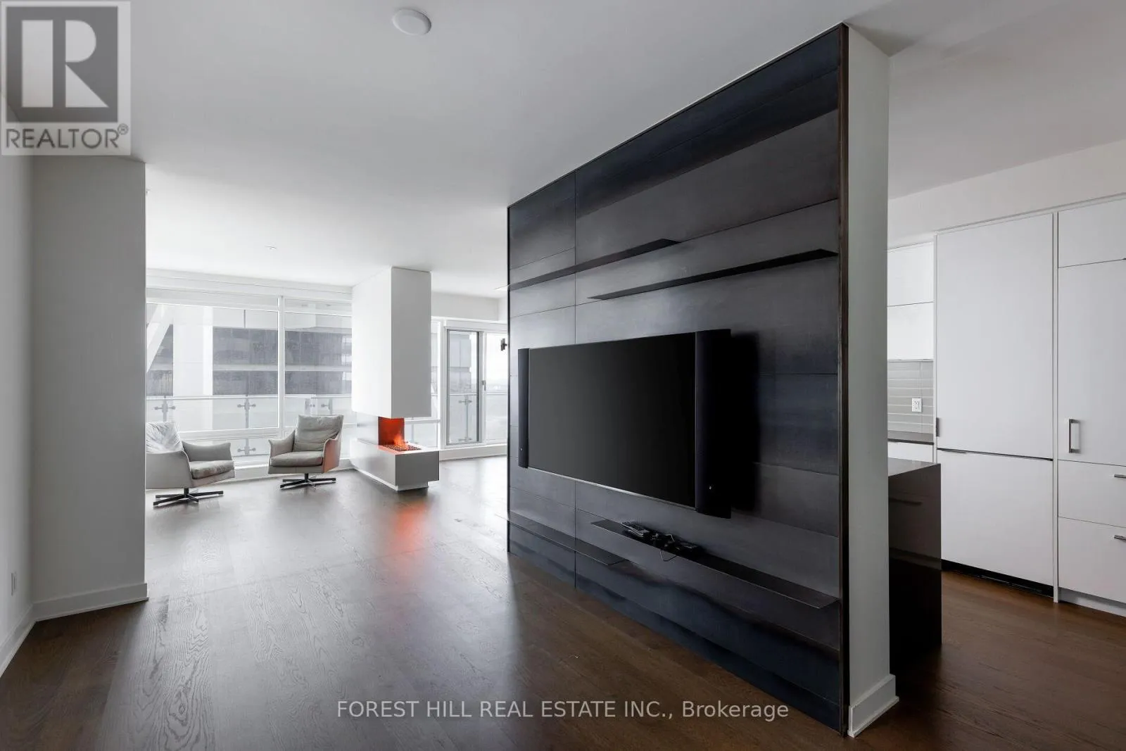 Yonge & Bloor Motivated and priced to sell! At the corner of Yonge & Bloor awaits breathtaking views at this 1727 Sq.ft beautifully upgraded condo. This suite includes a functional and open layout with 2 large bedrooms including ensuite bathrooms and walk in closets. In addition, an oversized den that can easily be used as a 3rd bedroom. Three full bathrooms in this suite. This unit is finished with beautiful wide plank engineered hardwood flooring throughout as well as high ceilings. Custom built in TV wall units in the living room and den. Large floor-to ceiling windows throughout the unit with automated blinds. The dining and living area include a custom built in water vapour fireplace to help separate the areas. The kitchen includes high lacquer white cabinetry with plenty of storage space and top-of-the-line appliances. Appliances include: Sub Zero fridge, 2 freezer drawers, Sub Zero Wine Fridge & Wolf cooktop and oven. The oversized balcony provides show stopping views from the CN Tower, to the lake, the city and beyond. Premium parking spaces (P2 #13,14) and locker (P2 #52) are located very close to the door/elevators. High end upgrades throughout the unit and move in ready. At One Bloor the world class amenities span across two floors including: indoor/outdoor pools, BBQ area, spa with treatment rooms, state of the art gym and equipment, hot/cold plunge, lounge areas and party rooms. Steps away from world class dining, shopping, and entertainment options that Toronto has to offer. (id:27476)