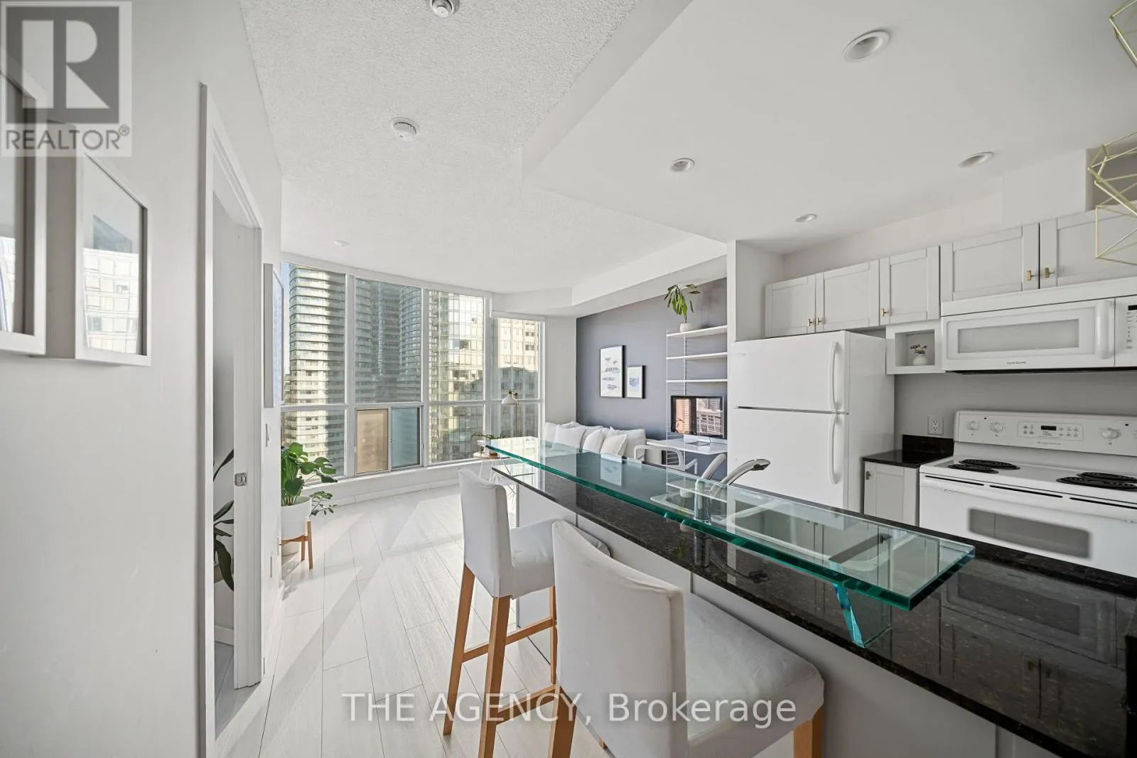 Queens Quay w & York St Stylish Condo Living Just Steps From the Lake! A Charming Juliette Balcony Welcomes You Into This Bright and Impeccably Maintained Suite Offering Refined Condo Living Just Moments From Toronto's Vibrant Harbourfront. Completely Move in Ready, This Home Offers; the Perfect Blend of Comfort, Style, and Convenience. Featuring; 9 Ft Ceilings, Upgraded Laminate Flooring Throughout With No Carpet, a Well Maintained Cabinetry, and a Thoughtfully Designed Open Concept Layout. The Space is Ideal for Both Everyday Living and Effortless Entertaining. Floor to Ceiling Windows Allow Natural Light to Pour Throughout the Home, Filling the Space With Warmth and an Elegant, Welcoming Feel Throughout the Day. The Spacious Primary Bedroom Serves as a Peaceful Retreat, Complete With a Coveted Walk in Closet and Blackout Blinds for Added Comfort. The Modern Bathroom is Finished With Tasteful Touches, While Ample Storage Throughout the Suite Ensures Practicality and Ease of Living. A Large Ensuite Laundry Adds to the Everyday Convenience, and Two Wall Mounted Tvs Are Included, Making This Home Truly Turnkey. Residents Enjoy Access to Exceptional Resort Style Amenities, Including Indoor and Outdoor Pools, a Fully Equipped Fitness Centre, Sauna, Elegant Party Spaces, and 24 Hour Concierge Service. Perfectly Positioned Just Steps From Lake Ontario and the Harbourfront, This Residence Offers an Unmatched Walkable Lifestyle With Easy Access to Transit, Restaurants, Shopping, Scotiabank Arena, Rogers Centre, and the Financial and Entertainment Districts. A Perfect Opportunity to Enjoy Stylish City Living With the Lake Right at Your Doorstep. (id:27476)