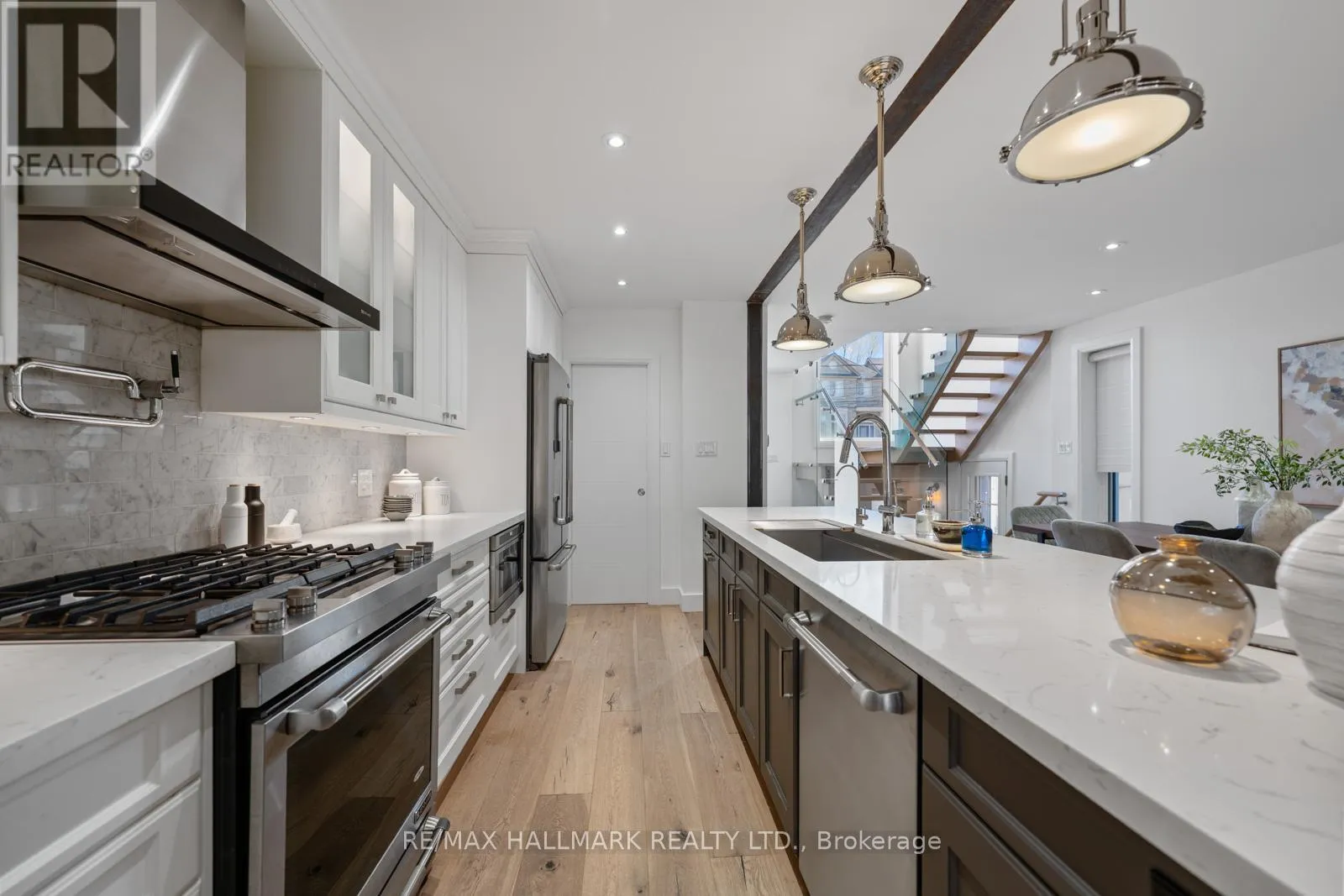 Cross Streets: Yonge St. and Lawrence Ave W. ** Directions: Cranbrooke between Greer Rd. and Jedburgh Rd. Set in the heart of Lawrence Park North, one of Toronto's most coveted family neighbourhoods, this beautifully renovated home offers a rare blend of refined design and exceptional lifestyle. On a quiet, tree-lined street where neighbours connect and children walk to school, this residence truly captures the essence of community living. Just a short 5-minute walk to both John Wanless Public School and Lawrence Park Collegiate Institute, with convenient access to the subway and Highway 401, the location is as impressive as the home itself. Thoughtfully reimagined, the interior unfolds into a bright, open-concept main floor designed for both everyday living and sophisticated entertaining. The chef's kitchen is the heart of the home, anchored by a generous centre island with integrated beverage fridge, Caesarstone countertops, premium stainless steel appliances with gas range, and a walk-in pantry. A seamless transition leads to the expansive rear family room, where exposed steel beams introduce a subtle industrial edge, and floor-to-ceiling glass sliding doors open onto a private deck-creating a true indoor-outdoor experience, ideal for year-round enjoyment. Upstairs, three well-proportioned bedrooms offer comfort and tranquility, including a beautifully appointed primary retreat featuring an oversized custom closet, sliding glass doors to a private balcony, and a spa-inspired ensuite with double sinks, a spacious glass shower, and a deep soaker tub. Two full bathrooms and a main floor powder room provide both function and ease for family living. The finished lower level adds exceptional versatility, with exposed brick, a large recreation space (or optional extra bedroom), a dedicated home office area, a 3-piece bath and laundry room. Complete with license pad parking, extensive built-ins, and abundant storage throughout, this home delivers both style and substance in one of North Toronto's most desirable communities. (id:27476)