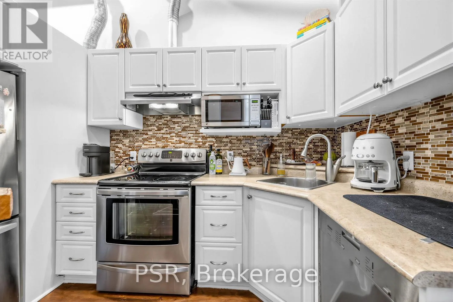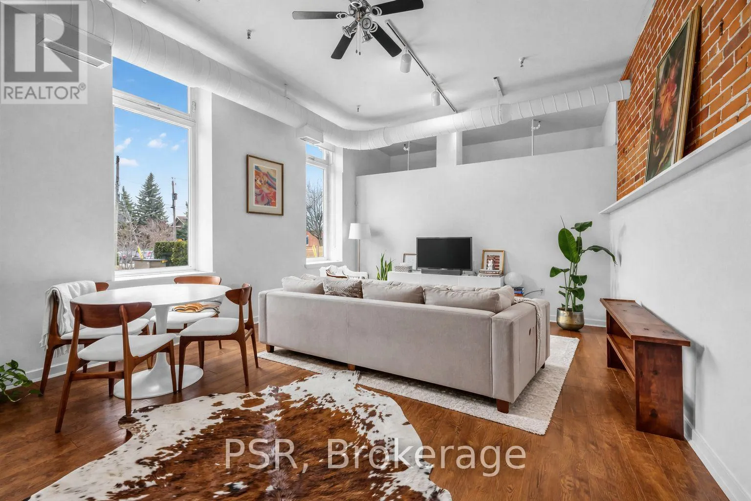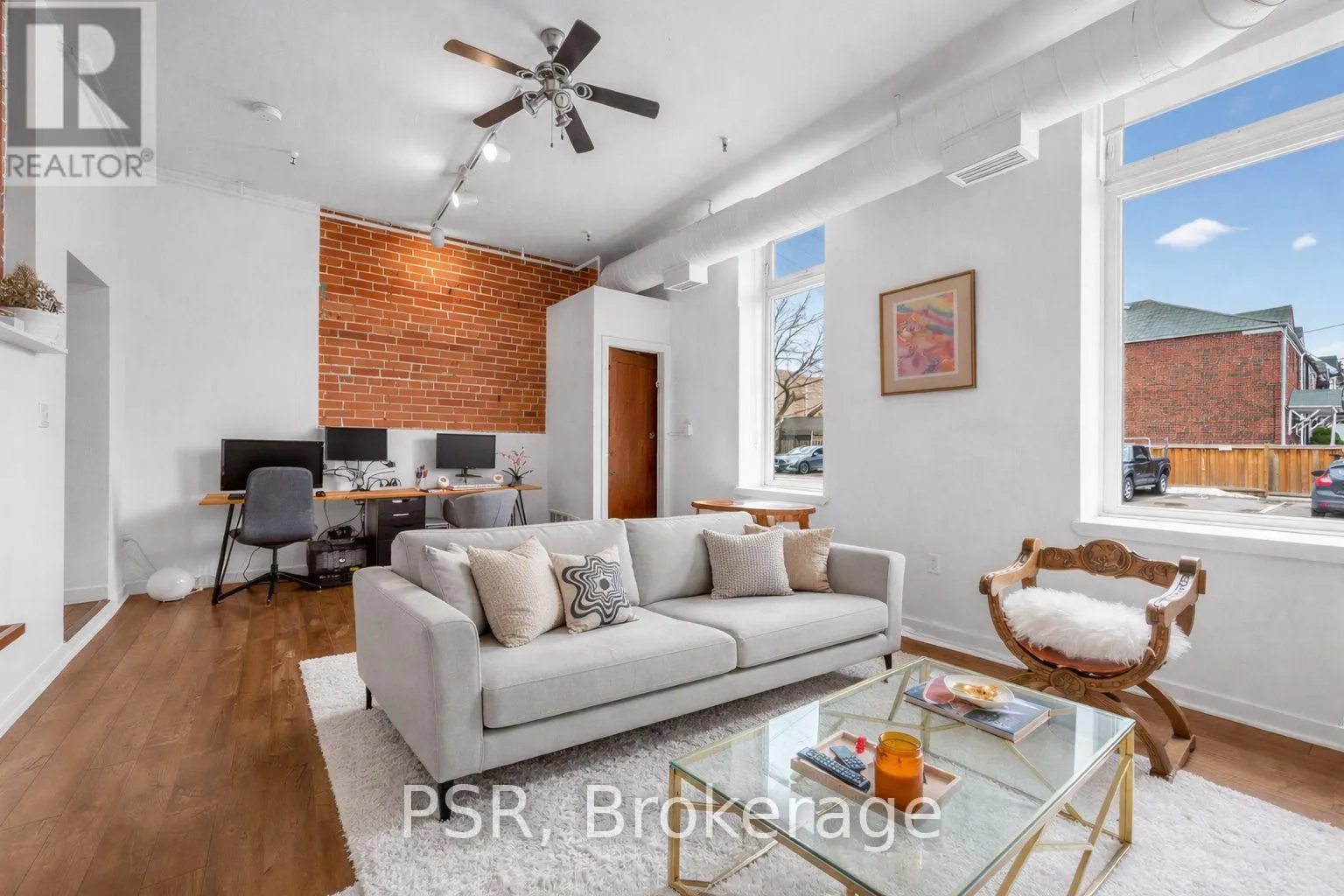 St Clair W & Caledonia Welcome to this exceptional, sun-drenched brick-and-beam loft in the boutique Stockyards Lofts building! Perfectly positioned on the coveted southwest corner, this authentic hard loft is flooded with natural light throughout the day. Featuring soaring ceilings and a thoughtfully designed layout with defined living spaces, this loft offers the best of both style and functionality. The spacious bedroom provides a true retreat, complete with convenient in-room laundry and large west facing windows. The expansive living area is bright and versatile, easily accommodating both a comfortable living space and a full dining setup. Character-rich details like exposed brick, beams, and unique barn doors add warmth and personality throughout. The updated bathroom adds a modern touch, while the kitchen is equipped with stainless steel appliances and a charming breakfast bar-ideal for casual dining. Complete with an above-ground parking space, this loft checks all the boxes. Located in vibrant Weston-Pellam Park, you'll enjoy easy access to an ever-growing selection of shops, restaurants, and amenities, along with excellent transit options via the nearby St. Clair W streetcar. A rare opportunity to own a hard loft in one of the city's most dynamic neighbourhoods! (id:27476)