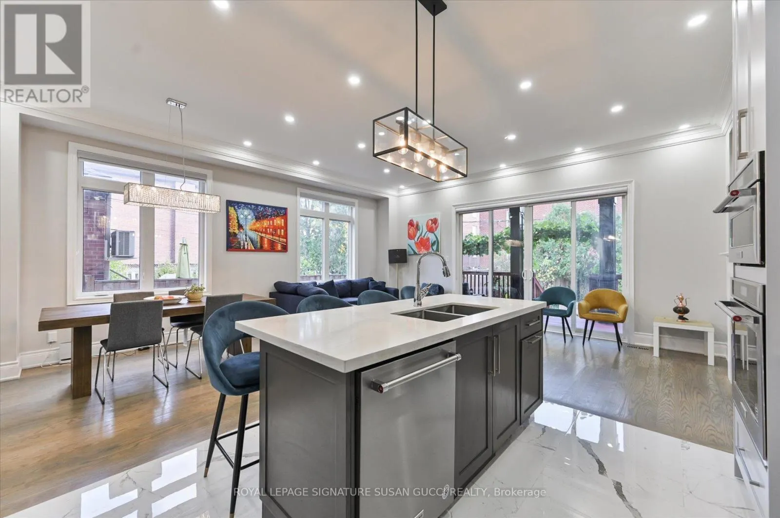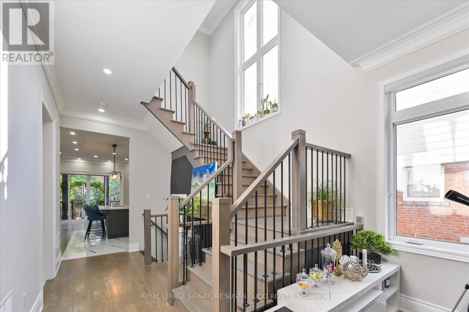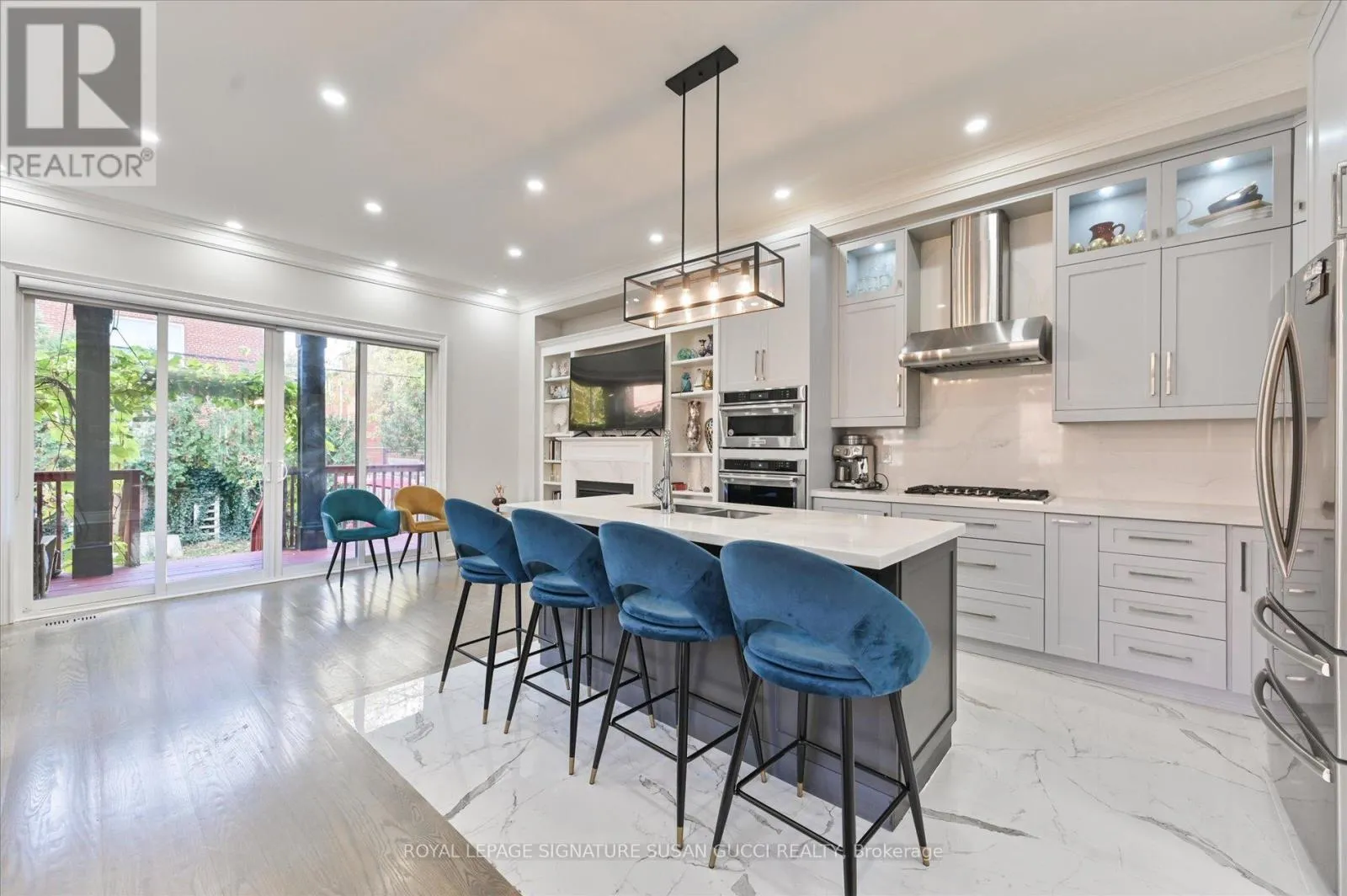 St Clair Ave E & Victoria Park Ave Custom All-Brick Family Home in Topham Park. Built for the owner's own use with careful attention to detail, this solid all-brick home delivers space, function, and comfort for real family living. The main floor features a stunning open-concept layout with a chef-inspired kitchen, dining, and family room combined - ideal for both everyday life and entertaining. Tall ceilings, hardwood floors, large windows, and a skylight bring natural light throughout.The home offers 7 bedrooms in total (4 up + 3 down), making it ideal for larger families or multigenerational living. A separate side entrance provides rental potential or the option for a fully self-contained in-law suite. The principal bedroom is a private retreat with a walk-in closet, spa-style ensuite with soaker tub and rain shower, and a private balcony for morning coffee. The second floor includes two full bathrooms plus one half bathroom and convenient laundry. A covered porch off the main living area extends your everyday space - perfect for unwinding in the shade, enjoying summer rain showers, or watching kids play in the generous, fully fenced backyard.Located on a quiet, well-loved street in Topham Park, a neighbourhood where families stay long-term and many homes are being rebuilt, making this a sound investment. Walk to Topham Park for playgrounds, splash pad, baseball, soccer, pickleball, and community programs at the clubhouse. Enjoy the best mix of big-box and boutique shopping nearby, easy DVP access, and convenient travel with both the subway and LRT within reach. A rare opportunity to own a thoughtfully built home in a family-first community. ** OPEN HOUSE SAT APR 4 & SUN APR 5, 2-4pm ** (id:27476)