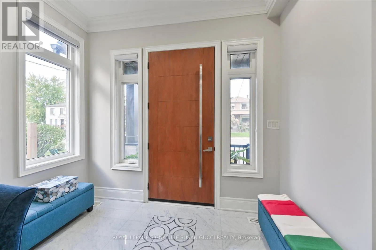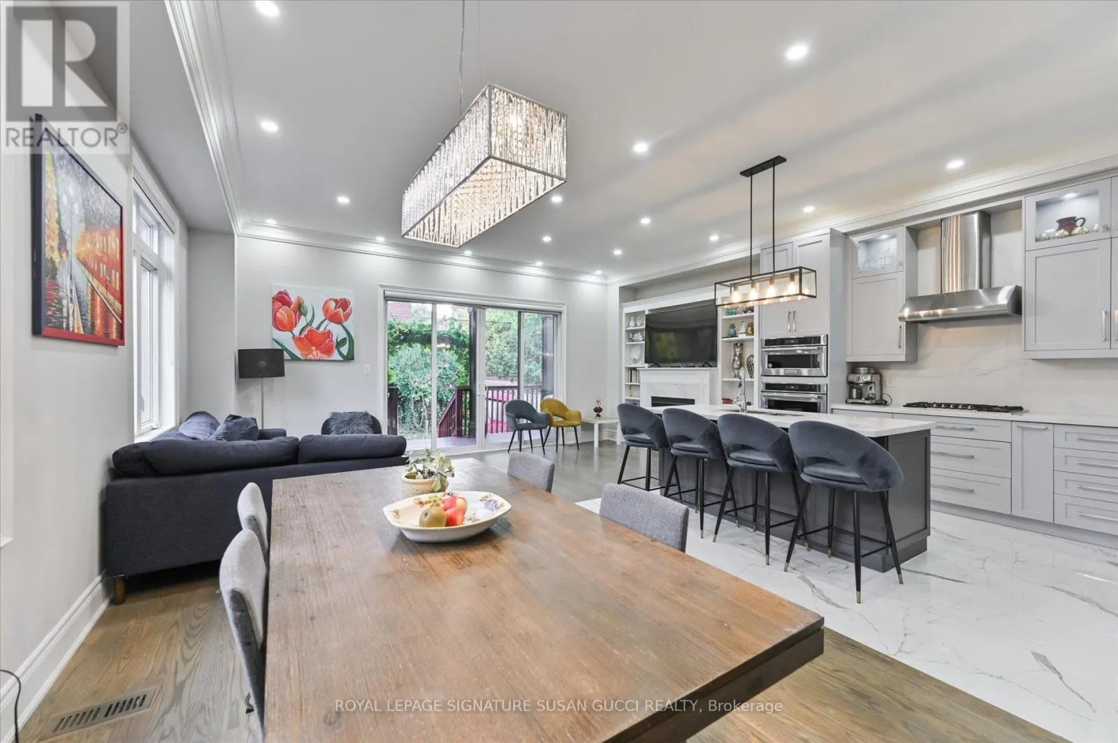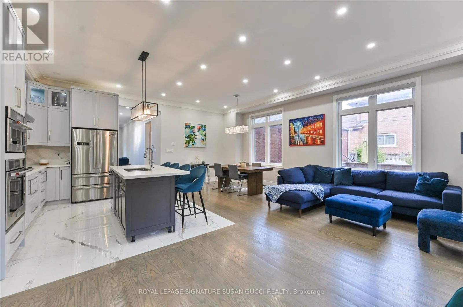 St Clair Ave E & Victoria Park Ave Custom All-Brick Family Home in Topham Park. Built for the owner's own use with careful attention to detail, this solid all-brick home delivers space, function, and comfort for real family living. The main floor features a stunning open-concept layout with a chef-inspired kitchen, dining, and family room combined - ideal for both everyday life and entertaining. Tall ceilings, hardwood floors, large windows, and a skylight bring natural light throughout.The home offers 7 bedrooms in total (4 up + 3 down), making it ideal for larger families or multigenerational living. A separate side entrance provides rental potential or the option for a fully self-contained in-law suite. The principal bedroom is a private retreat with a walk-in closet, spa-style ensuite with soaker tub and rain shower, and a private balcony for morning coffee. The second floor includes two full bathrooms plus one half bathroom and convenient laundry. A covered porch off the main living area extends your everyday space - perfect for unwinding in the shade, enjoying summer rain showers, or watching kids play in the generous, fully fenced backyard.Located on a quiet, well-loved street in Topham Park, a neighbourhood where families stay long-term and many homes are being rebuilt, making this a sound investment. Walk to Topham Park for playgrounds, splash pad, baseball, soccer, pickleball, and community programs at the clubhouse. Enjoy the best mix of big-box and boutique shopping nearby, easy DVP access, and convenient travel with both the subway and LRT within reach. A rare opportunity to own a thoughtfully built home in a family-first community. ** OPEN HOUSE SAT APR 4 & SUN APR 5, 2-4pm ** (id:27476)