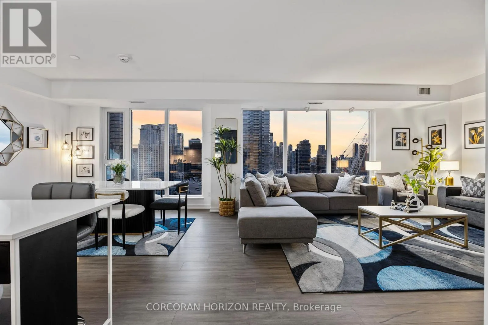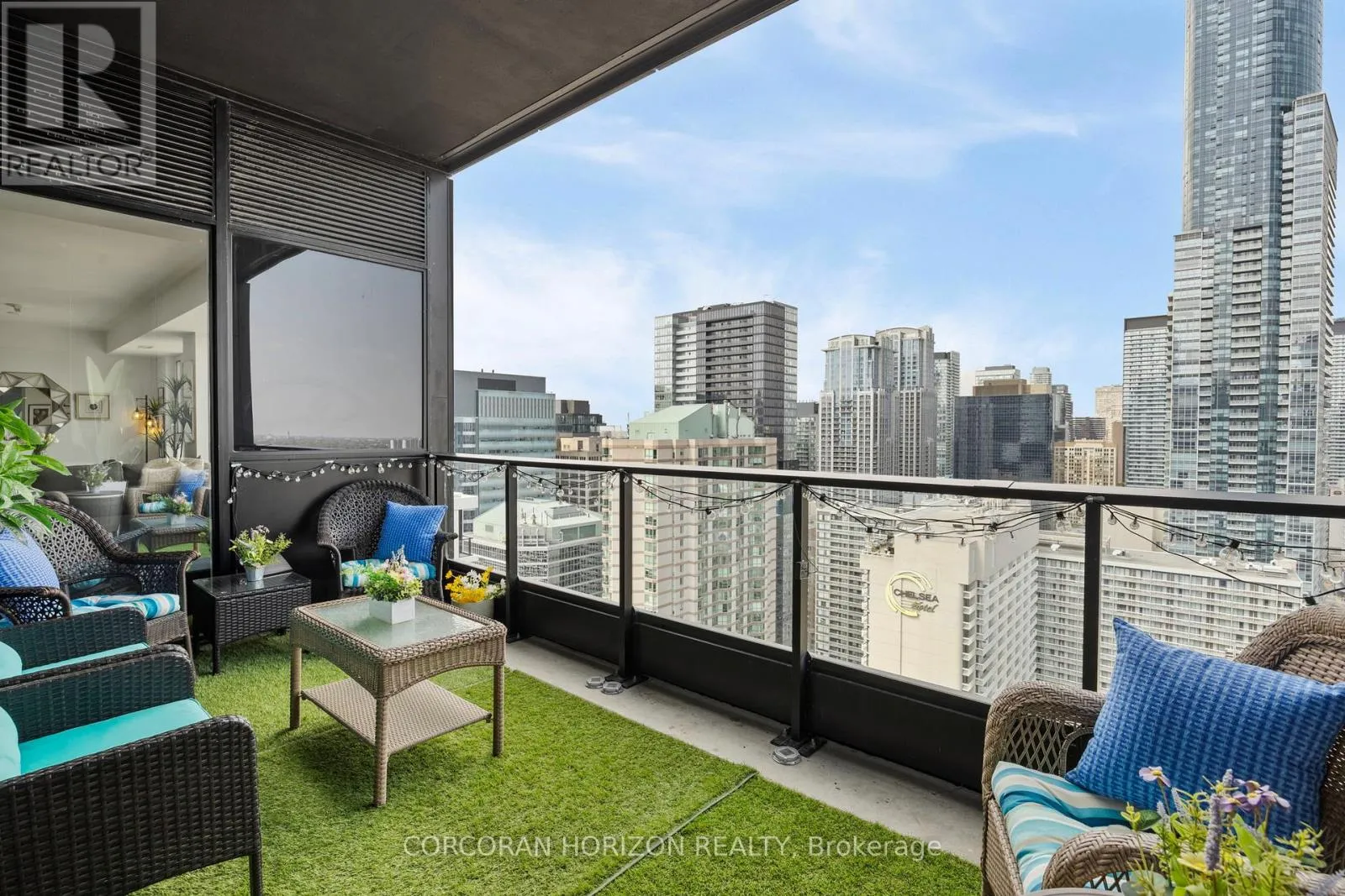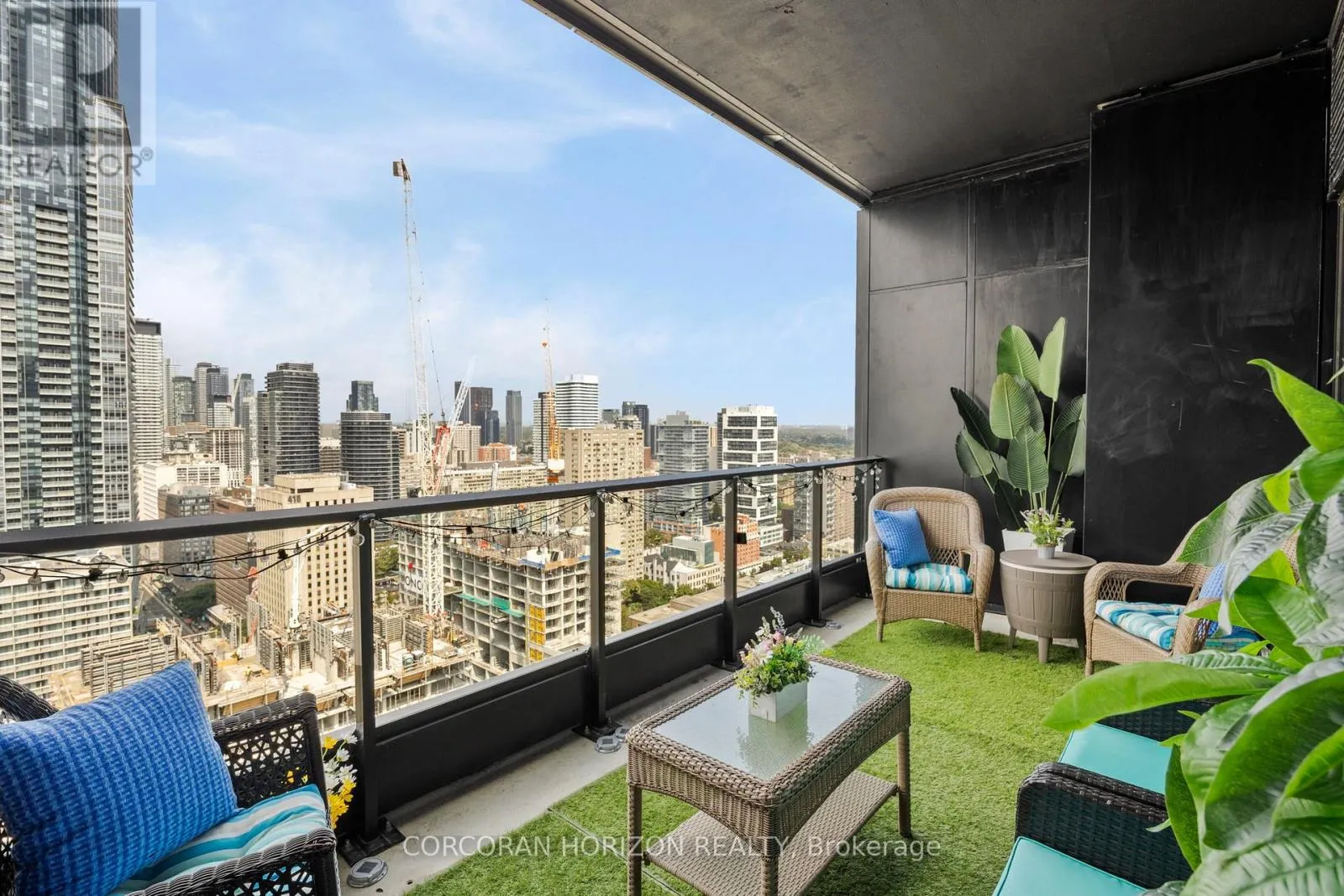 Cross Streets: Yonge and Dundas. ** Directions: Yonge/Dundas. Absolute WOW Factor!!! Incredibly stunning 1658 sq ft 3 bed + den 3 bath Penthouse with amazing city views. The height of luxury with modern designer finishes in this corner unit w/split level layout. Grand entryway w/oversized triple mirrored hall closet. Chic kitchen w/integrated appliances + center island that functions as breakfast bar w/extra storage. Spacious open concept living/dining w/huge windows + breathtaking views. Bright + full of natural light! Gorgeous primary bedroom w/large walk-in closet, 3pc ensuite + cozy seating area. 2 additional nicely sized bedrooms w/big mirrored closets. Separate den w/barn door, walk-out to terrace + can be used as a 4th bdrm or office. Perfect for a downtown loving family, young professionals or students. Large windows thru-out showcase the City Skyline from all corners, yet privacy is still respected. Large 122 sq ft terrace w/unparalleled views + gas hook-up. Excellent location!! T&T Supermarket next door. Steps away from Dundas Square, the Eaton Centre, City Hall + amazing restaurants. Walk to Toronto Metropolitan University (TMU former Ryerson), University Of Toronto, Sick Kids, Mount Sinai Hospital, And Many More. Wonderful building amenities including a fitness centre, yoga studio, rooftop terrace + bbqs, library + lounge. Parking and Locker included! (id:27476)