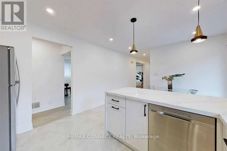 Victoria Park Ave & Finch Ave E Step into this bright, thoughtfully updated home where modern finishes and everyday comfort come together seamlessly. Completely carpet-free and enhanced with pot lights throughout, the space offers a clean, contemporary feel filled with natural light. The kitchen is both stylish and highly functional, featuring stainless steel appliances, a sleek quartz countertop, and ample cabinetry for storage. The spacious eat-in area provides plenty of room for family meals with a convenient walk-out to the deck. Perfect for enjoying outdoor dining or relaxing in warmer months. The home offers three generously sized bedrooms, each with great natural light and comfortable layouts. The modern bathroom boasts a double vanity adding both style and practicality. Ensuite laundry is thoughtfully included for added convenience, along with direct access to a private backyard space. Conveniently located in this sought-after, North York neighbourhood, this home is just minutes from Seneca College, Fairview Mall, local schools, transit, shops, parks, restaurants, and Highways 401, 404, and 407, making it an ideal option for both families and professionals. *Pictures In Listing Taken Prior To Current Tenants* (id:27476)