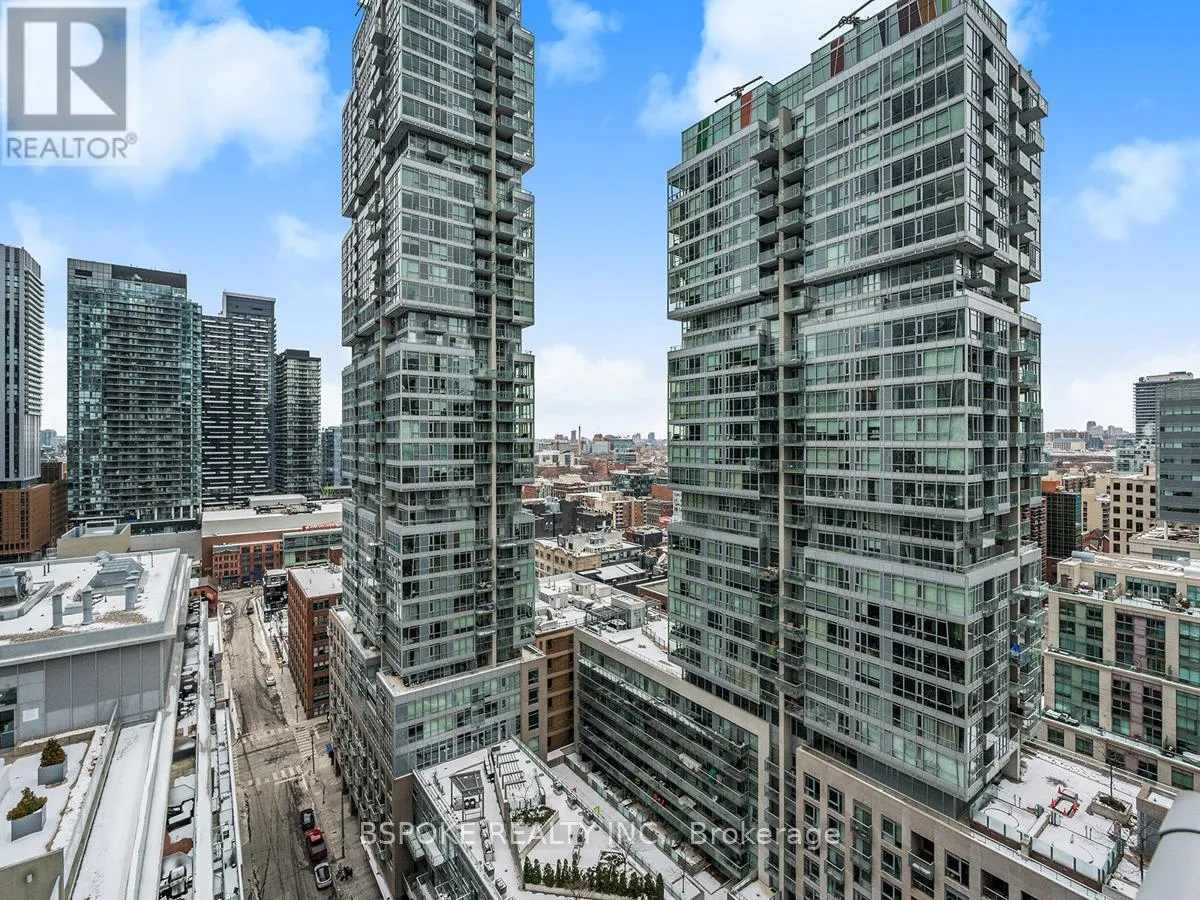 Cross Streets: University & Queen St. W. ** Directions: GPS. Spacious corner 2-bedroom, 2-bathroom suite in the heart of Toronto's Entertainment District, featuring a split-bedroom floor plan ideal for roommates or a work-from-home setup. Enjoy an unbeatable location just steps to the Rogers Centre, CN Tower, TIFF Bell Lightbox, and some of the city's best dining and nightlife. Floor-to-ceiling windows fill the space with natural light and offer sweeping skyline views. The open-concept layout features a modern kitchen, ideal for both everyday living and entertaining, along with a private balcony to take it all in. The primary bedroom offers a comfortable retreat, while the second bedroom provides flexibility for guests or a home office. Residents enjoy exceptional amenities including concierge, indoor pool, fitness centre, sauna, media and party rooms, guest suites, plus a rooftop terrace with plunge pool and BBQs. (id:27476)