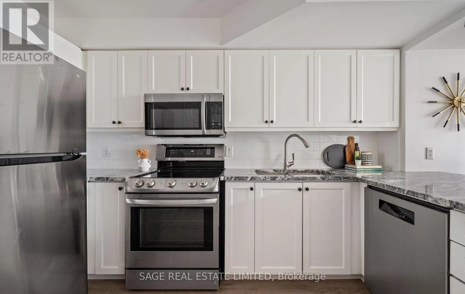 Bloor St W and Islington Ave Two Storeys. One Smart Move. Live Differently at 17 Michael Power Place - Suite 707. This is a rare opportunity to lease a never-before-offered, rent-controlled two-storey residence in one of the most desirable boutique 9-storey buildings in the community - intimate in scale yet exceptionally well-managed and meticulously maintained, with utilities INCLUDED in the rent. Offering 880sqft, this fully upgraded 2-bed, 1.5-bath suite features a thoughtfully designed layout with a distinct townhouse feel. The main level showcases open-concept living with a peninsula kitchen, an abundance of kitchen storage, upgraded appliances, and a brand-new dishwasher. A spacious in-suite pantry/storage room, double entry closet and well-placed powder room add convenience and function. The upper level is designed for privacy, with a split-bedroom layout, brand-new high-quality flooring and excellent closet space throughout. In-suite laundry and a generous linen closet are also located on this level. With west-facing exposure, the suite enjoys private park views and a double-door Juliette balcony that fills the home with natural light and fresh air. Located in a quiet building with an elegant lobby and welcoming atmosphere, this is a standout offering in a prime Etobicoke location. One parking space and one locker are included. Enjoy excellent accessibility with a Walk Score of 91 and Transit Score of 89, just minutes to Islington and Kipling stations with TTC, GO, and MiWay access, and close to Michael Power Park, grocery stores, cafes, and restaurants - making commuting, errands, and daily life effortless. Floor Plan and Interactive 3D Tour Available. (id:27476)