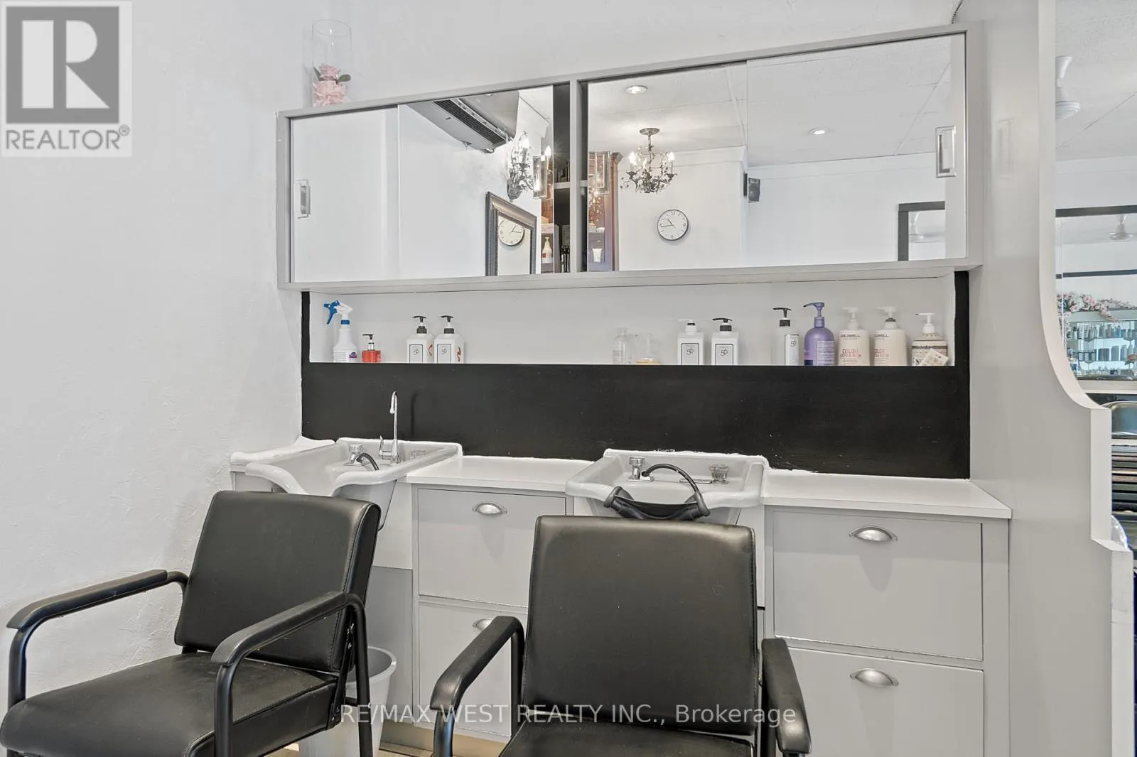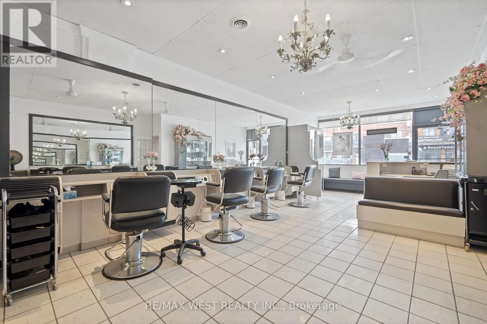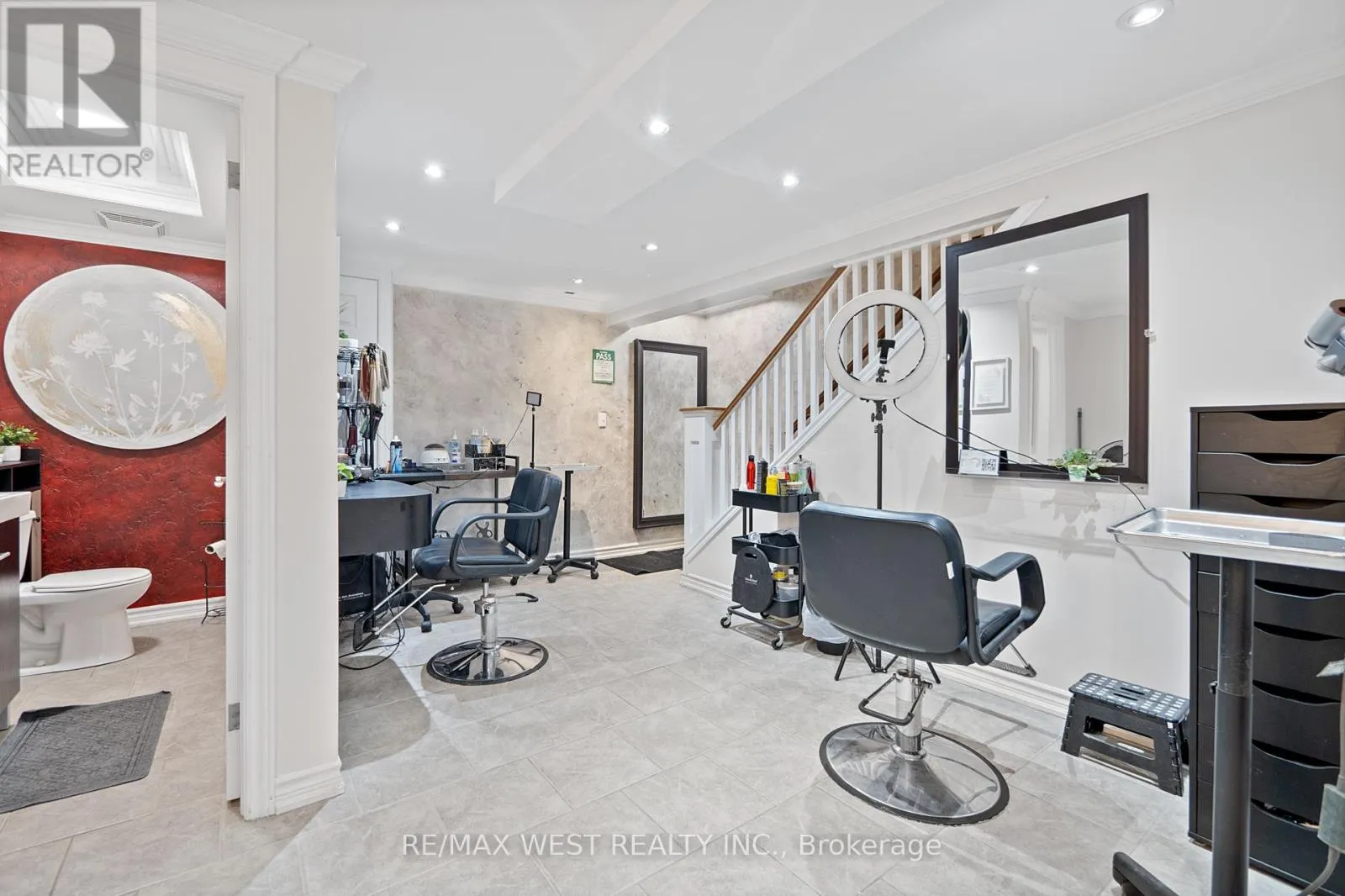Lawrence West & Allen Rd A fantastic opportunity to take over an existing Hair Salon with over 20 years in business, a large loyal client base, and a fully furnished and equipped facility including a fully renovated basement with additional rooms that generate monthly cashflow. The main floor of the salon includes: 8 Hairdressing stations, 3 hair washing sinks, 1 bathroom, 1 private room with a sink, ample storage space and cabinetry as well as a large reception and waiting area. The basement level includes: 2 Hairdressing stations, 1 Hair washing sink, 1 private room, 1 bathroom, laundry room and a kitchen. The salon generates cashflow by renting out all the rooms , and some chairs, and the owner is willing to remain after the sale on a chair rental basis. All inventory, products, furniture and supplies are included in the sale. The rent is only $3,200 + HST and hydro. Floor plan is attached in the listing. (id:27476)