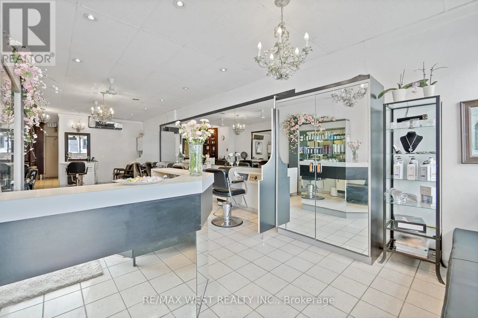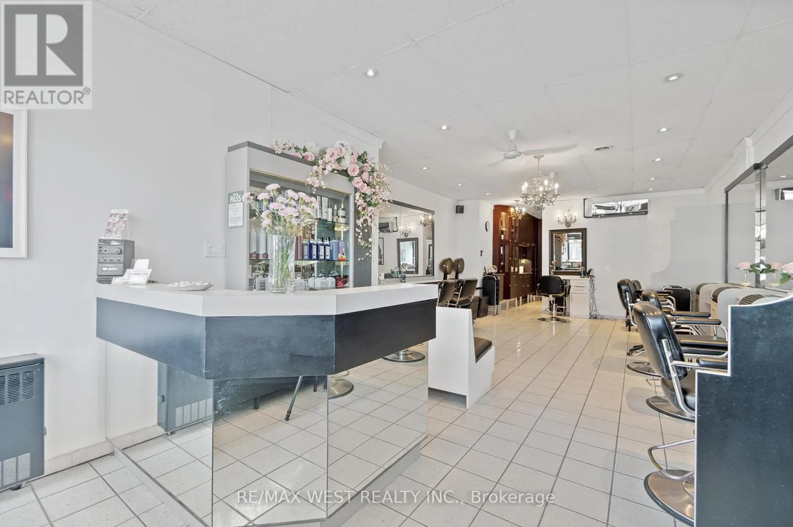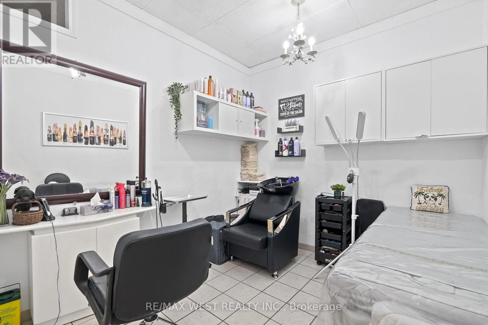 Lawrence West & Allen Rd A fantastic opportunity to take over an existing Hair Salon with over 20 years in business, a large loyal client base, and a fully furnished and equipped facility including a fully renovated basement with additional rooms that generate monthly cashflow. The main floor of the salon includes: 8 Hairdressing stations, 3 hair washing sinks, 1 bathroom, 1 private room with a sink, ample storage space and cabinetry as well as a large reception and waiting area. The basement level includes: 2 Hairdressing stations, 1 Hair washing sink, 1 private room, 1 bathroom, laundry room and a kitchen. The salon generates cashflow by renting out all the rooms , and some chairs, and the owner is willing to remain after the sale on a chair rental basis. All inventory, products, furniture and supplies are included in the sale. The rent is only $3,200 + HST and hydro. Floor plan is attached in the listing. (id:27476)