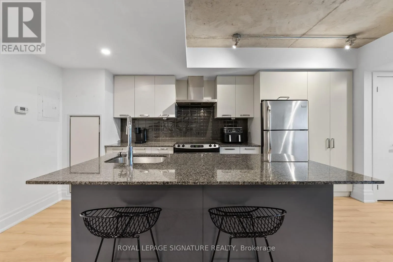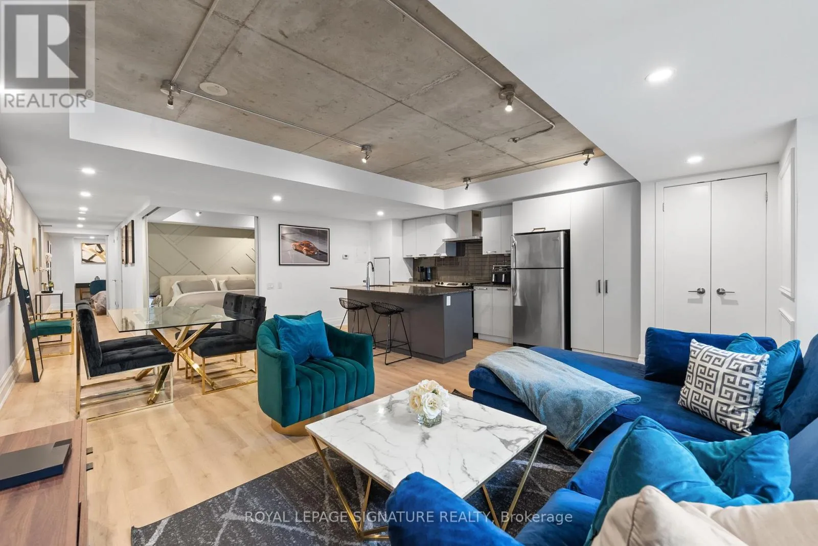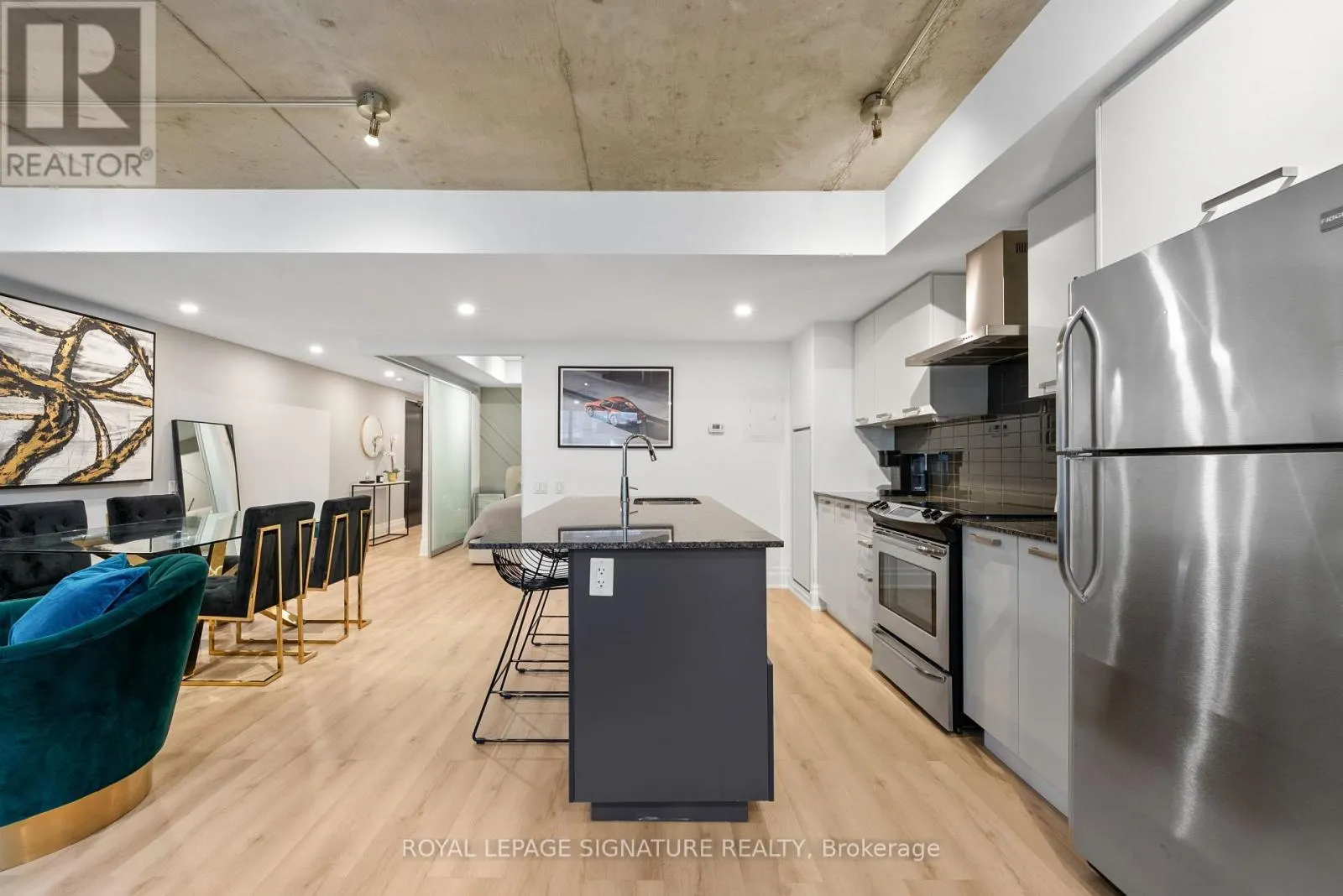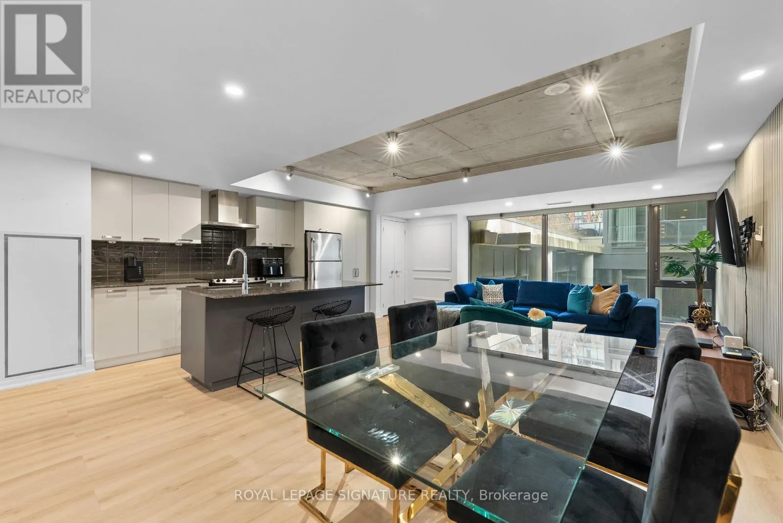 Bathurst/ King St W Move in tomorrow. This stunning two-bedroom, two-bathroom loft at 95 Bathurst arrives fully furnished and styled - nothing to do but enjoy it. Soaring 9-foot exposed concrete ceilings, hardwood floors, stone countertops, and sleek modern cabinetry create a space that feels as vibrant as the Fashion District it calls home. Generous closets, two full bathrooms, and an open-concept layout make it as liveable as it is beautiful. Steps to the city's best restaurants, cafés, nightlife, and the TTC. Fully furnished. Move-in ready. (id:27476)