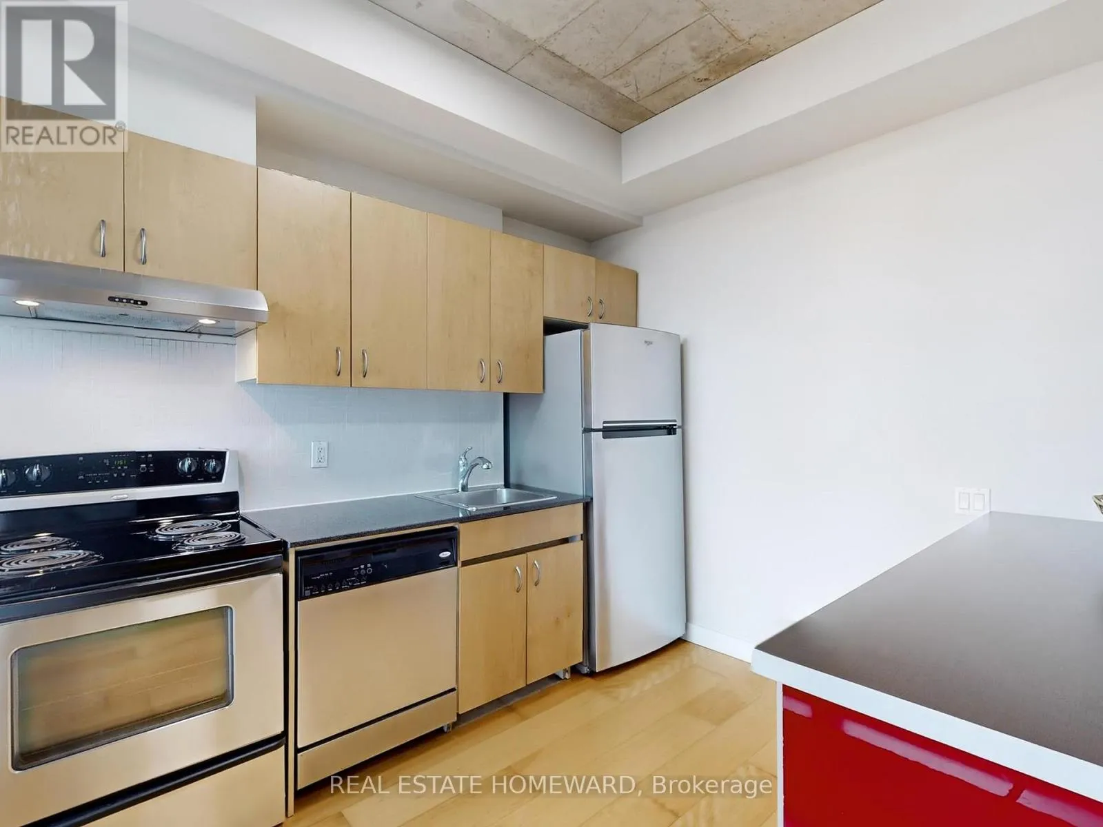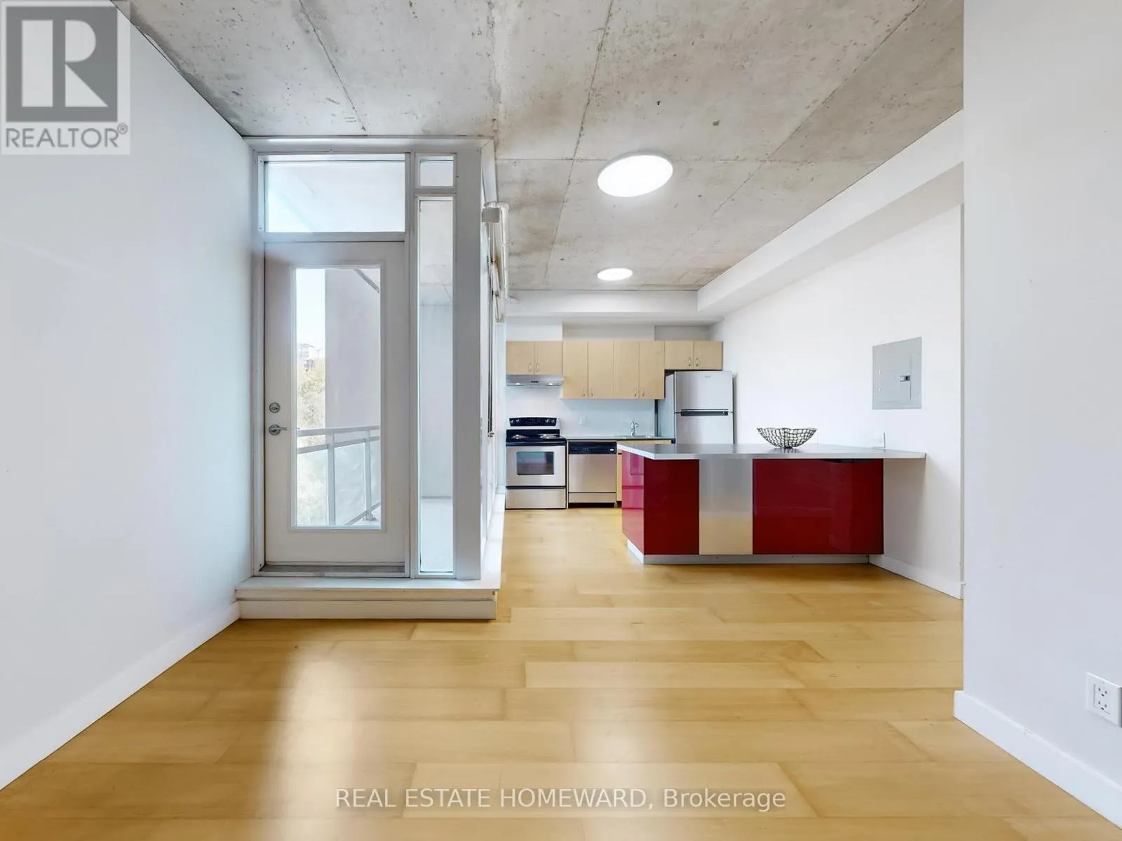 Bathurst & King Ultimate Loft Living at King & Bathurst! This stylish 1-bed boutique loft offers the perfect blend of character and convenience.The Space: 9-ft exposed concrete ceilings, laminate flooring throughout, and floor-to-ceiling windows leading to a private balcony.The Kitchen: Large island/breakfast bar, full-sized Stainless Steel appliances, and updated LED lighting-perfect for entertaining.Generous bedroom with a walk-in closet.The Location (100 Walk Score): Directly across from Milky's, Kettleman's, and Stackt Market. Steps to Gusto 101, Ruby Soho, Farm Boy, and the massive new "The Well" complex.The Building: Well-managed with a rooftop BBQ terrace, party/meeting room, and free visitor parking. Experience the pulse of the city in Toronto's most vibrant neighborhood. Move in and live your best life! (id:27476)