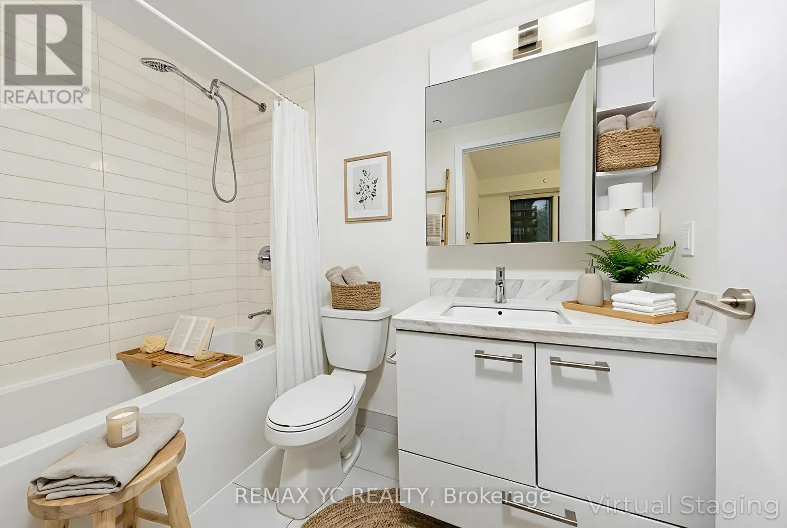 Yonge St/Eglinton Ave Don't Look further! Situated in the heart of Yonge/Eglinton, this unit offers a highly desirable one-bedroom plus den residence featuring the largest layout of its kind in the building with approximately 658 sqft of functional living space and the valuable addition of one parking spot & Private Locker Unit. The unit has been recently repainted and professionally refreshed, ready for immediate occupancy. Enjoy open north-facing views through expansive floor-to-ceiling windows that bring in generous natural light, complemented by smooth ceilings exceeding nine feet in height. The bedroom includes a spacious walk-in closet, while the enclosed den provides a flexible space ideal for working from home. The interior is finished with sleek laminate flooring, a contemporary kitchen with integrated appliances, custom cabinetry, and a durable quartz countertop. Residents benefit from a full range of upscale building amenities, including a spa facility, valet parking service, and a well-managed, well-maintained environment. Conveniently located steps from TTC service available around the clock, the Crosstown LRT, library, dining, and everyday essentials. A great opportunity to own a unit with parking as an end-user or generate additional rental income in one of Toronto's most dynamic neighbourhoods. (id:27476)