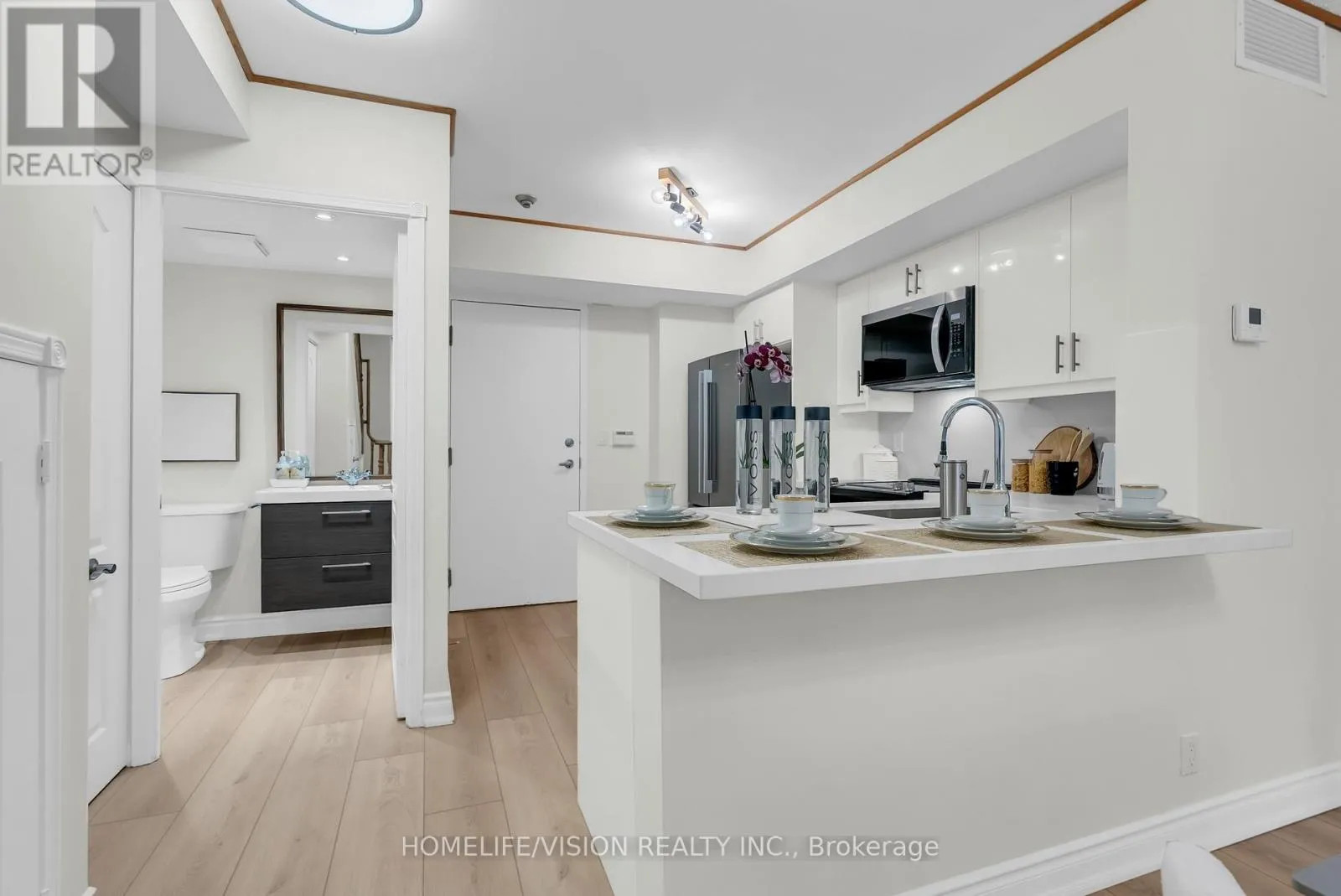 Yonge/Finch Outstanding townhouse in a quiet gated community (1492 sqft), SOUTH exposure with park view, renovated, walking distance to Subway, family friendly complex, featuring private balcony with gas BBQ hookup. Newly renovated flooring (12mm Vinyl throughout first floor and entrance stairs) , soft-touch custom cabinets (brand new), Quartz backsplash and countertops, deep kitchen sink, faucet (MOEN), brand new GE appliances (French-door fridge, range, microwave, dishwasher). Stacked GE washer & dryer (2023) on second floor, Newer American Standard toilets, modern powder room vanity, pantry with new shelving, under-stair storage. Walking distance to top-ranked schools: Earl Haig Secondary School, Cummer Valley Middle School, and McKee Public School, Mitchell Field Community Centre, Metro Grocery Store, shops, restaurants and parks. Easy access to TTC subway and major highways. 24-hr security. Elevator to underground parking. Locker, bike storage, car wash, EV charging station, visitor parking (P1), outdoor visitor parking near Block 1200. Maintenance includes landscaping, snow removal, parking & locker maintenance, and insurance. Hydro & gas separately metered. Each floor is 497 sqft as per MPAC (497 x 3). (id:27476)