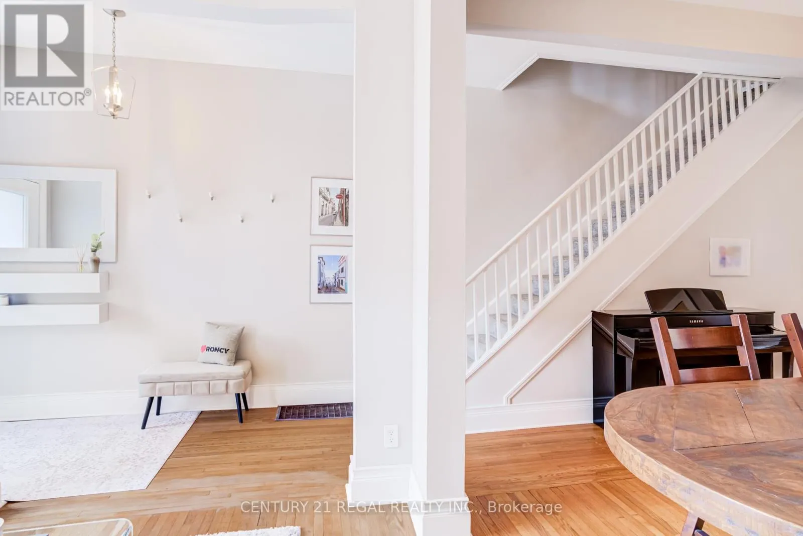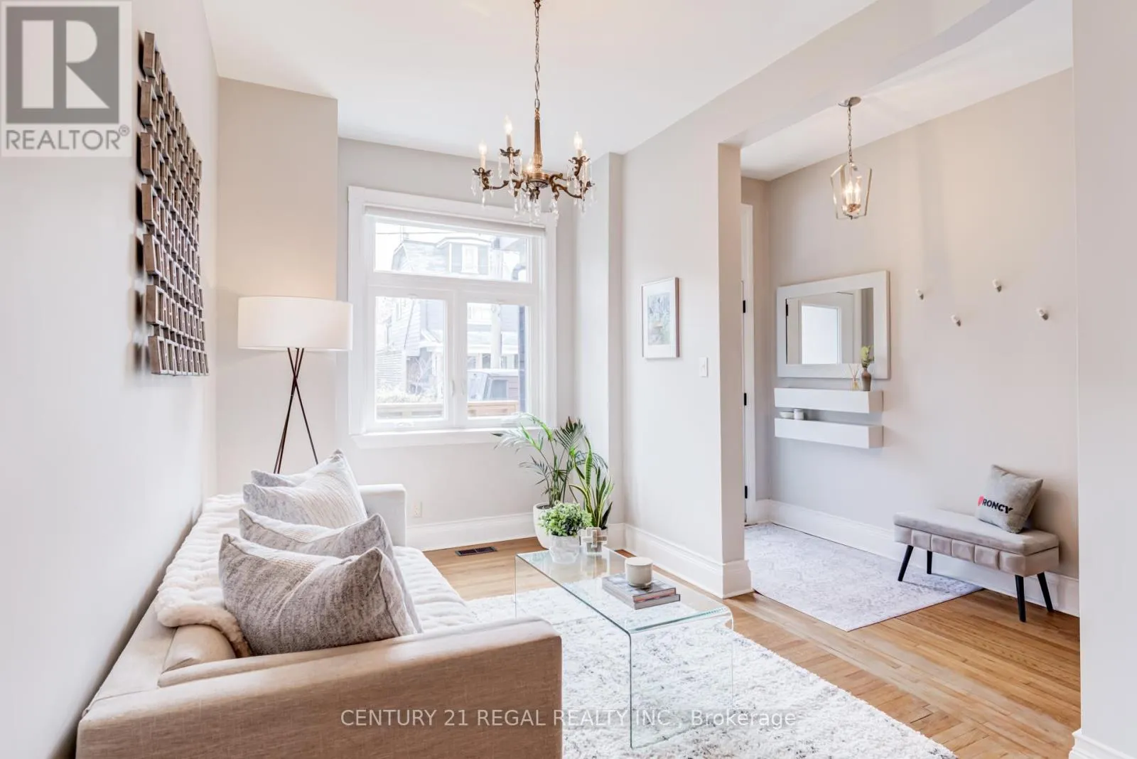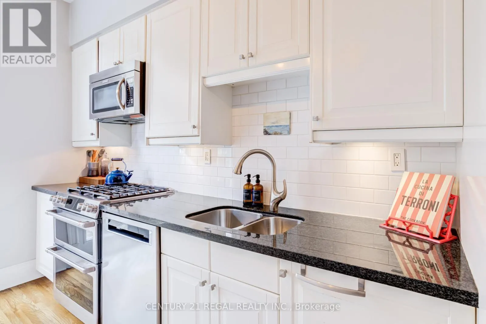 Dundas/Roncesvalles Discover the perfect blend of historic charm and modern luxury at 36 Golden Ave, a thoughtfully reimagined 2-storey, 3-bedroom Victorian hidden in a cul-de-sac within one of Toronto's most beloved neighborhoods. This stunning home offers an ideal entry point for young families or professionals seeking the vibrant, community-focused lifestyle of Roncesvalles. You're steps away from incredible, neighborhood cafes, restaurants, farmers markets, parks, and easy transit access. This classic, red brick beauty features an inviting yet chic exterior with new concrete slab, updated front door and new front windows. Ideal open concept living with tons of natural light, the main floor boasts high ceilings and a spacious layout. The renovated, Chef's kitchen features a fabulous, large, kitchen island with ample storage, timeless granite countertops, updated cabinetry with under-mount lighting, and premium appliances - including a new Cafe gas range with convection, double oven, 6 burners, and integrated griddle. Walk out through classic French doors to a low-maintenance, private backyard with gas line, perfect for fun bbqs all year long, or having a cup of coffee, enjoying the garden during warmer months in your private oasis. Includes coveted laneway access parking. The upper level boasts tranquil bedrooms. The primary bedroom has great storage with new closets and a cozy bay window banquette. The second bedroom offers added convenience with a full-size washer/dryer system. Enjoy your sleek, spa-like second-floor bathroom featuring a custom frameless glass shower, designer wall-mounted rain shower head, separate wand, Carrara-inspired tiles, and built in storage. The finished basement has brand-new flooring, a renovated 4-piece bathroom, and an upgraded underground sewer system with back flow valve/preventor (2023). This turn-key home offers everything you need to live in one of the most sought-after neighborhoods in the city. (id:27476)