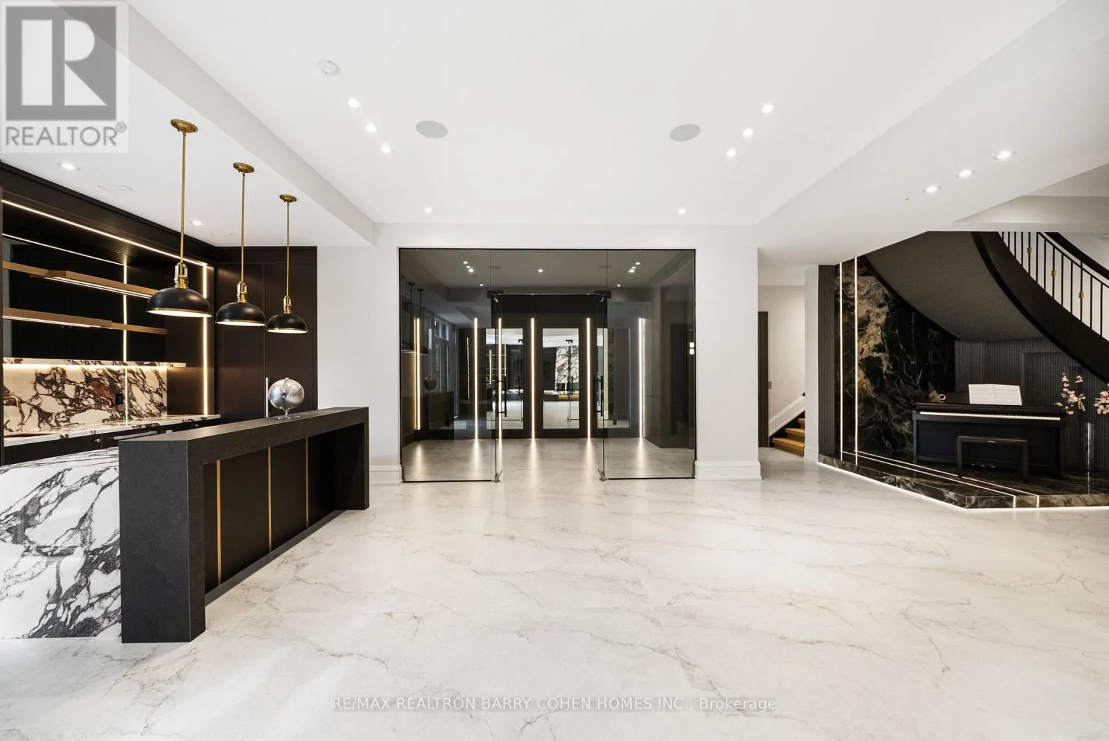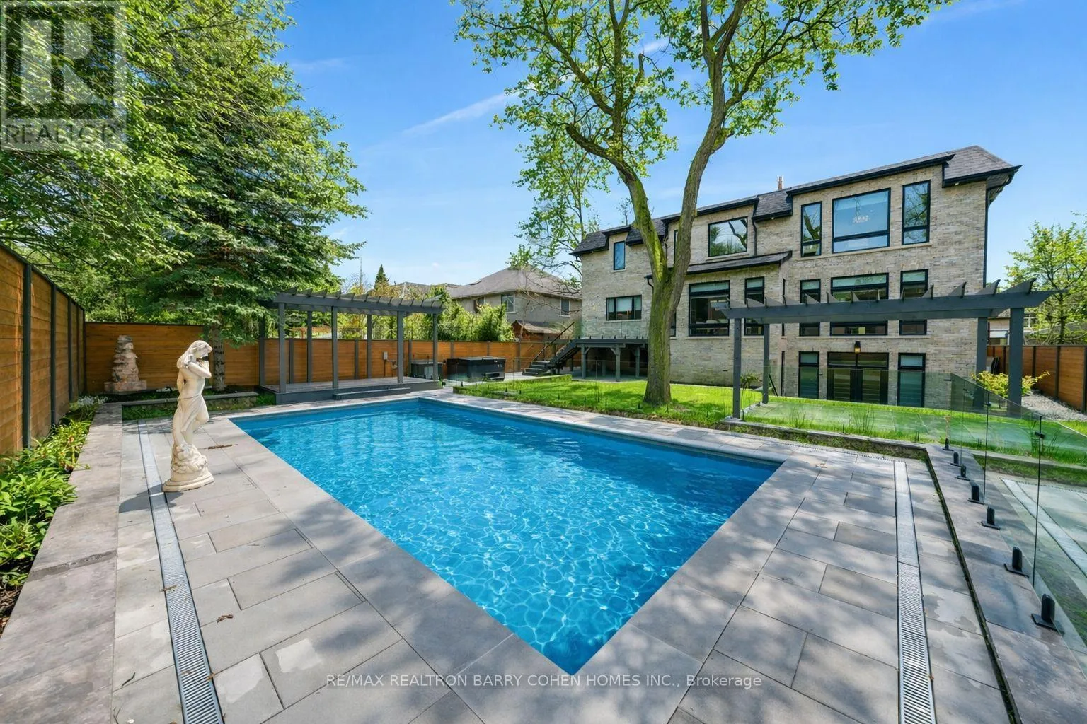 Cross Streets: Bayview and York Mills. ** Directions: Bayview & York Mills. This exceptional newly built luxury residence offers nearly 10,000 sq ft of beautifully finished living space on a prestigious south-facing 68' x 150' lot, delivering remarkable scale, craftsmanship, and architectural elegance. Featuring 5+1 oversized bedrooms, each with its own private ensuite and walk-in closet, the home is designed for ultimate comfort, privacy, and modern family living. Grand ceiling heights create an extraordinary sense of space with 10-ft ceilings on the main level, 9-ft ceilings on the second floor, and a breathtaking 14-ft grand foyer, while the 11-ft lower level provides a bright and expansive walk-up basement ideal for entertaining. The striking natural limestone façade is framed by six custom columns inspired by the U.S. Capitol, with hand-crafted capitals that create a distinguished presence rarely seen in Toronto. The home's symmetrical design and incorporation of the Golden Ratio create a sense of balance, harmony, and timeless elegance throughout. Designed for exceptional indoor-outdoor living, the spectacular backyard retreat features a heated saltwater concrete pool, pergola, outdoor BBQ area, and professionally landscaped grounds. Additional exterior highlights include a heated driveway, extensive stone walkways, and a rare 3-car garage. Inside, the home is fully equipped with a Control4 smart lighting system, in-floor heating (where applicable), and a sophisticated whole-home audio system with surround sound in the family room, lower level entertainment space, and theatre, plus wiring for backyard audio. Additional luxury amenities include four fireplaces, a jacuzzi, dry and steam sauna, and a stunning primary suite retreat. Conveniently located just minutes from York Mills Subway Station, Highway 401, and within close proximity to Toronto's top private schools, shops, and amenities. A rare offering in one of the city's most prestigious communities. (id:27476)