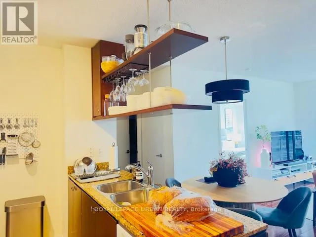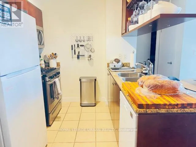 Cross Streets: Spadina Avenue/ Bremner Boulvard. ** Directions: South on Navy Wharf Court, East at stop sign. SouthEast corner. WATERFRONT LIVING - Prime Location! Step out your door and enjoy walking access to the Rogers Centre, CN Tower, the lakefront, and more. This open and spacious unit offers approximately 702 sq ft of well-designed living space, featuring stunning unobstructed west-facing lake views from your private walk-out balcony. Enjoy floor-to-ceiling windows that flood the space with natural light, along with sleek laminate flooring throughout. The extra-large den is versatile and can easily function as a second bedroom or a comfortable home office. The bedroom is generously sized and includes double closets for ample storage. The modern kitchen is equipped with granite countertops, a double stainless steel sink, stainless steel gas stove, fridge, built-in microwave, and dishwasher.Additional features include ensuite washer and dryer, one parking space, and all utilities included (gas, water, electricity, and heat). (id:27476)