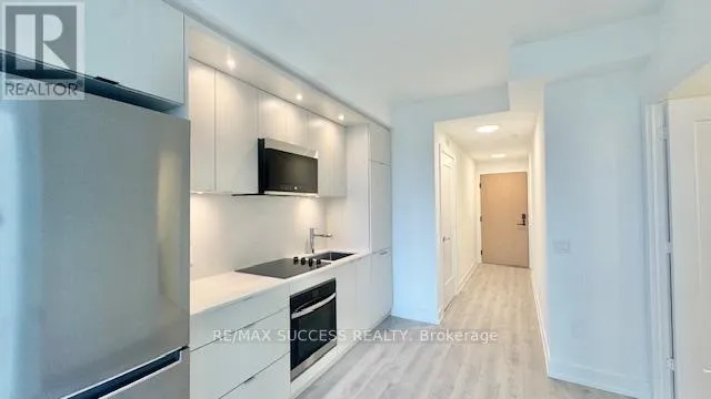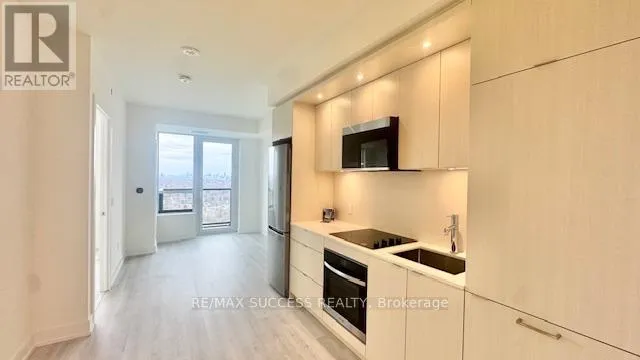 Bloor & Islington Welcome to Westerly 2 at 60 Central Park Roadway in the heart of Islington-City Centre West. This brand-new 1-bedroom suite offers around 500 sq. ft. of beautifully designed interior space, featuring a bright, spacious carpet-free layout and modern finishes throughout. The modern Open concept kitchen is equipped with built-in stainless steel appliances and sleek cabinetry. The combined living and dining area has Floor-to-ceiling windows enhance natural light, while a walk-out from the living space leads to an open balcony with a BREATHTAKING AND UNOBSTRUCTIVE EAST exposure OF OUR BEAUTIFUL DOWNTOWN TORONTO. The bedroom features a large closet and floor-to-ceiling window, complemented by a modern 4-piece bathroom finished with clean tilework and contemporary fixtures. In-suite laundry adds an added comfort and convenience. Residents enjoy access to building amenities including a fitness center, guest suites, party and meeting rooms, and 24 hr concierge service. Ideally situated steps from Islington Station, parks etc. This suite offers comfortable, well-connected urban living in a most sought-after Etobicoke community. (id:27476)