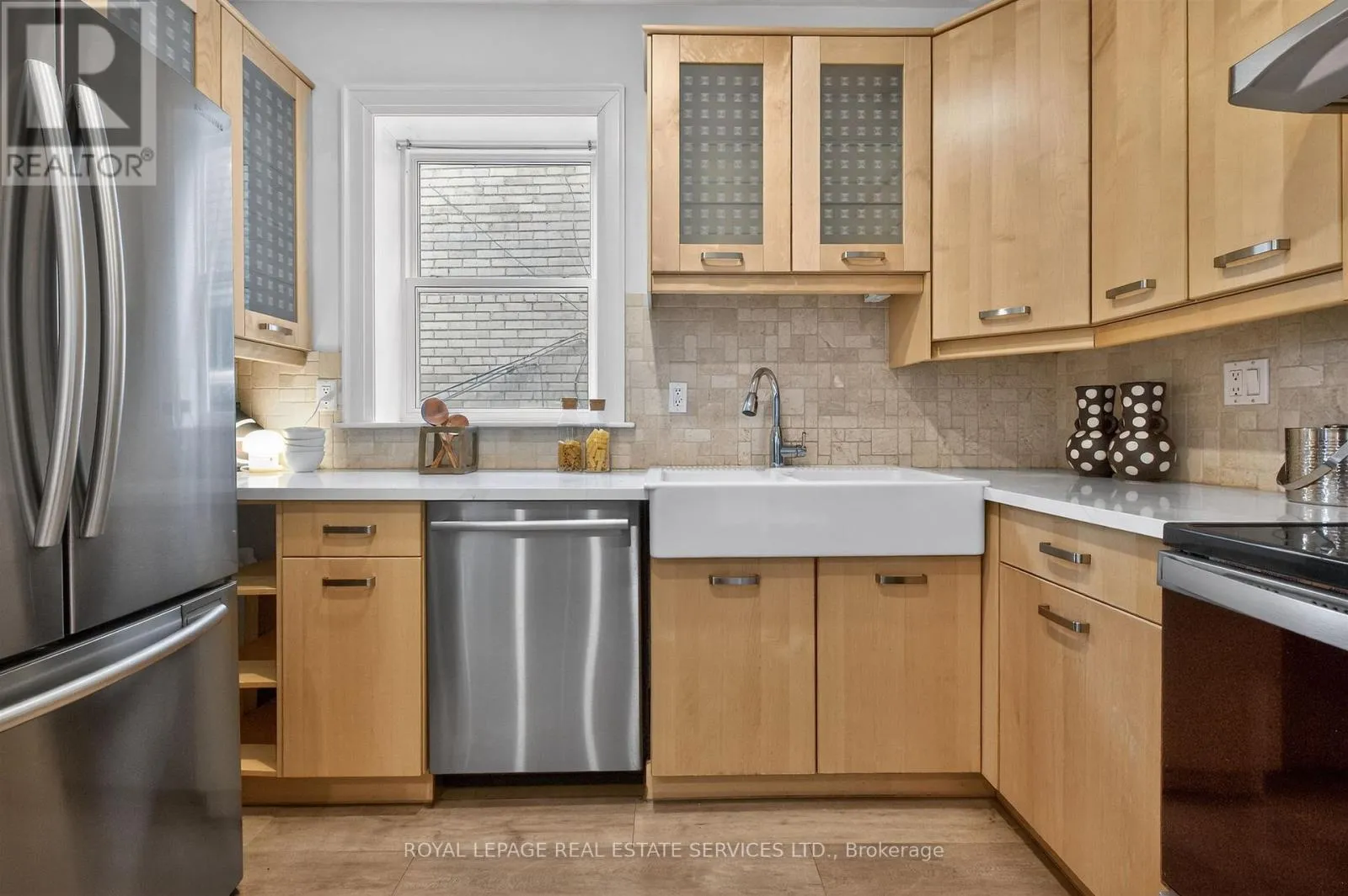 Cross Streets: Bloor St W/High Park Avenue. ** Directions: From Bloor Street West, go north on Quebec Avenue and west on Gothic Avenue. Nestled on one of the most coveted historic streets in Toronto's west end, 102 Gothic Avenue is a masterclass in blending timeless character with contemporary luxury. This stunning 2 1/2 storey residence has been meticulously renovated and restored, offering an expansive floor plan that features 5+1 bedrooms, a dedicated home office, and an open family room. From the moment you step inside, the soaring ceilings, original stained glass accents, and gleaming hardwood floors create an atmosphere of refined elegance. The open-concept main floor is a host's dream, flowing seamlessly from the spacious living areas to a convenient main floor powder room, making it the perfect backdrop for grand entertaining or intimate family gatherings. At the heart of the home lies a renovated kitchen, designed for both style and function. It boasts a sleek breakfast bar, quartz countertops, and a sophisticated tumbled marble backsplash. The upper levels continue to impress with a spa-like family bathroom and a sun-drenched office featuring a skylight and offering breathtaking views of the treetops and vibrant sunsets. Outdoors, the lifestyle is equally impressive, with two walk-outs to private decks and terraces, providing serene spaces for morning coffee or evening relaxation. The versatility of this property extends to the fully developed lower level, which functions as a complete secondary living space. Featuring its own kitchen, living room, bedroom, washroom, and a separate entrance, it serves as an ideal nanny or in-law suite. Situated on a quiet, child-friendly cul-de-sac, you are just steps away from the lush trails of High Park, the ambiance and shops of Bloor West Village and the convenience of the subway station. This is a rare opportunity to own a turnkey historic gem in one of Toronto's most vibrant and walkable neighborhoods. (id:27476)