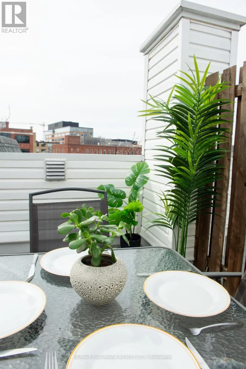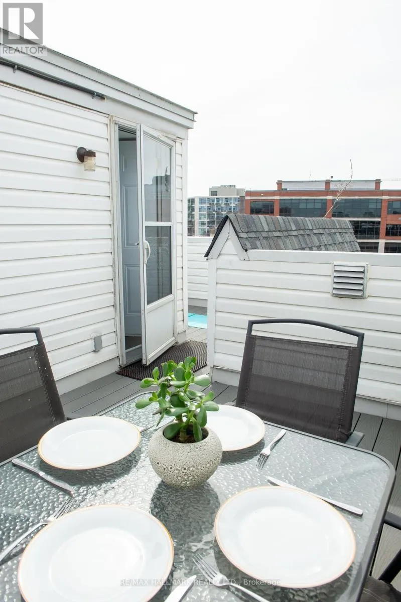 Cross Streets: King & Shaw. ** Directions: Sudbury St / King St West. Welcome to King West Townhomes on Sudbury Street - a quiet, residential enclave nestled among Toronto's most vibrant neighbourhoods, including Ossington, Liberty Village & Queen West. Tucked away in a quiet pocket, this location places you within minutes of Toronto's most vibrant culinary and social hotspots, as well as independent boutiques, galleries, and nightlife venues. Perfect for urban professionals, food enthusiasts, artists, and young families alike. The townhouse offers south-facing natural light spread across three thoughtfully designed levels. The smart layout provides separation and privacy, featuring 2 bedrooms, 1 bathroom, an open-concept kitchen and living space, and a spacious private rooftop terrace for unwinding and entertaining. Updated appliances, renovated floors, and smooth, modern ceilings complete a home that balances modern comfort with convenient living. Enjoy a sense of independence while benefiting from the peace of mind that comes with condo-managed maintenance, insurance, and security. Daily convenience is a hallmark of this location, with many grocery stores, schools, and green spaces such as Trinity Bellwoods Park all within walking distance. Quick access to TTC routes, combined with nearby GO services and the Gardiner Expressway, offers unmatched connectivity to the rest of the city. With unbeatable accessibility and a neighbourhood where there is never a shortage of something to do, this home strikes the perfect harmony between dynamic city life and peaceful, practical living. Join us for a viewing, this gorgeous unit could be yours! (id:27476)