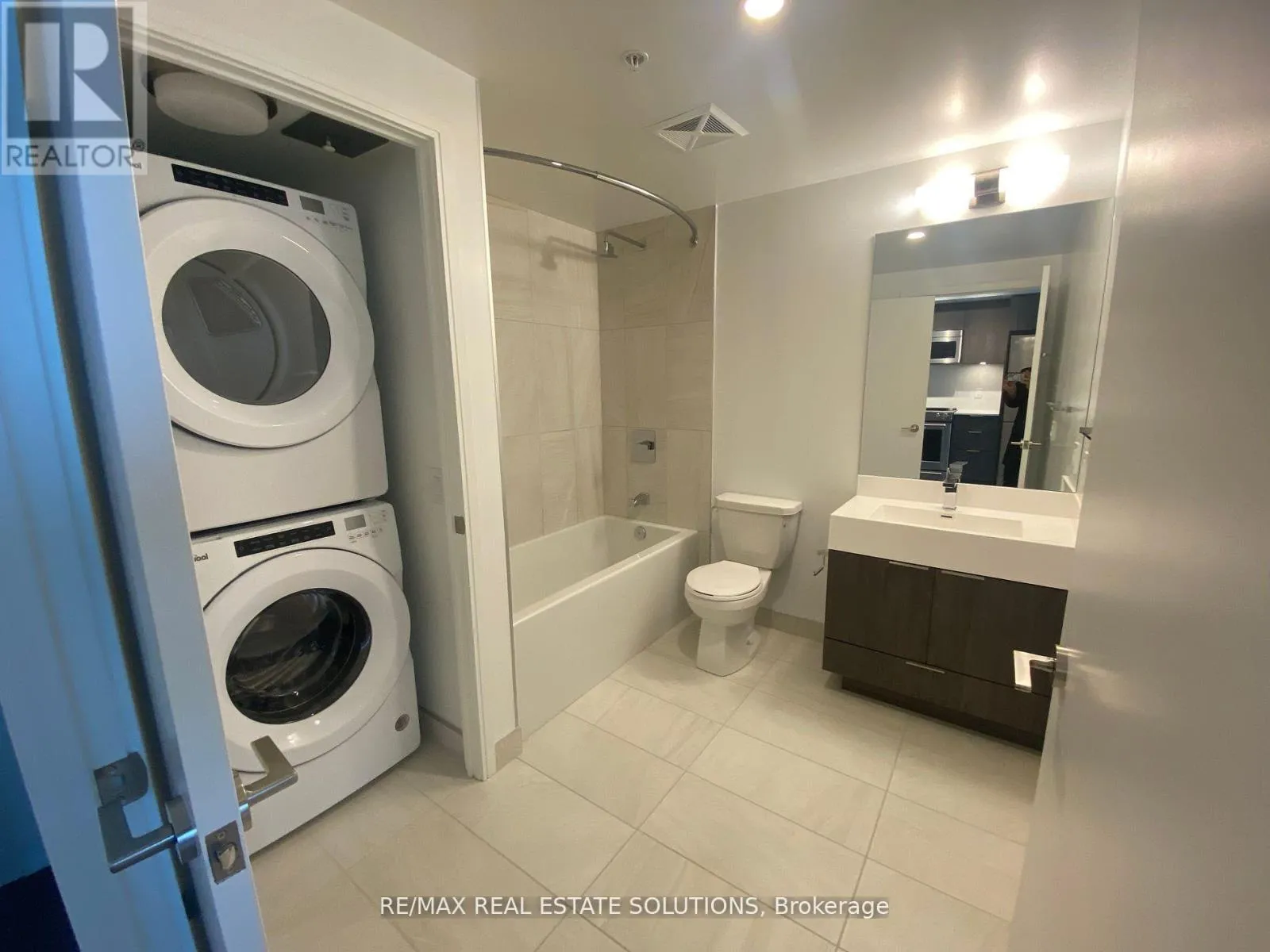Cross Streets: Dundas St W & Kipling Ave. ** Directions: South of Dundas St W, and West of Thomas Riley Rd. A great opportunity for homeownership or an investment at the sought after Kip 2 District. Jaw dropping sunset views await from the full length, west facing balcony of this stylish 1 bed, 1 bath suite, complete with a private locker. This meticulously maintained 524 sqft residence features an efficient open concept layout designed to maximize every inch, highlighted by floor to ceiling windows that flood the space with natural light and smooth laminate flooring throughout. The chic, modern kitchen is equipped with premium stainless steel appliances, while the spacious bathroom offers a sophisticated retreat with trendy 12x24 inch tiles and a deep soaker tub. Beyond the suite, enjoy an elevated lifestyle with top tier building amenities including a 24/7 concierge, a fully equipped fitness centre, a vibrant party room, and an outdoor patio with BBQs for summer entertaining. Perfectly positioned for the ultimate commuter experience, you are just steps from the Kipling Transportation Hub and GO Station, providing seamless access to the entire GTA and the downtown core. This vibrant Etobicoke community puts you minutes away from local parks, trendy cafes, and diverse shopping, offering the perfect blend of modern comfort and long term urban value. Don't miss your chance to own in one of the city's most connected neighborhoods. (id:27476)