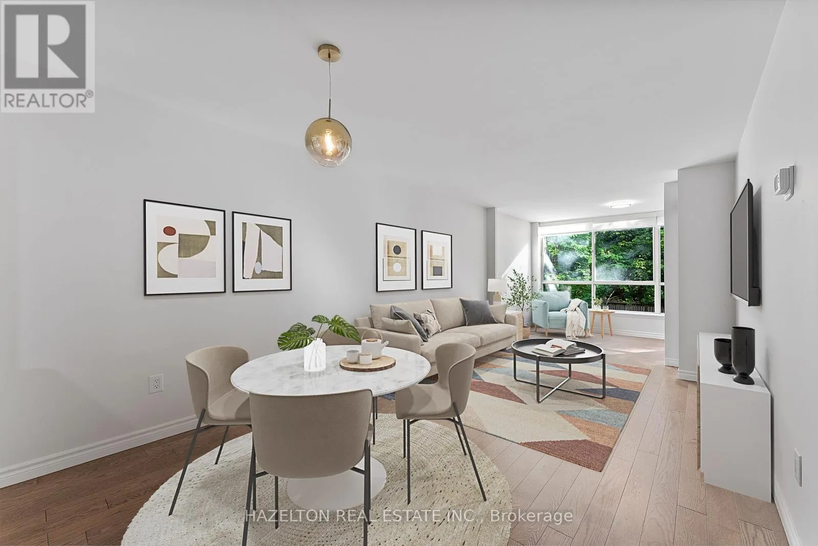 Cross Streets: Davenport Rd and Avenue Rd. ** Directions: Google. Welcome to 225 Davenport, a boutique residence where this spacious 1+ den plus sunroom offers rare comfort and charm right at the edge of Yorkville. Bathed in morning light from its east-facing windows, the suite enjoys peaceful garden and treetop views, far removed from the hum of Avenue Road and Davenport. Inside, smooth ceilings (no popcorn), an upgraded kitchen with a brand new electric stove, and fresh window coverings create a move-in-ready home that feels both refined and inviting. The generous living space makes it easy to entertain or simply unwind, complemented by a spacious bedroom that fits a full furniture set and features a walk-in closet and is finished with timeless wood shutters that add a touch of charm and character. A separate den off the entry provides flexible space for a home office, while the sunroom expands the living area with a serene garden outlook. The large bathroom with a Jacuzzi-style tub and a small laundry room with ample storage add everyday convenience. The building itself is known for its friendly staff, amenities include a phenomenal rooftop terrace with skyline views and BBQs, a well-equipped gym and stylish party room. Just steps to Yorkville's world-class shops, dining, and cultural scene, this home stands out as a rare opportunity, offering unbeatable square footage at almost 900 sqf, quality and value in a neighbourhood where space comes at a premium. All utilities included in the maintenance fees. (id:27476)