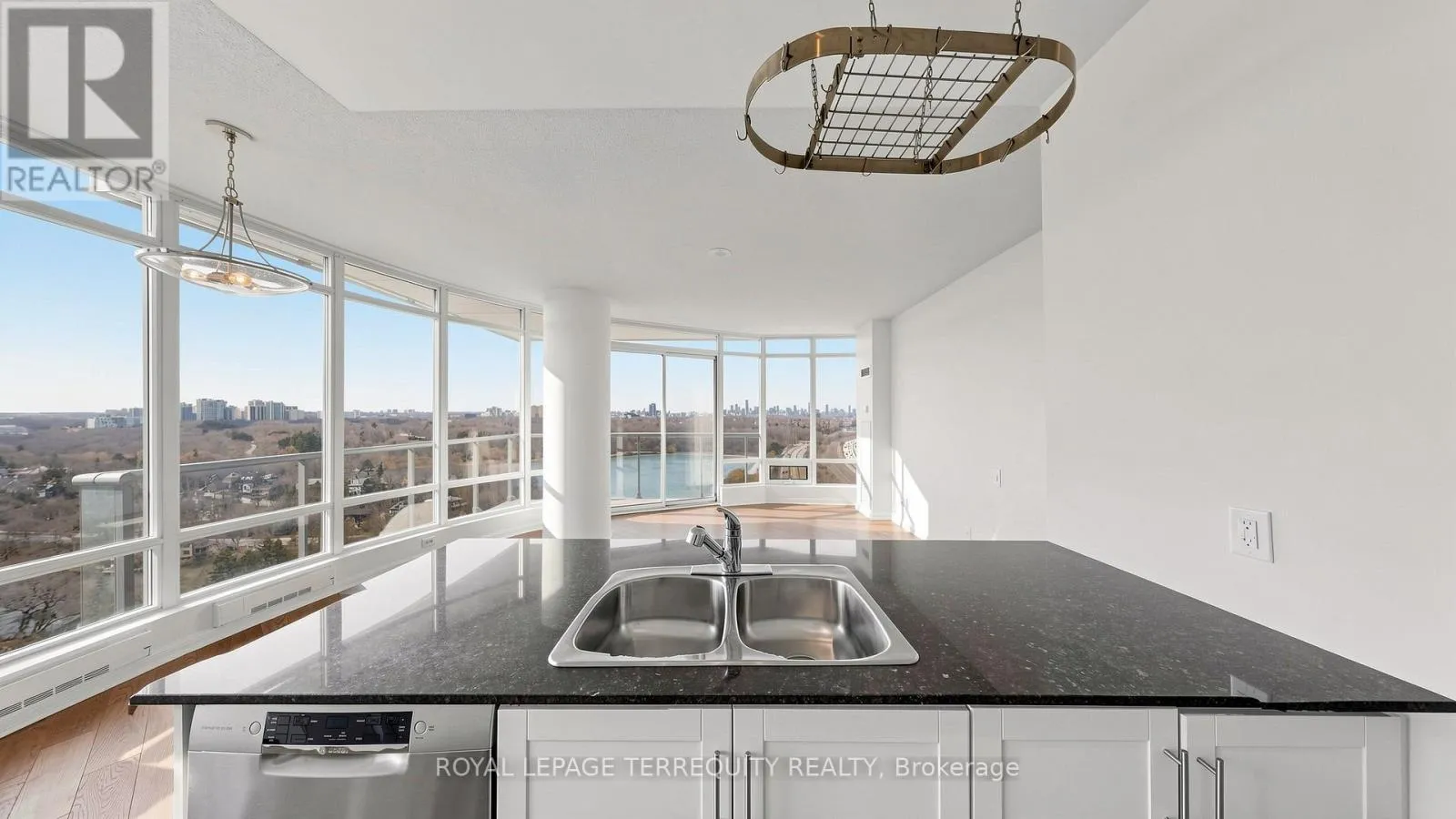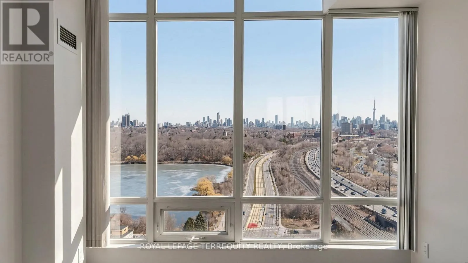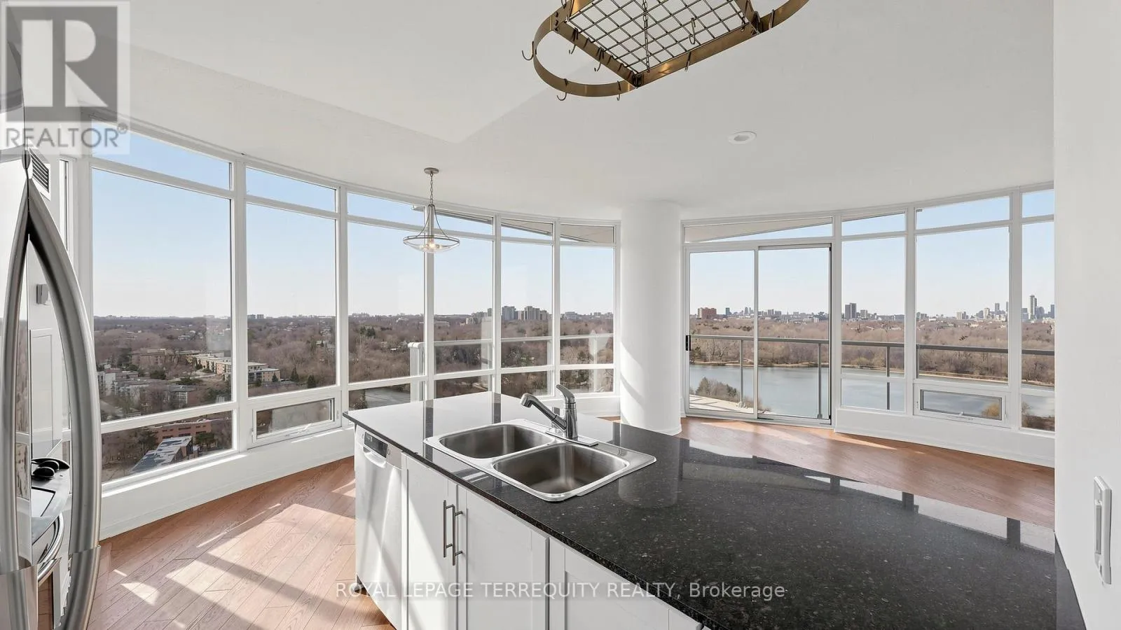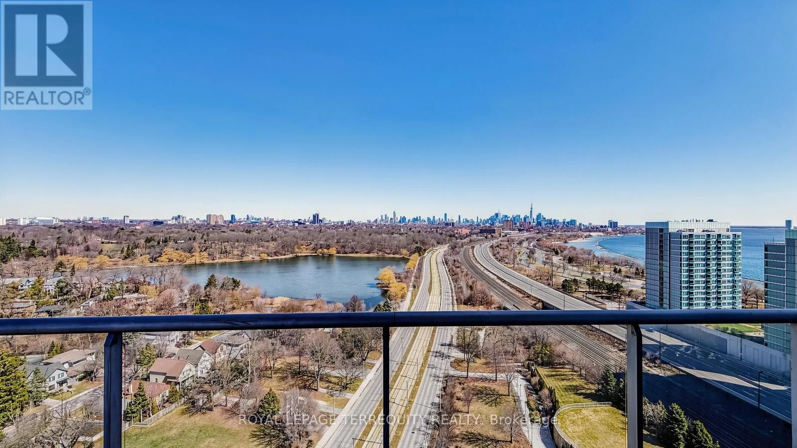 Cross Streets: Windermere & Queensway. ** Directions: S of Windermere. Welcome to Windermere by the Lake - where the pace slows down, but the lifestyle doesn't. Set in one of Toronto's most coveted waterfront pockets, this 2-bed + den, 2-bath suite strikes the right balance between city edge and lakeside calm. The layout just works. Open, functional, and wrapped in a 180-degree wall of windows that floods the space with natural light and frames unobstructed views of heavily forested High Park, Grenadier Pond and sparkling Toronto skyline- this suite boasts a true feast for the eyes. Morning coffee, evening wine - your balcony becomes your front-row seat to surreal views. The kitchen is clean and modern, with granite counters, a spacious breakfast bar, stainless steel appliances, and enough storage to keep everything in its place. The primary bedroom feels like a reset - floor-to-ceiling windows, a generous closet, and a 4-pc ensuite. The second bedroom is bright and well-sized, and the den is the flex space you actually need - office, reading nook, or both. This exceptional unit includes a parking spot, a storage locker and the all-inclusive maintenance fees. The building delivers 24-hour concierge, indoor pool, sauna, golf simulator, billiards, & much more! Step outside and you're in it - lakefront trails, High Park, Grenadier Pond, Bloor West Village, and the 501 streetcar right at your doorstep. Don't miss out on great value! (id:27476)
