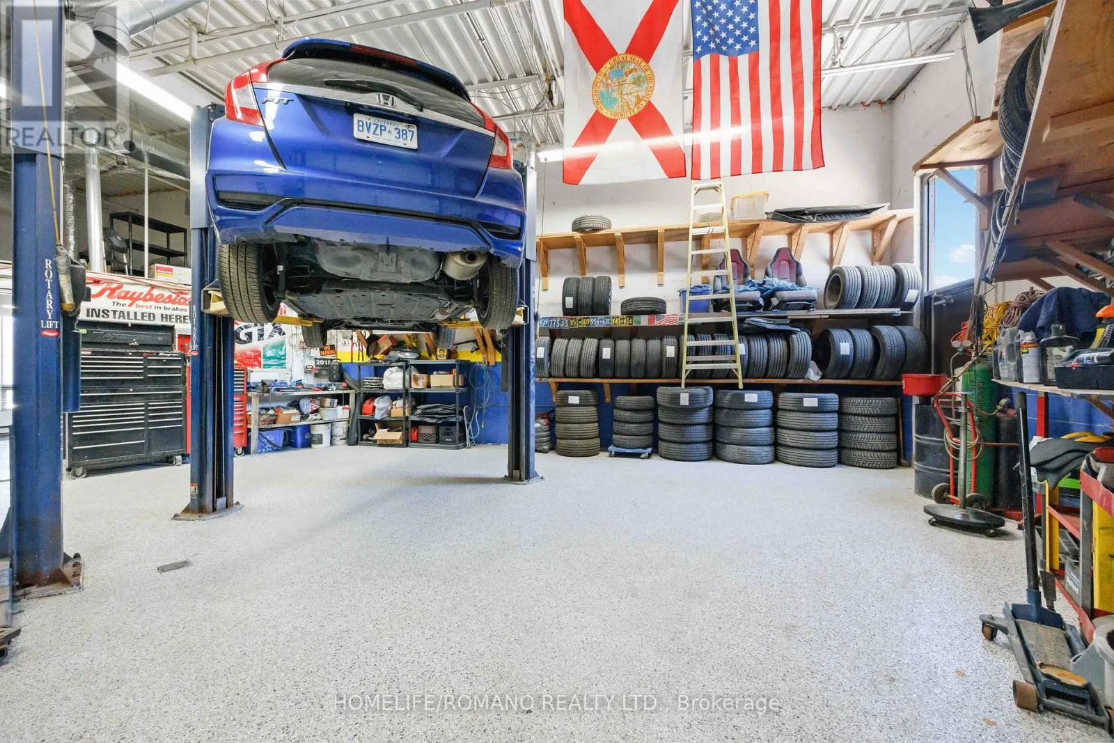 Cross Streets: Keele Street / Finch Avenue West. ** Directions: Located South of Finch Ave W and East of Keele Street. Turn-key auto repair/mechanic shop for sale. A rare opportunity to acquire a fully equipped industrial condominium unit in Toronto's high-demand Keele & Finch employment district. Approximately 1,300 square feet of clean, well-maintained industrial space, featuring a private office, customer waiting area, and 2-piece bathroom. The functional, wide pie-shaped layout maximizes usable floor area and efficiency. The shop is fully equipped with everything needed to operate, including 2 automotive hoists, compressor, workbenches, shelving, and a full complement of mechanic shop equipment. Additional features include grade-level drive-in access, newer HVAC (2018), an owned hot water tank, and a bonus mezzanine ideal for additional storage. The unit is accompanied by four (4) designated parking spaces (2 front, 2 rear).Excellent access to Highway 400, Highway 401, and Allen Road, within a large and accessible labour pool. Detailed Chattel & Improvement List Available Upon Request. **Business + Unit For Sale - W12951052 ** (id:27476)