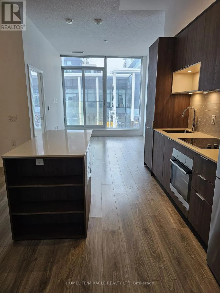 Dundas Street E & Sumach Street Step into this beautifully designed 1 Bed + Den Suite at Wyatt Condos in one of Toronto's most dynamic and rapidly evolving neighbourhoods. This bright and modern condo perfectly blends style and functionality. The open-concept layout is ideal for both relaxing and entertaining, featuring wide-plank flooring, soaring windows that flood the space with natural light, and a generous living and dining area that flows effortlessly into a sleek, modern kitchen. Outfitted with quartz countertops, high-end appliances, and a centre island with a breakfast bar, it's a dream setup for home chefs and hosts alike. The versatile den makes a perfect home office or guest nook, adding flexibility to your lifestyle. Live steps from green spaces, local coffee shops, community centres, and a vibrant arts scene. With TTC streetcars, buses, and subway access close by plus easy connections to the DVP and Gardiner Expressway getting around the city is a breeze. Building Amenities Include A Fully Equipped Fitness Centre, Rooftop Terrace, Party Room, Lounge, Kids' Play Area, And 24-Hour Concierge. Discover the ultimate blend of comfort, convenience, and cosmopolitan lifestyle. (id:27476)