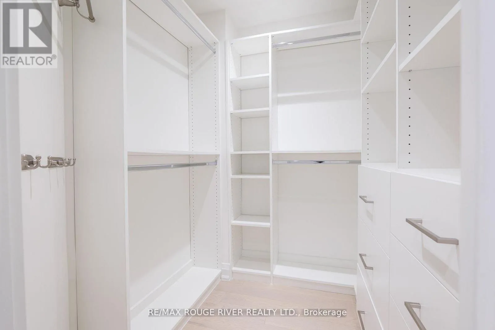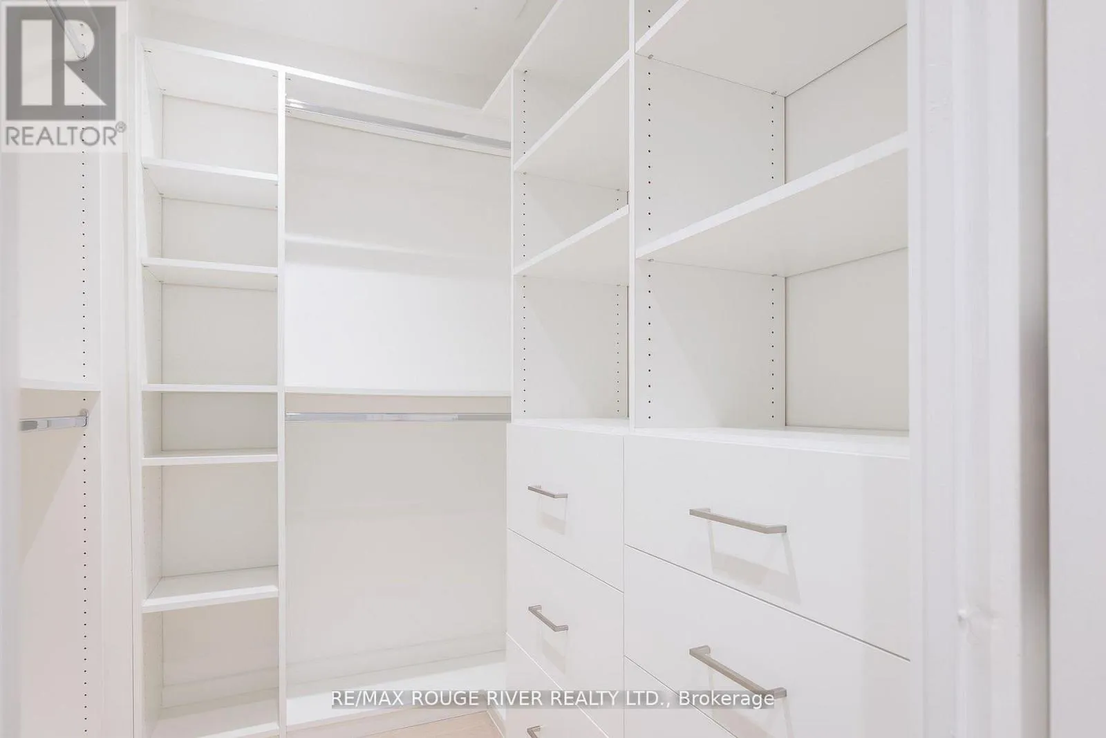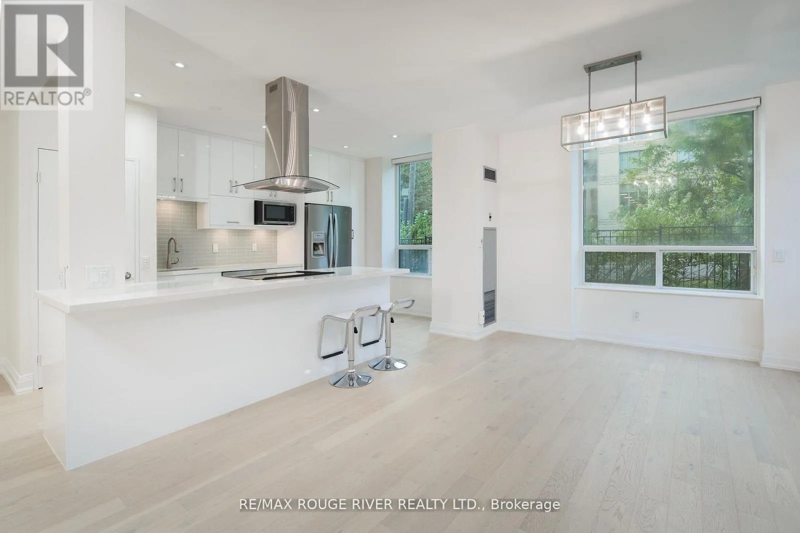Yonge and Empress Prime North York Living! This stunning, fully renovated 2-bedroom, 2-bath 1053 Sq Ft, ground floor corner unit suite offers the perfect blend of style, comfort, and convenience complete with a private entrance from a large, fully fenced terrace. Designed for downsizer's or anyone seeking effortless, low-maintenance living, this condo truly feels like a model home. Inside, you'll find engineered hardwood flooring throughout, a modern kitchen with quartz countertops, stainless steel appliances (2020), custom built-in closets, and a Bosch ventless washer + dryer (2020). The oversized kitchen island is enhanced with a sleek fan hood, while remote controlled sheer blinds add a touch of sophistication to every room. The primary bedroom features a spacious walk-in closet and a private 4-piece ensuite. Thoughtful custom storage solutions are found throughout the unit. Includes one underground parking spot and exclusive use of a storage locker. Enjoy unbeatable walkability just steps to North York Centre, TTC subway, Earl Haig Secondary, McKee Public School, restaurants, shopping, Loblaws, Metro, and more. Quick access to Hwy 401 & 407, top hospitals, and all urban essentials. Located in a well-managed, recently updated building, this is a rare opportunity to enjoy elegant city living in a warm, welcoming community. (id:27476)