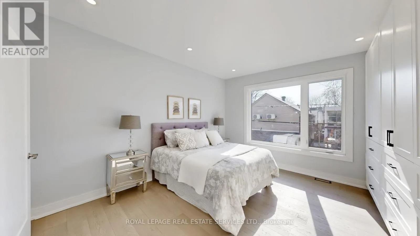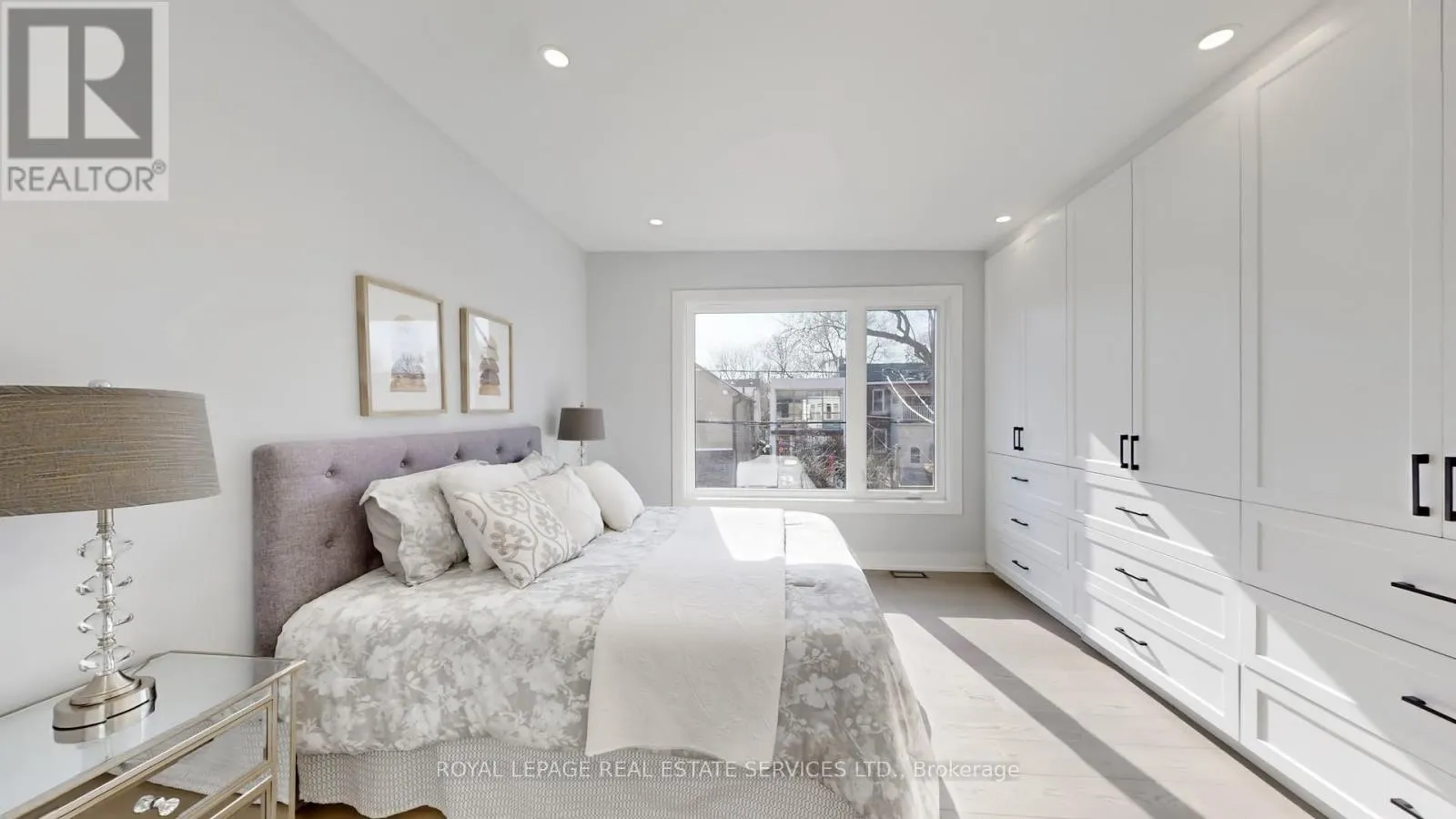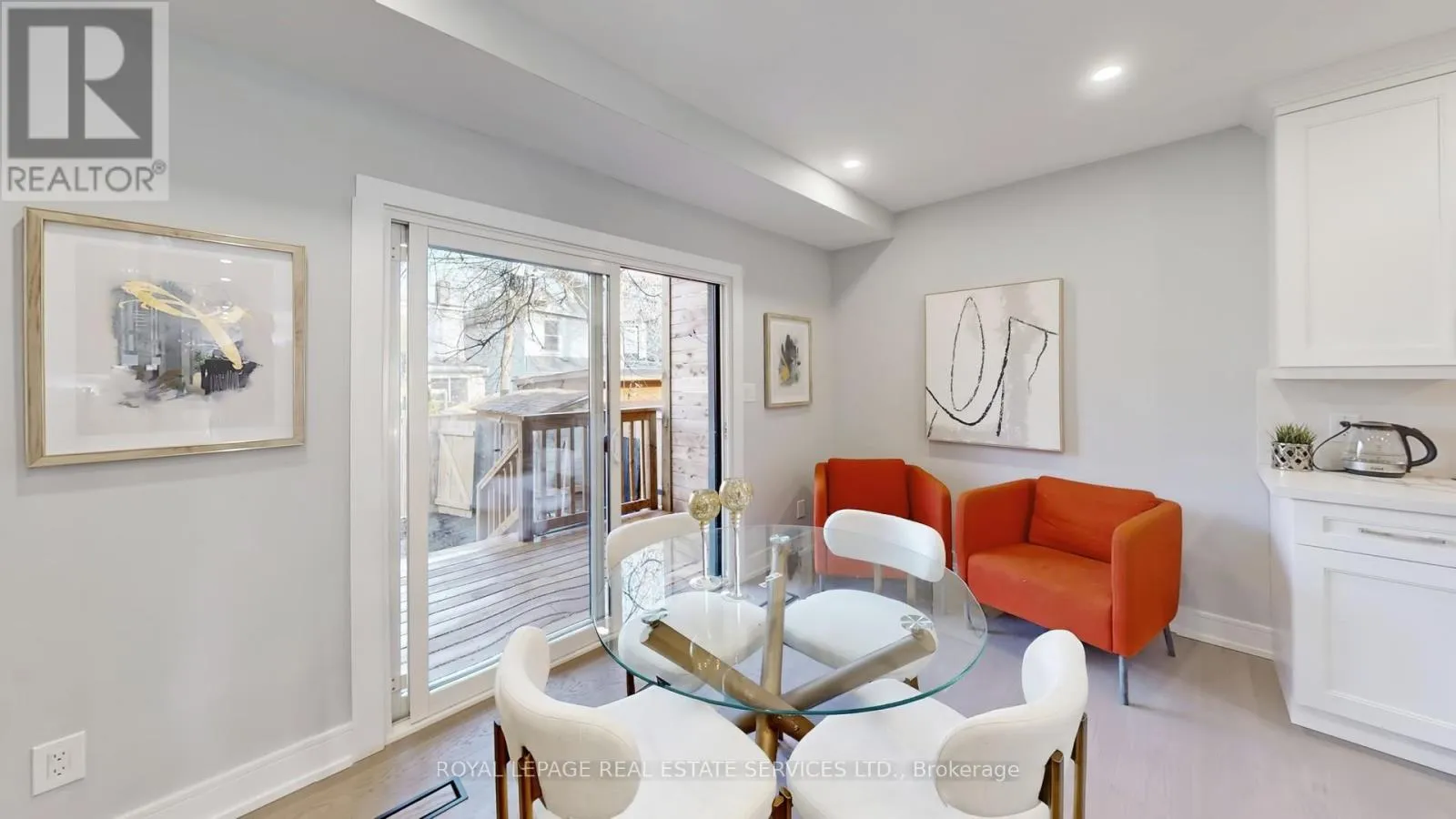 Danforth Ave. and Coxwell Ave. Located in the vibrant Greenwood-Coxwell pocket near Danforth Avenue, this newly built home offers a thoughtful blend of modern design and everyday comfort. With close to 2,000 square feet of living space, it features 2 spacious bedrooms with wall unit closet organizers and 4 well-appointed bathrooms, making it ideal for those who value both style and functionality. The home showcases high-end finishes throughout, with careful attention to detail in every room. The exterior stands out with reclaimed wood at the front, adding warmth and character, while the rear features a sleek stucco finish for a clean, contemporary look. Inside, the layout is bright and open, designed for both living and entertaining. The dining area is a true focal point, featuring a dramatic two-story ceiling with 2 skylights that fills the space with natural light. A modern glass-panel stair railing enhances the open feel, seamlessly connecting the levels with a sleek, contemporary touch. The kitchen is designed for both style and practicality, boasting a quartz countertop with matching backsplash and a striking waterfall island at the center. Cabinets and counter space line both sides, providing ample storage and workspace for all your culinary needs. One of the high lights is the two-level deck, accessible from both the primary bedroom and the kitchen, offering a private outdoor space that overlooks the backyard-perfect for relaxing or entertaining. Situated in a friendly, community-oriented neighborhood, you'll enjoy easy access to shops, cafes, parks, and transit along the Danforth, steps to Greenwood TTC. While there is no dedicated parking, street parking permits are available through the city. This is a rare opportunity to own a brand new modern home in one of Toronto's most connected and welcoming east-end communities. (id:27476)