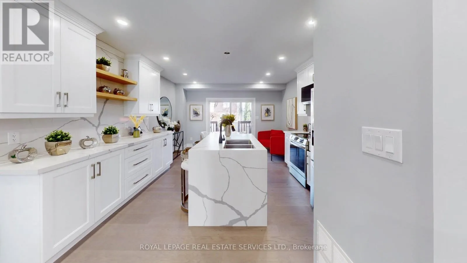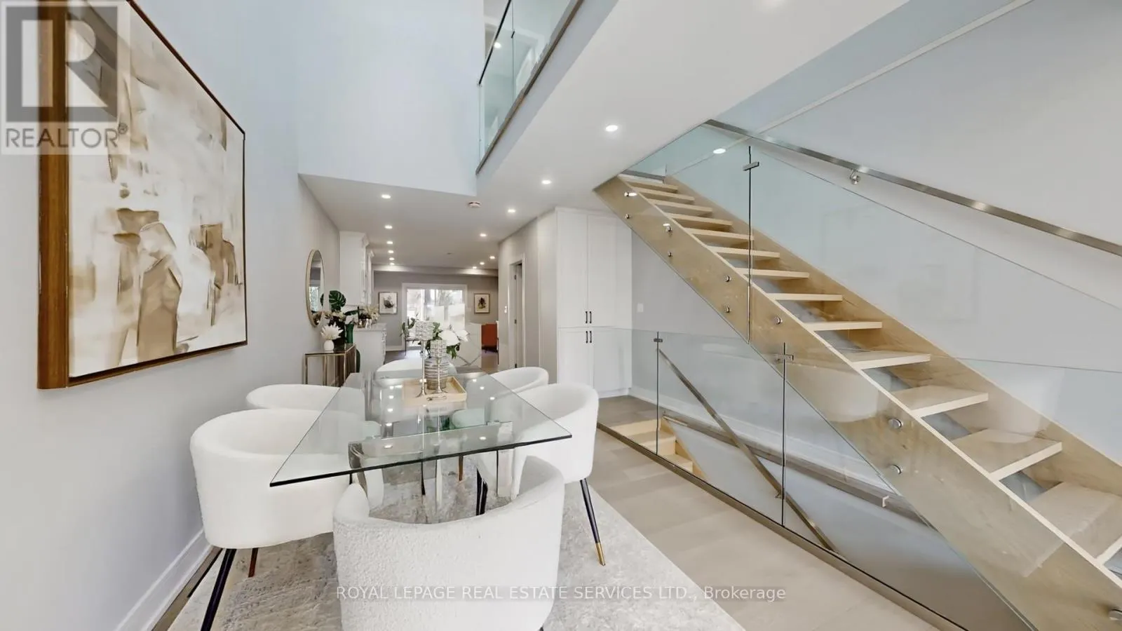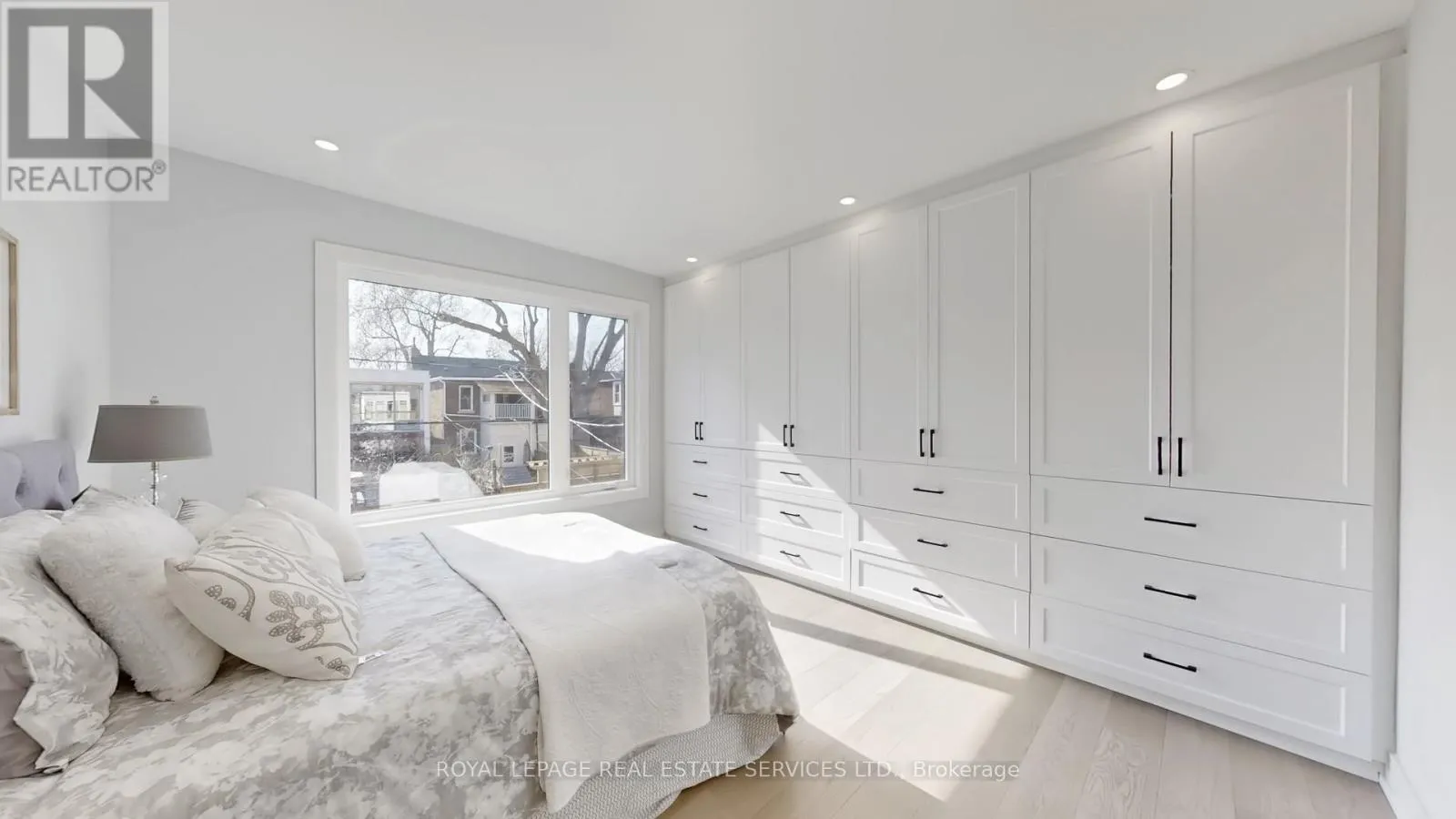 Danforth Ave. and Coxwell Ave. Located in the vibrant Greenwood-Coxwell pocket near Danforth Avenue, this newly built home offers a thoughtful blend of modern design and everyday comfort. With close to 2,000 square feet of living space, it features 2 spacious bedrooms with wall unit closet organizers and 4 well-appointed bathrooms, making it ideal for those who value both style and functionality. The home showcases high-end finishes throughout, with careful attention to detail in every room. The exterior stands out with reclaimed wood at the front, adding warmth and character, while the rear features a sleek stucco finish for a clean, contemporary look. Inside, the layout is bright and open, designed for both living and entertaining. The dining area is a true focal point, featuring a dramatic two-story ceiling with 2 skylights that fills the space with natural light. A modern glass-panel stair railing enhances the open feel, seamlessly connecting the levels with a sleek, contemporary touch. The kitchen is designed for both style and practicality, boasting a quartz countertop with matching backsplash and a striking waterfall island at the center. Cabinets and counter space line both sides, providing ample storage and workspace for all your culinary needs. One of the high lights is the two-level deck, accessible from both the primary bedroom and the kitchen, offering a private outdoor space that overlooks the backyard-perfect for relaxing or entertaining. Situated in a friendly, community-oriented neighborhood, you'll enjoy easy access to shops, cafes, parks, and transit along the Danforth, steps to Greenwood TTC. While there is no dedicated parking, street parking permits are available through the city. This is a rare opportunity to own a brand new modern home in one of Toronto's most connected and welcoming east-end communities. (id:27476)
