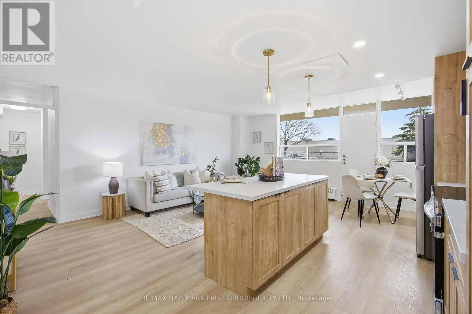 Cross Streets: Kennedy/Ellesmere. ** Directions: See Map. This beautifully updated 2-bedroom, 1-bathroom condo offers a perfect blend of comfort, style, and convenience. Recently renovated, the open concept unit features modern upgrades throughout, making it truly move-in ready. The spacious layout is enhanced by new laminate flooring that adds a sleek and contemporary touch. A refreshed kitchen showcases quality finishes and durable ceramic flooring, a large centre island, ideal for everyday living and entertaining. Freshly painted walls create a bright and welcoming atmosphere that feels warm and inviting. Both bedrooms are generously sized, providing comfortable spaces for rest or work-from-home setups. The functional layout maximizes space, making it ideal for small families, couples, or first-time buyers. Located in a highly sought-after area, this condo is just minutes from Highway 401 for easy commuting. Residents will enjoy close proximity to shopping at Kennedy Commons and access to a wide range of amenities. Nearby institutions include the University of Toronto Scarborough, Centennial College, and the Toronto Pan Am Sports Centre. Public transit, including TTC and GO stations, is only a short drive away for added convenience.This is an excellent opportunity to own a stylish, affordable home in a prime location that offers both comfort and connectivity. (id:27476)