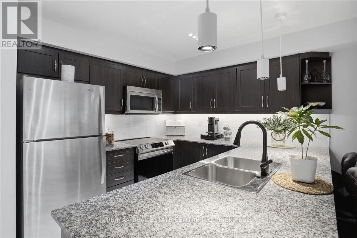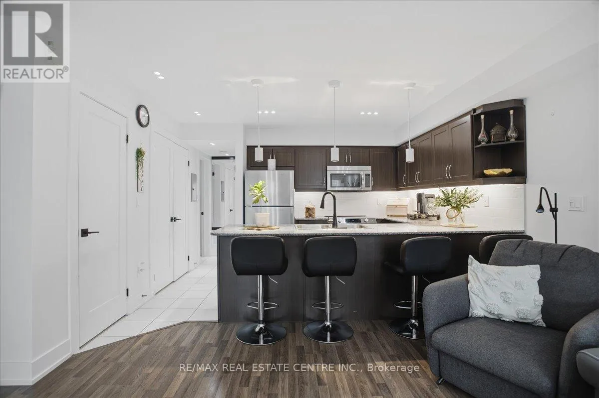 Cross Streets: Eglinton/Martingrove/427/401. ** Directions: Type \"132 Widdicombe Hill Blvd\" into your GPS, turn into the complex, and head up the first staircase on yourright. There is parking out front. Absolutely stunning, well cared for and meticulously designed 1 bedroom/1 Washroom main level stacked condo townhouse, that's very bright, open concept and absolutely loaded w/ the finest in trendy West Toronto turn-key living that includes beautifully installed chestnut coloured laminate, large kitchen w/ granite countertops, complimenting white sub-tile backsplash, newer brand-name Stainless Steel Applicances, deep basin sink, charming overhead pendant lighting, large pull-up breakfast bar w/ abilty to seat 4 guests, soft-close cabinets w/ undermount ambient lighting, LED pot-lighting throughout, ensuite laundry w/ b/i shelving, combined family/dining, mounted electric fireplace w/ b/i cabinetry, a large 4pc fully upgradd bathroom, a large primary room w/ sizeable closet and multiple windows, a cozy balcony w/ b/i gas BBQ and custom subfloor, simply too may upgrades to go around you simply have to see this unit. This charming stacked town is approx 632 sq ft and includes an exclusive locker and 1 underground parking spot. If that wasn't enough, the unit is unbelievably located in (arguably) the most convenient and navigable part of Toronto whereby TTC & Pub. transit are basically at your doorsteps, mins. to 427/401/QEW/27/407, Pearson Airport. Plaza w/ METRO, restaurants, LCBO, banks and other conveniences are literally across the street. This unit is ideal for that working professional(s), young couple, downsizer or investor looking to crack into the real estate market and at this price, w/ this location, this unit simply won't last!! Book your showing today before it's too late!!! (id:27476)