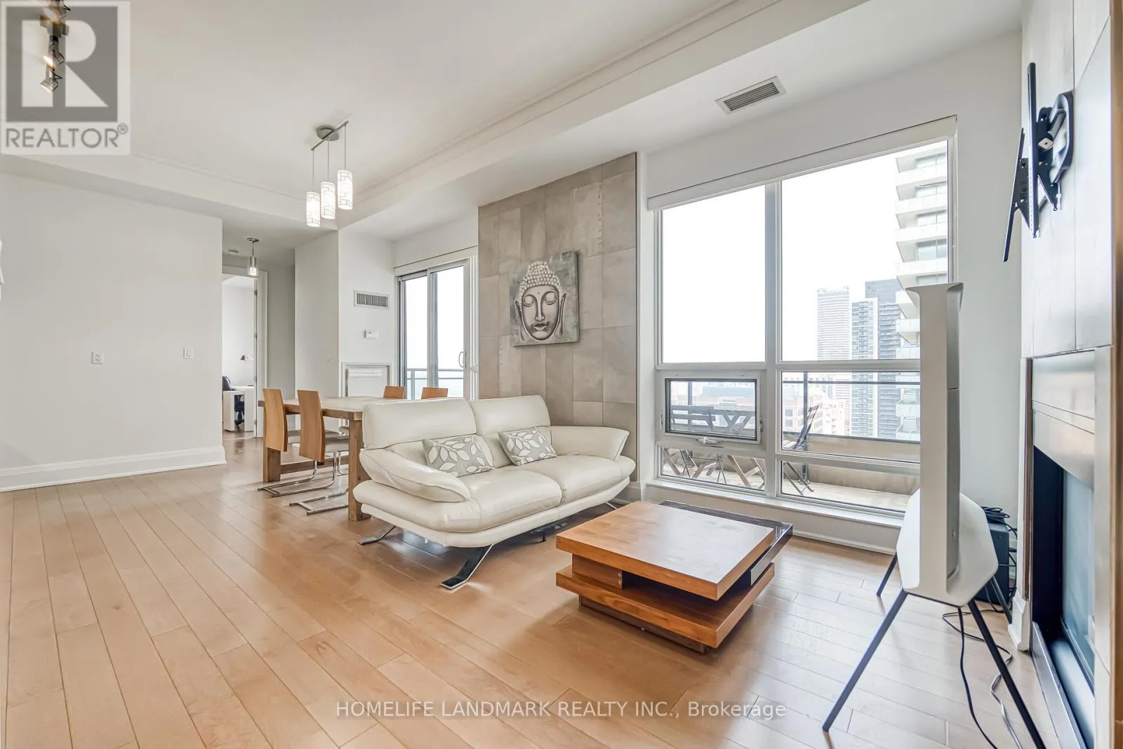Cross Streets: Yonge & Bloor. ** Directions: South of Hayden St. Luxurious 2-Bed + Den in the Heart of Bloor-Yorkville for sale. Welcome to this rare and refined 2-bedroom, 2-bathroom lower Penthouse suite with spacious den, offering approx. 1,120 sq.ft. of interior space plus two private balconies each with gas, water, and electrical lines for seamless indoor-outdoor living. One of only three suites on the floor, this split-bedroom layout ensures privacy while providing an expansive open-concept living area, ideal for entertaining or relaxing.Interior highlights include 10 ceilings, custom Downsview Kitchen cabinetry, marble countertops & backsplash, SS appliances , two-way gas fireplace, pot lights, crown moulding, elegant baseboards, and hardwood floors throughout. The versatile den is perfect as a home office or media room.Located just steps from Yonge & Bloor, with direct access to subway lines, world-class shopping, dining, and cultural destinations. A sophisticated urban sanctuary in one of Torontos most prestigious neighbourhoods. One parking and locker included. (id:27476)