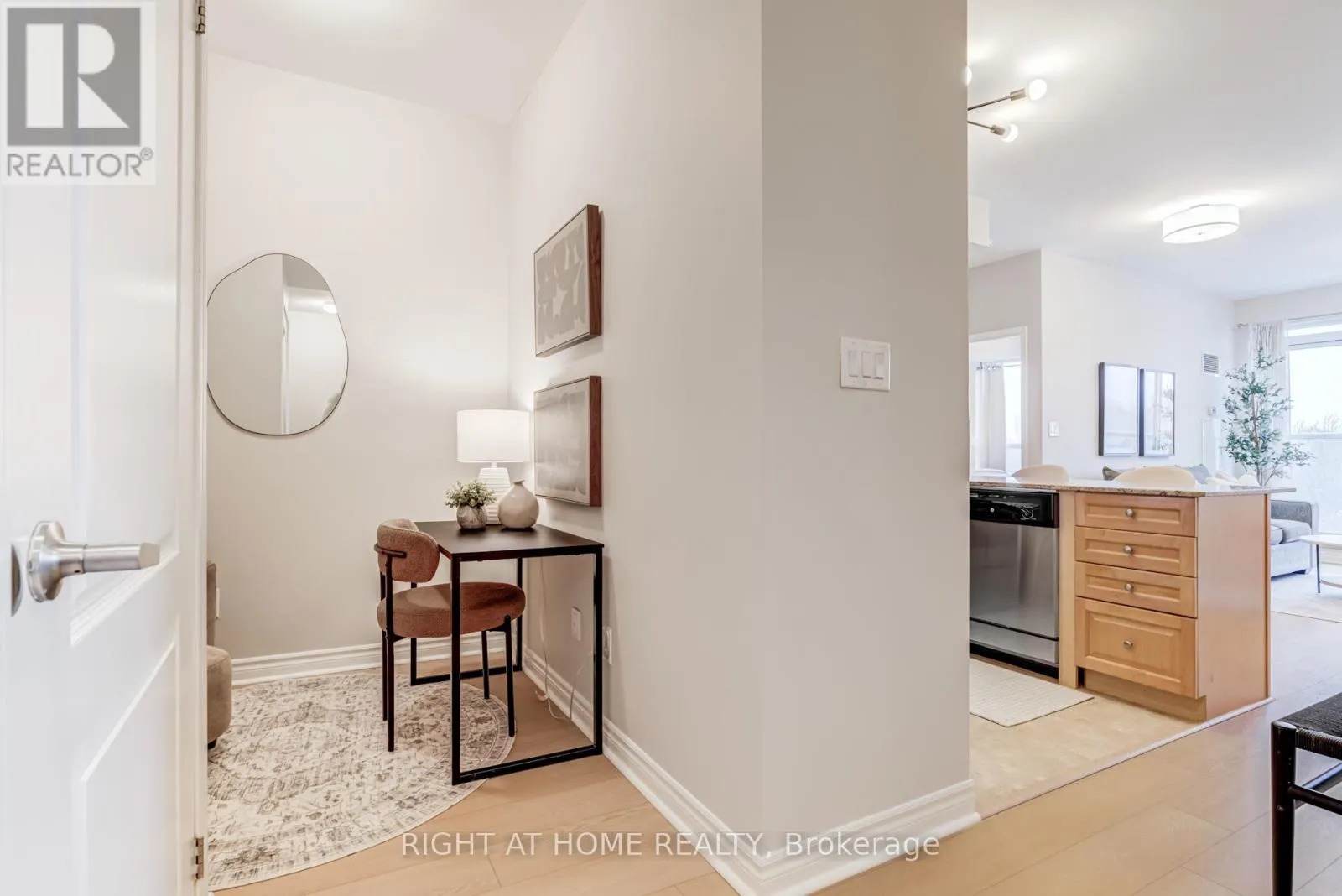 Cross Streets: Lake Shore Blvd & Browns Line. ** Directions: Lake Shore & Forty First. Welcome to Aquaview Condominiums in historic Long Branch, just steps from Marie Curtis Park and the shores of Lake Ontario. Enjoy convenient commuting with easy access to Long Branch GO Station (approximately 23 minutes to Union Station), as well as nearby access to Highway 427 and the QEW. Close to golf courses and shopping at Sherway Gardens.This 1+1 bedroom suite with 9 ft ceilings offers a functional and well-designed layout, featuring newly installed vinyl plank flooring, large windows, and two Juliet balconies. The spacious den provides flexibility for a home office or additional living space.The king-sized primary bedroom includes a double closet, large windows, and a glass sliding door. The open-concept living, dining, and kitchen area includes a breakfast bar and offers a practical flow for everyday living and entertaining.Building amenities include visitor parking, fitness centre, party room, and a sixth-floor outdoor terrace with BBQs and a hot tub. Ground-level conveniences include a physiotherapist, walk-in medical clinic, dentist, and pharmacy. Within walking distance to No Frills, Shoppers Drug Mart, and LCBO.Enjoy lakeside living with nearby parkland, trails, beach, splash pad, playground, and dog park. (id:27476)